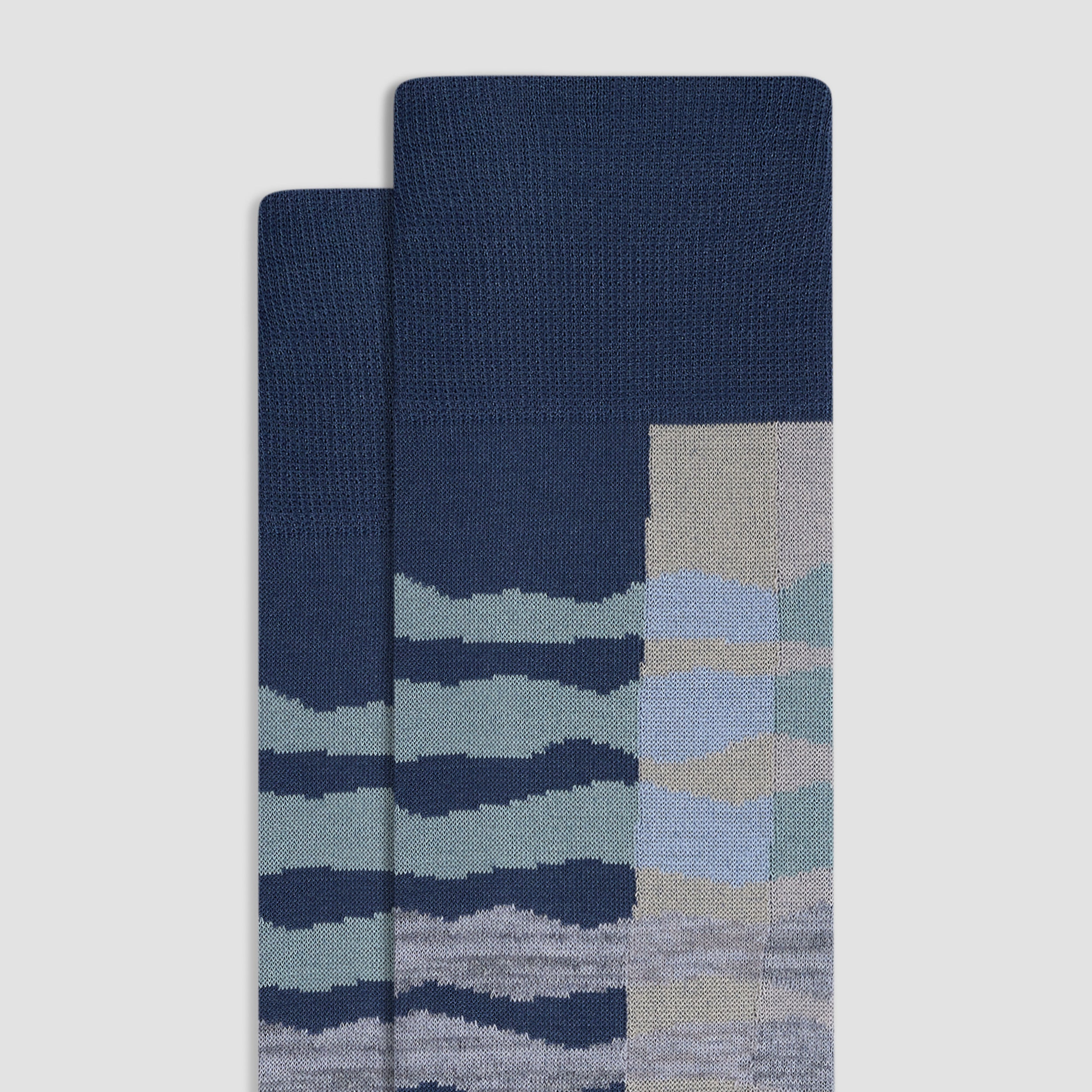 Discover premium comfort with these abstract band mid-calf socks, made in Italy from luxurious mercerized cotton with a ribbed cuff for a snug fit, a hand-linked toe for smoothness, and reinforced heel seams for added durability. Soft, breathable, and designed with care, they bring a touch of Italian flair to casual and formal wear.