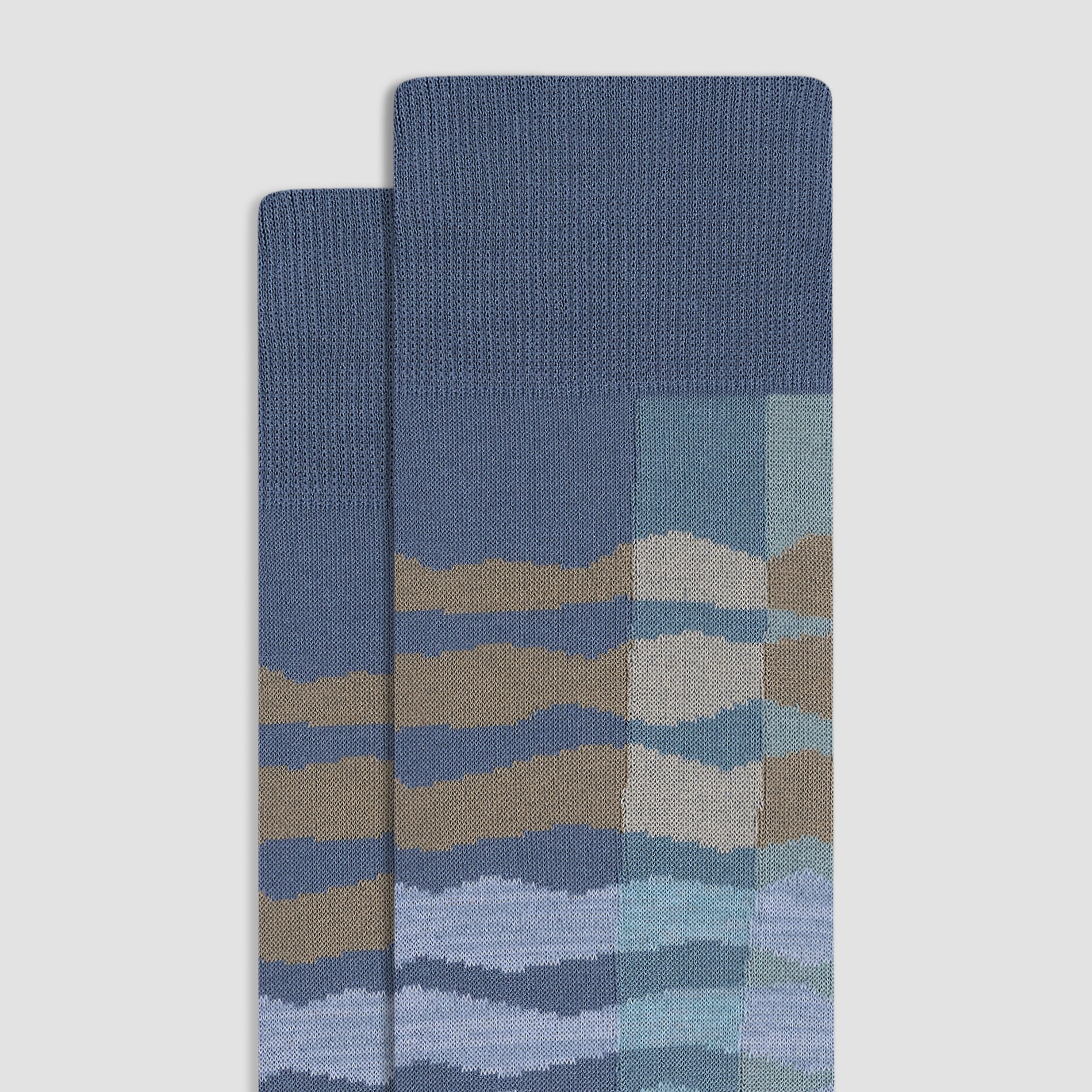 Discover premium comfort with these abstract band mid-calf socks, made in Italy from luxurious mercerized cotton with a ribbed cuff for a snug fit, a hand-linked toe for smoothness, and reinforced heel seams for added durability. Soft, breathable, and designed with care, they bring a touch of Italian flair to casual and formal wear.