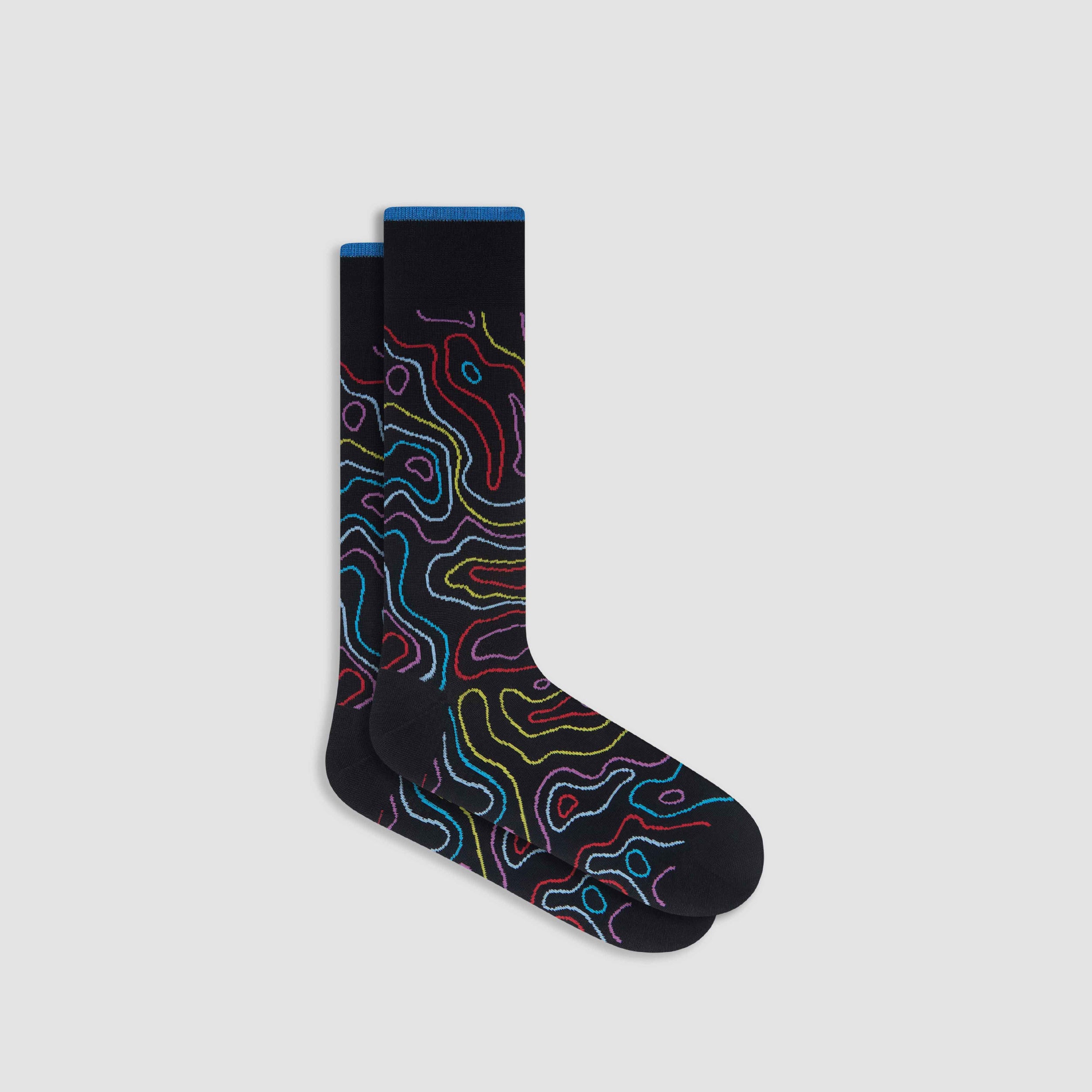 Discover premium comfort with these abstract mid-calf socks, made in Italy from luxurious mercerized cotton with a ribbed cuff for a snug fit, a hand-linked toe for smoothness, and reinforced heel seams for added durability. Soft, breathable, and designed with care, they bring a touch of Italian flair to casual and formal wear.