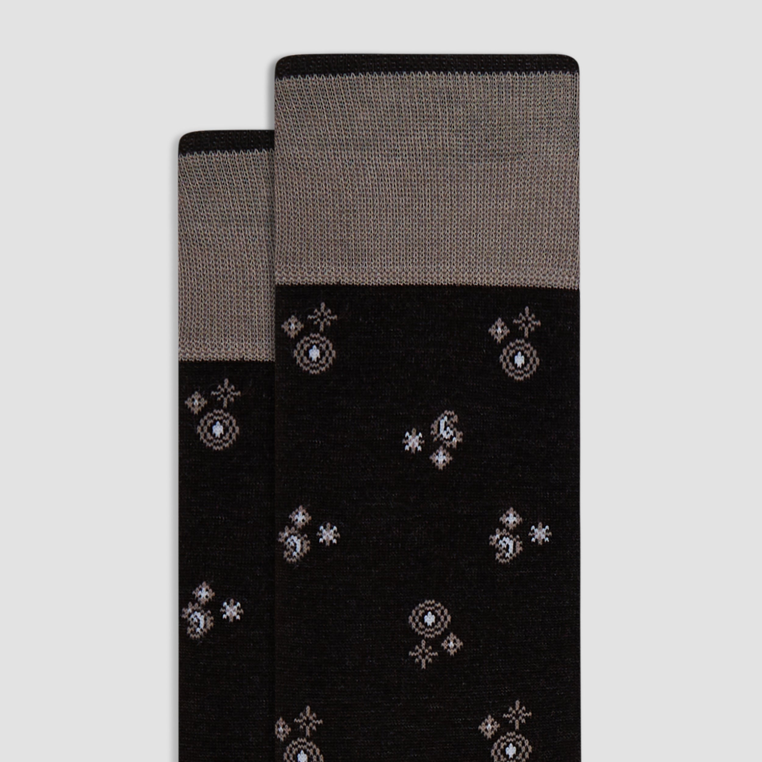 Abstract mid-calf socks in fine gauge mercerized cotton blend with rib knit cuff band, hand linked toe and reinforced heel seams. Made in Italy.