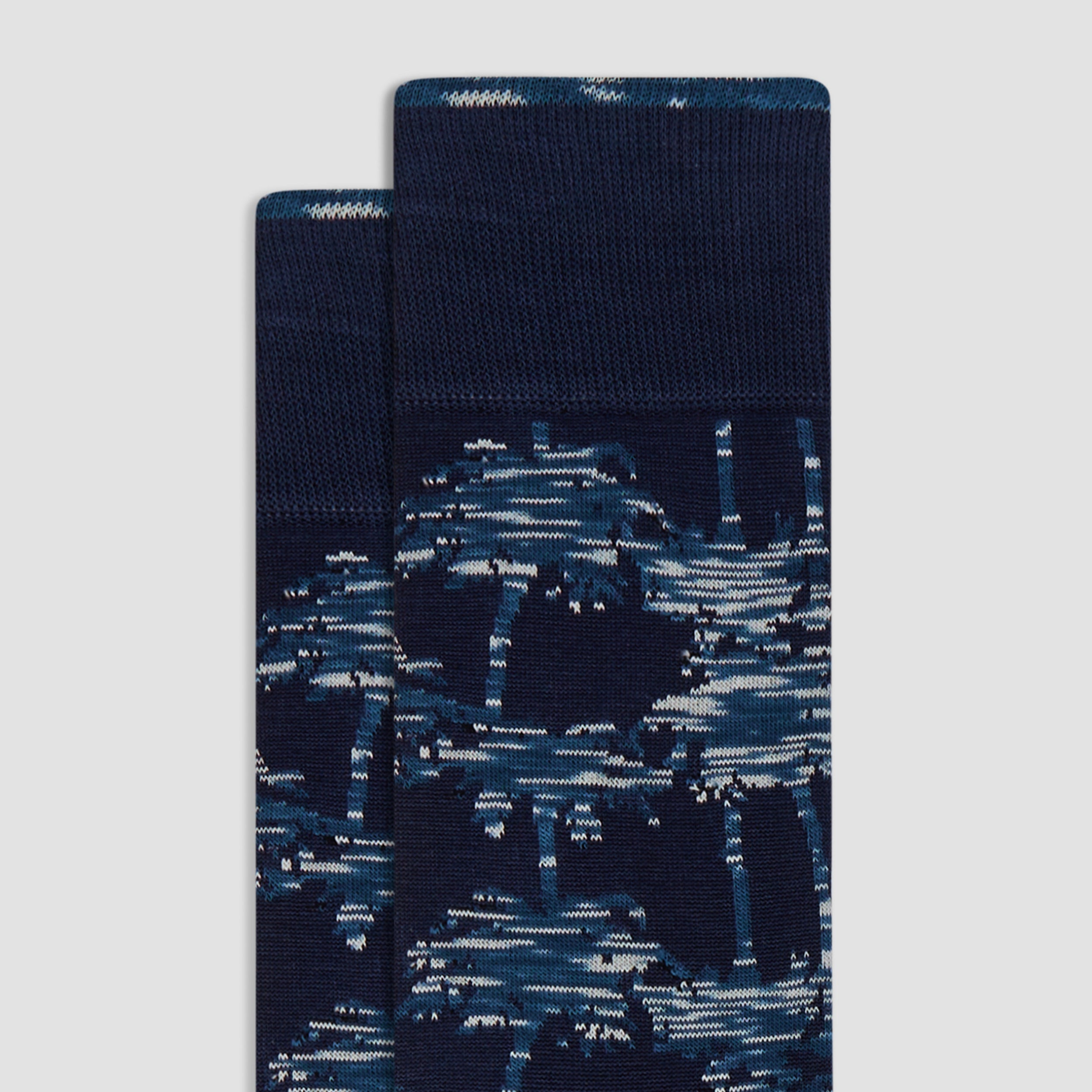 Abstract mid-calf socks in fine gauge mercerized cotton blend with rib knit cuff band, hand linked toe and reinforced heel seams. Made in Italy.