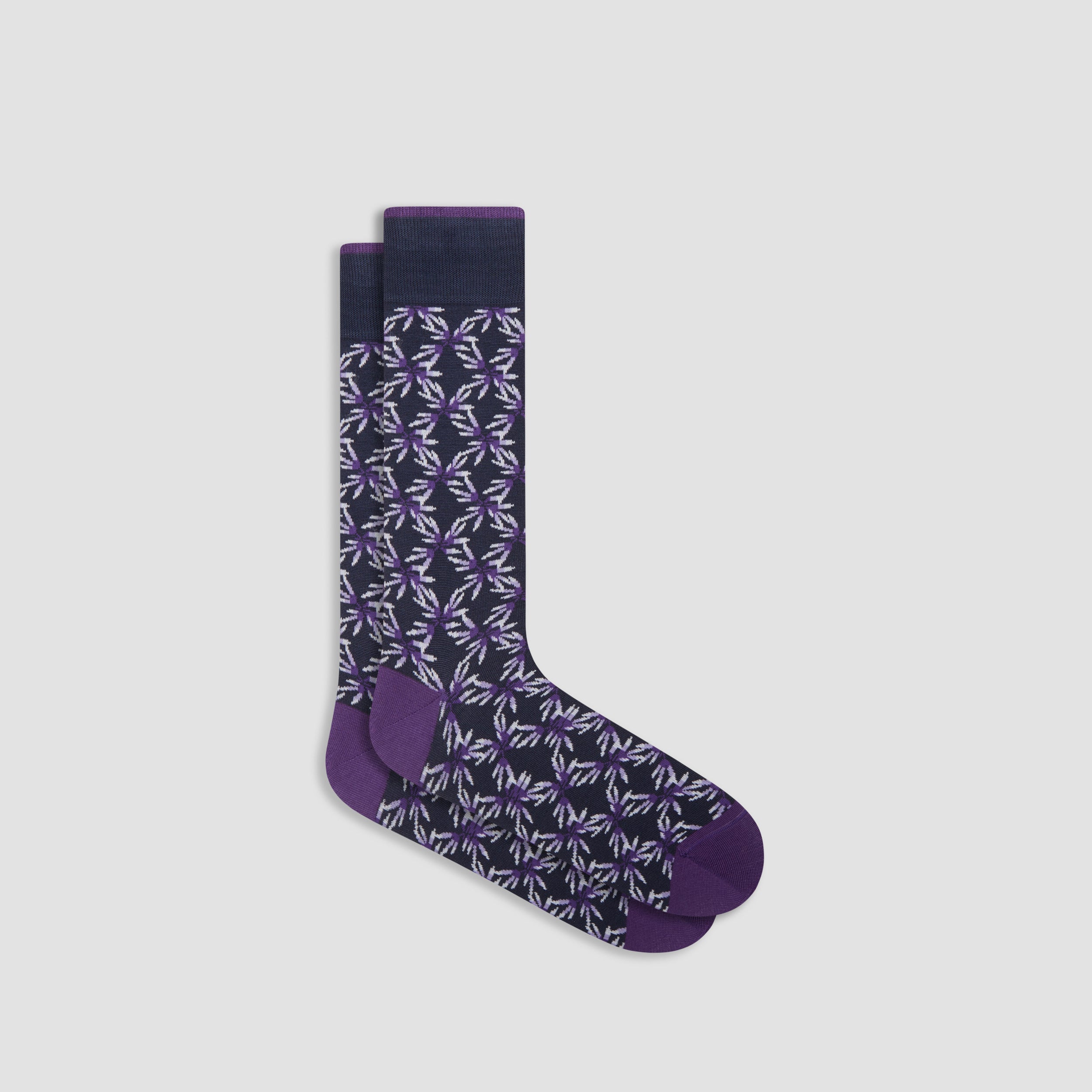 Abstract mid-calf socks in fine gauge mercerized cotton blend with rib knit cuff band, hand linked toe and reinforced heel seams. Made in Italy.