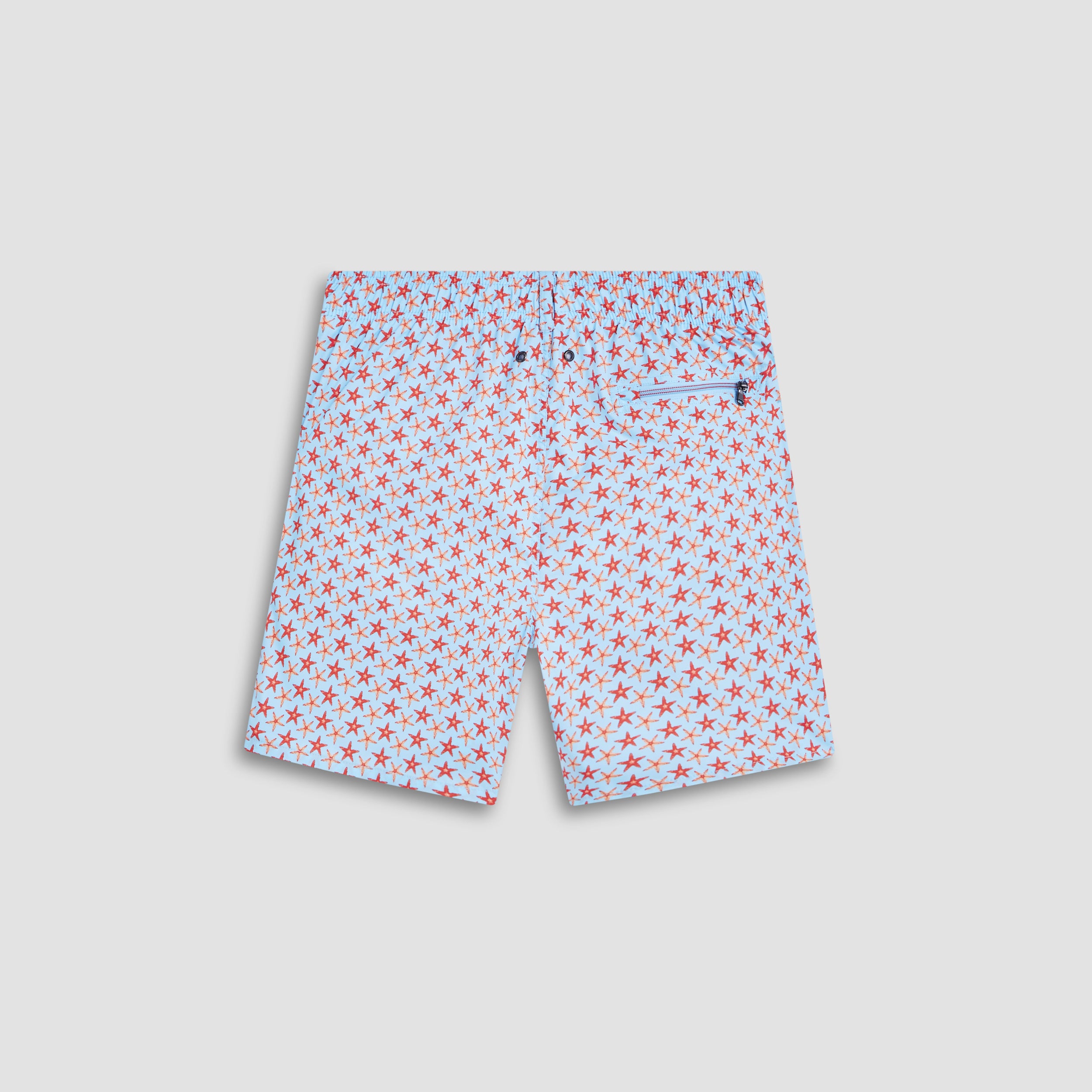 The Adrian swim trunks are crafted from premium comfort stretch polyester in a novelty star print and feature an elastic waist with adjustable drawstring, a breathable stretch mesh lining, drainage grommets, side pockets, a rear zippered pocket, UV protection and quick-dry technology. The sleek 17.5-inch out seam, offers the perfect balance between coverage and freedom of movement, making it an ideal choice for the beach or relaxing by the pool.