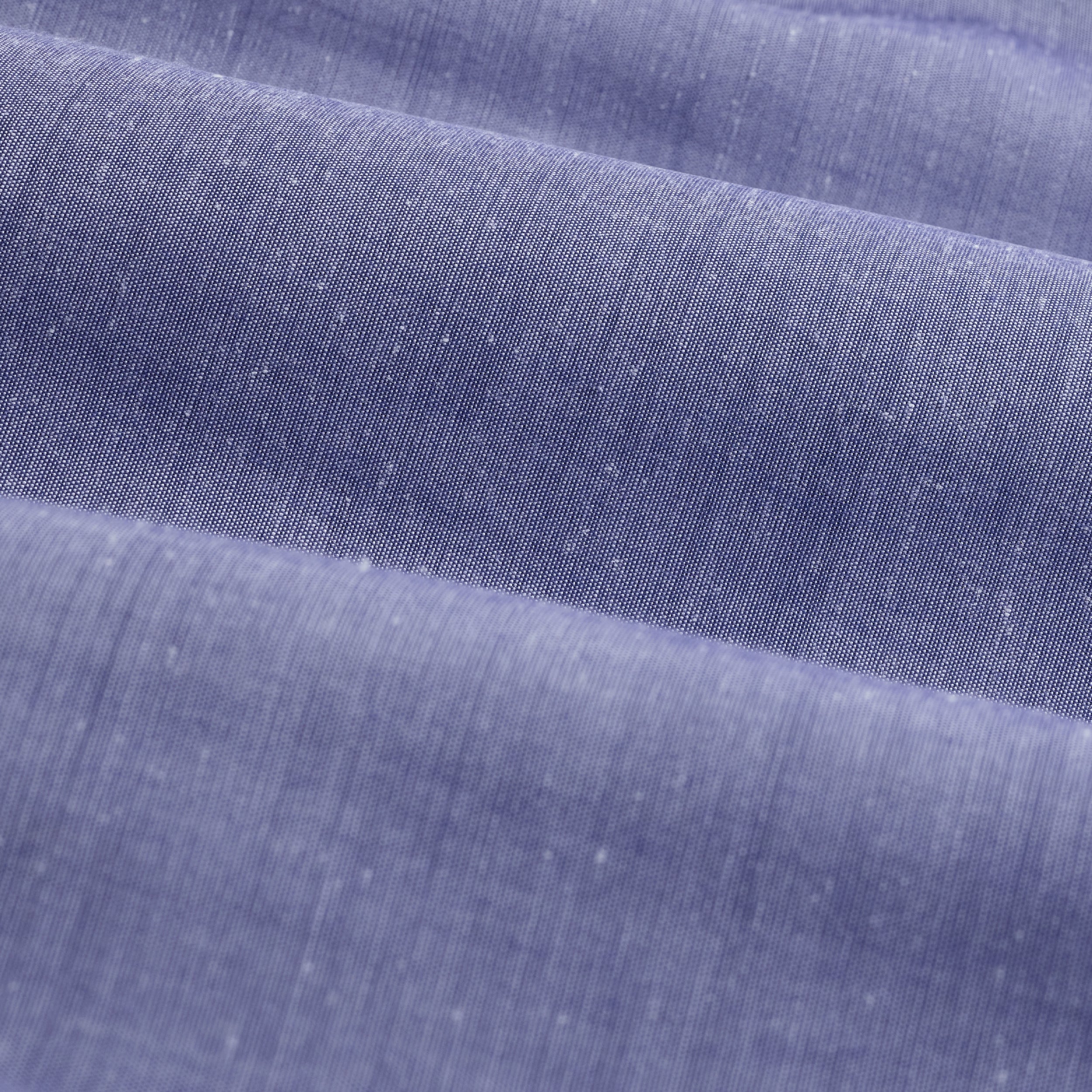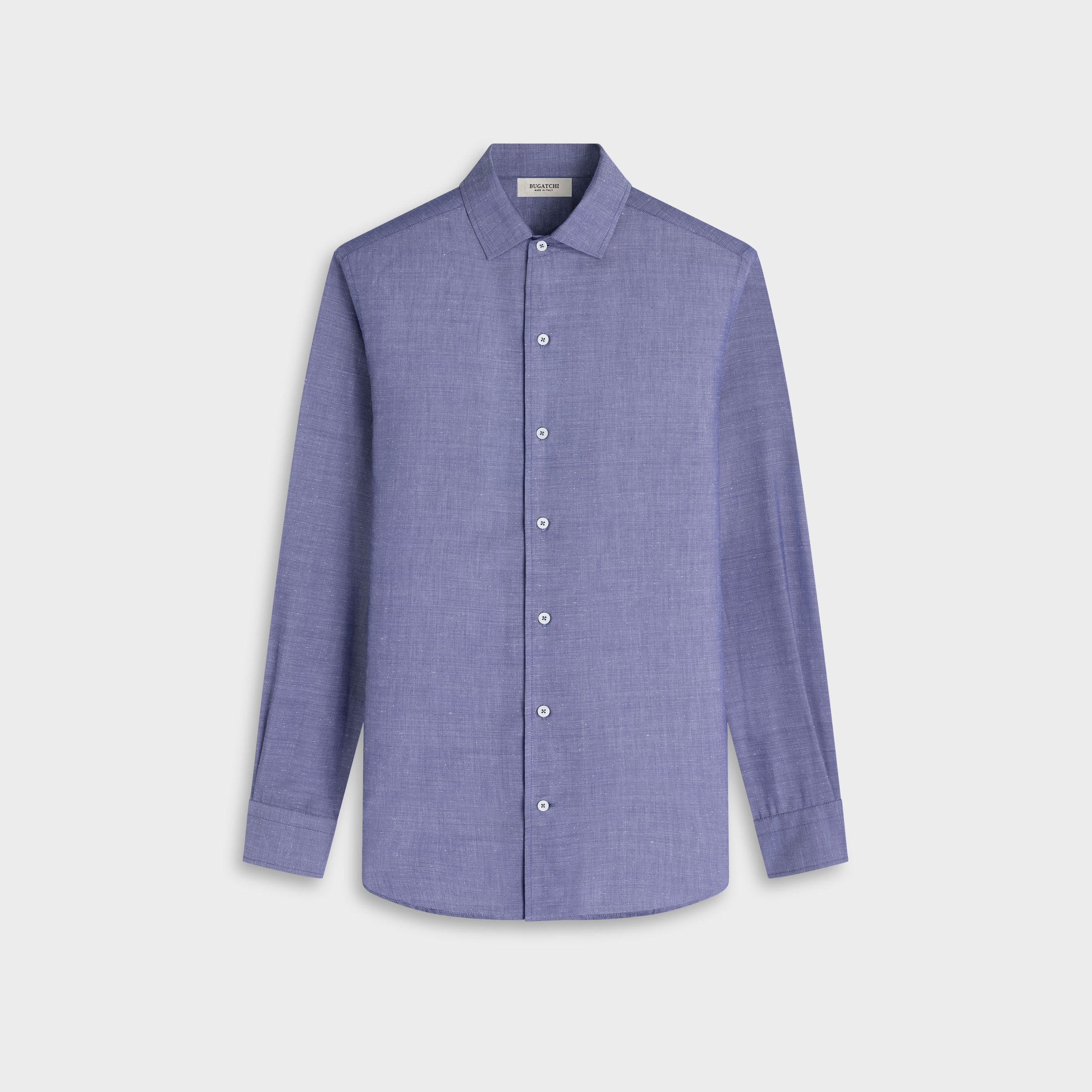 The Alvin long-sleeve shirt is crafted from a premium Italian lyocell-cotton-silk blend, offering a refined balance of softness, breathability, and subtle sheen. The chambray pattern adds understated texture, while the one-piece spread collar, mother-of-pearl buttons, and adjustable notched cuffs that also convert for cufflinks enhance its versatility. A sophisticated casual shirt that looks polished tucked or untucked.