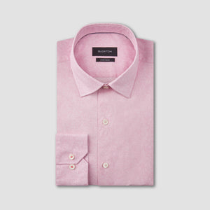 ARTHUR chambray print long-sleeved dress shirt in COMFORT STRETCH cotton with point collar, French placket, adjustable notched cuffs, genuine shell buttons and a curved hemline.