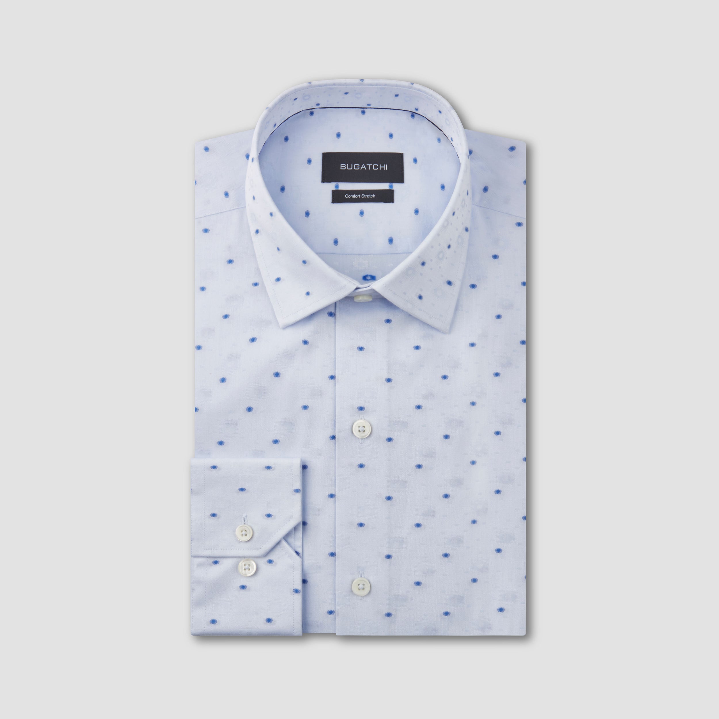 Arthur fil coupe dot long-sleeved dress shirt in comfort stretch cotton with point collar, French placket, adjustable notched cuffs, genuine shell buttons and a curved hemline.