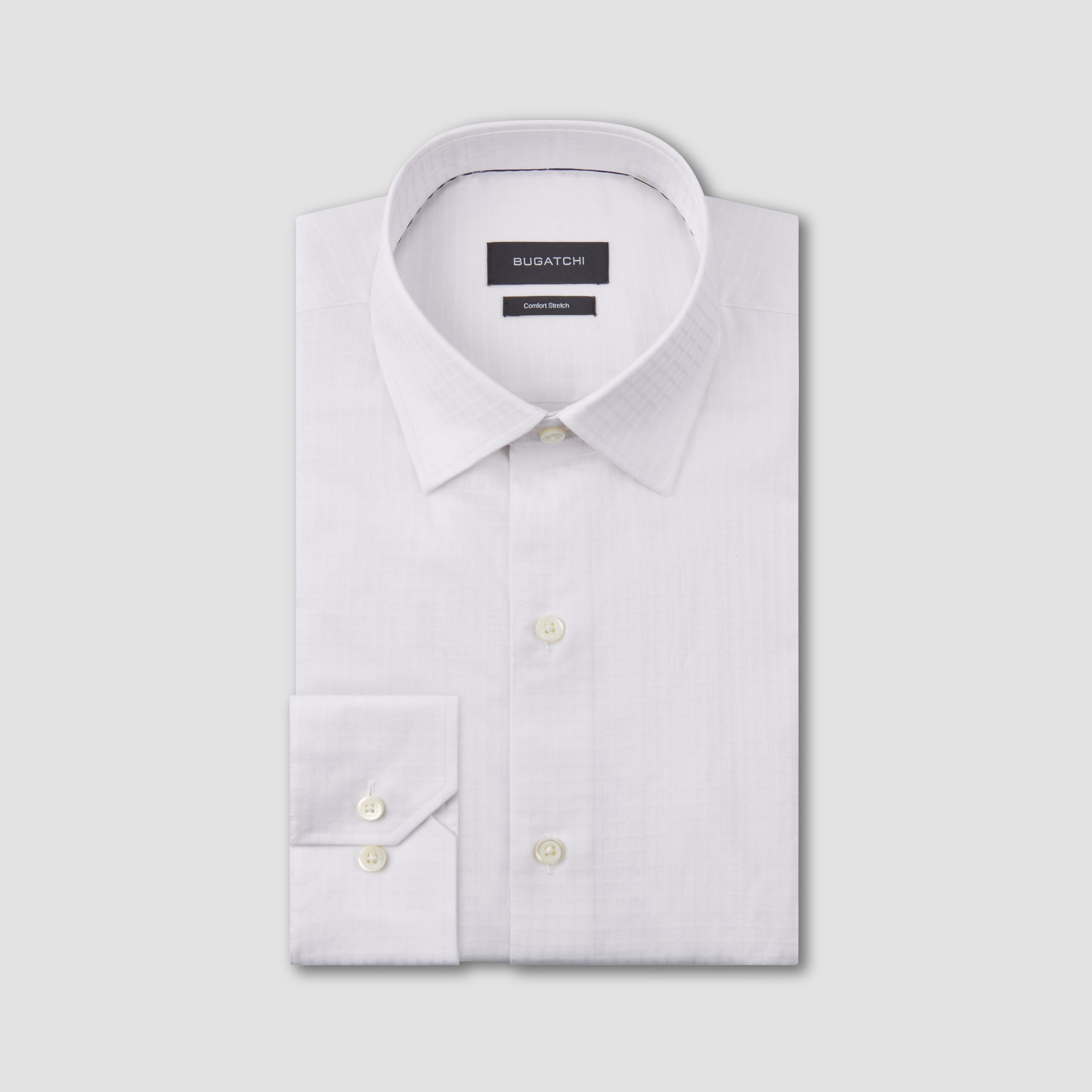Arthur mini check tonal long-sleeved dress shirt in comfort stretch cotton with point collar, French placket, adjustable notched cuffs, genuine shell buttons and a curved hemline.