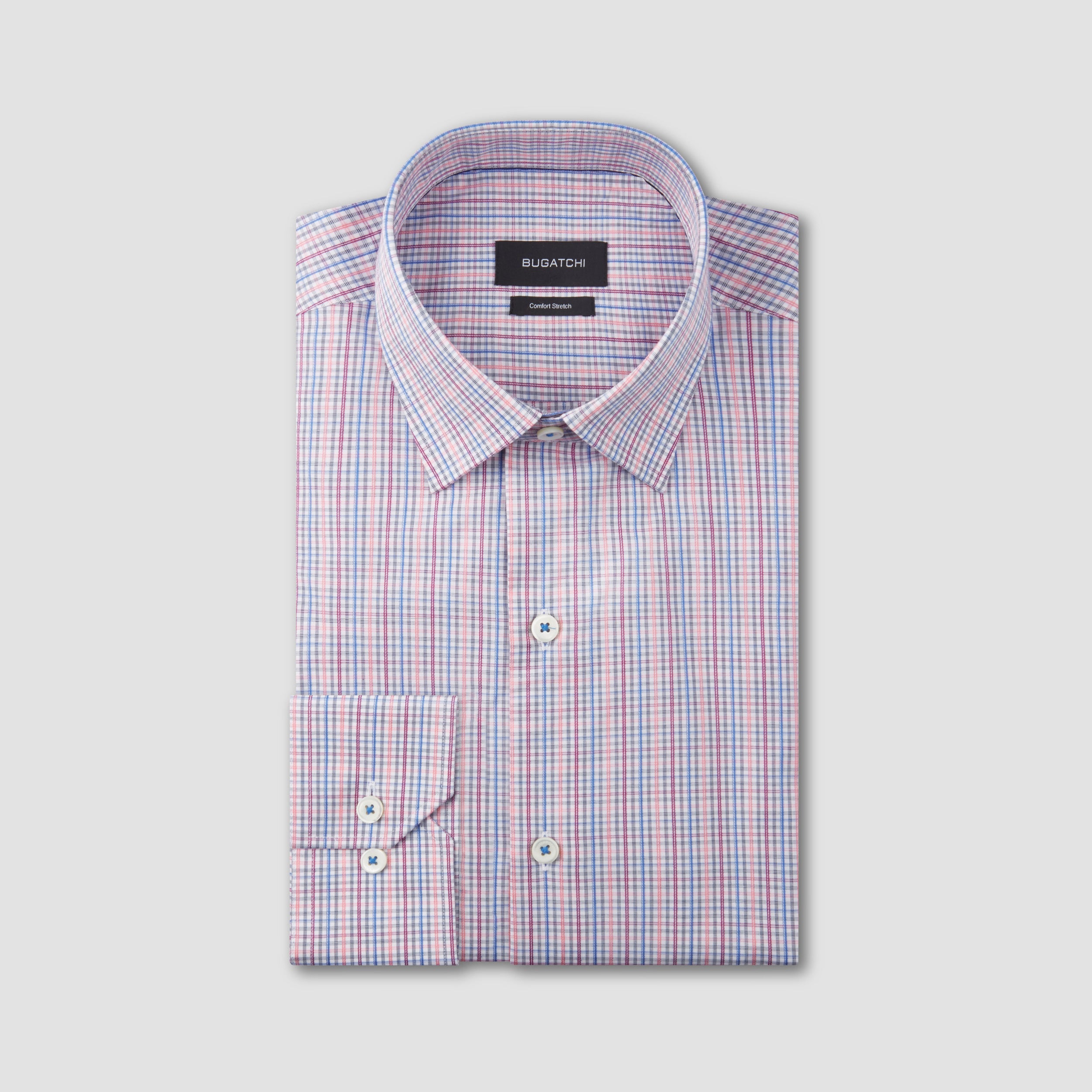ARTHUR multi check long-sleeved dress shirt in COMFORT STRETCH cotton with point collar, French placket, adjustable notched cuffs, genuine shell buttons and a curved hemline.