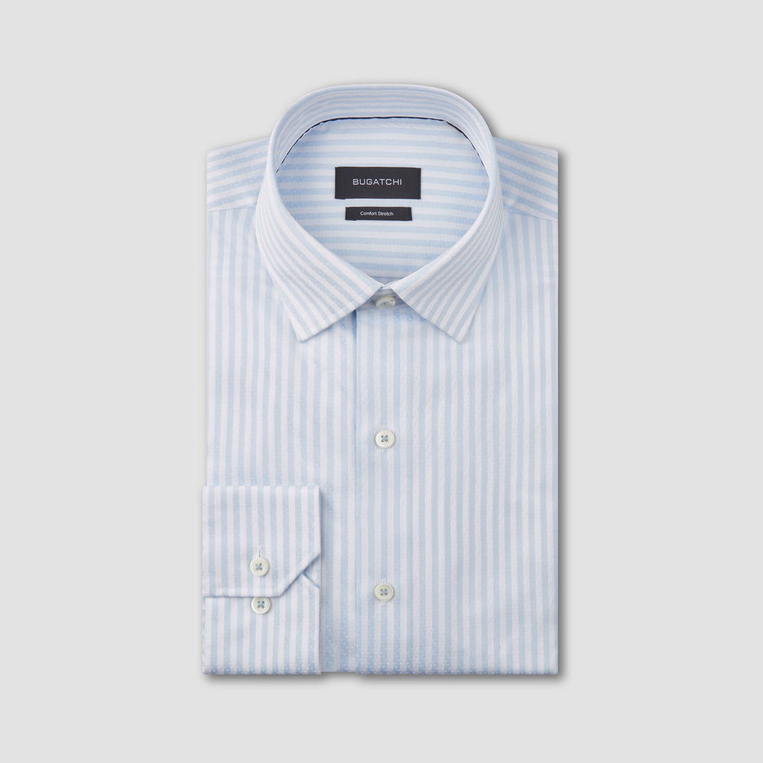 Arthur striped jacquard long-sleeved dress shirt in comfort stretch cotton with point collar, French placket, adjustable notched cuffs, genuine shell buttons and a curved hemline.