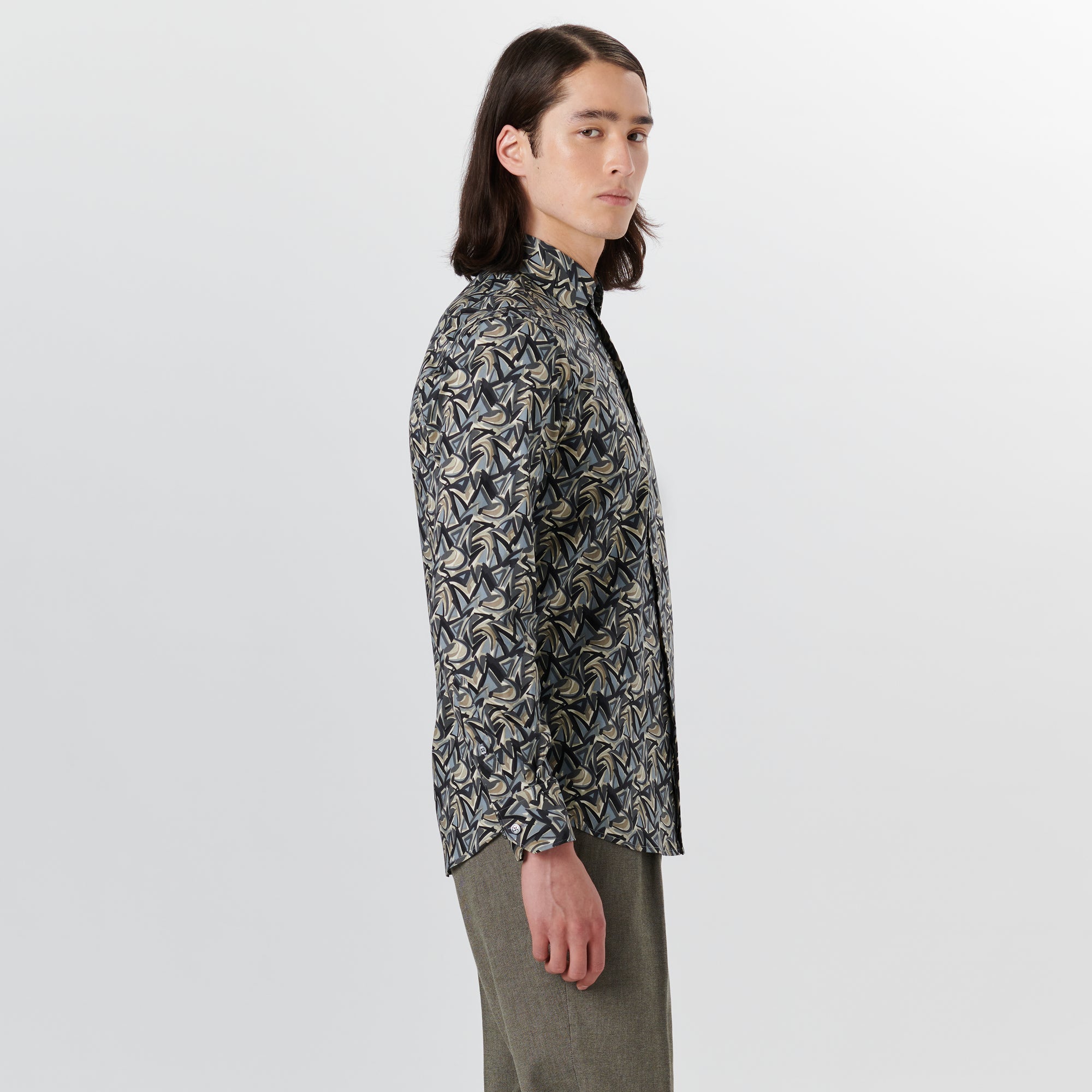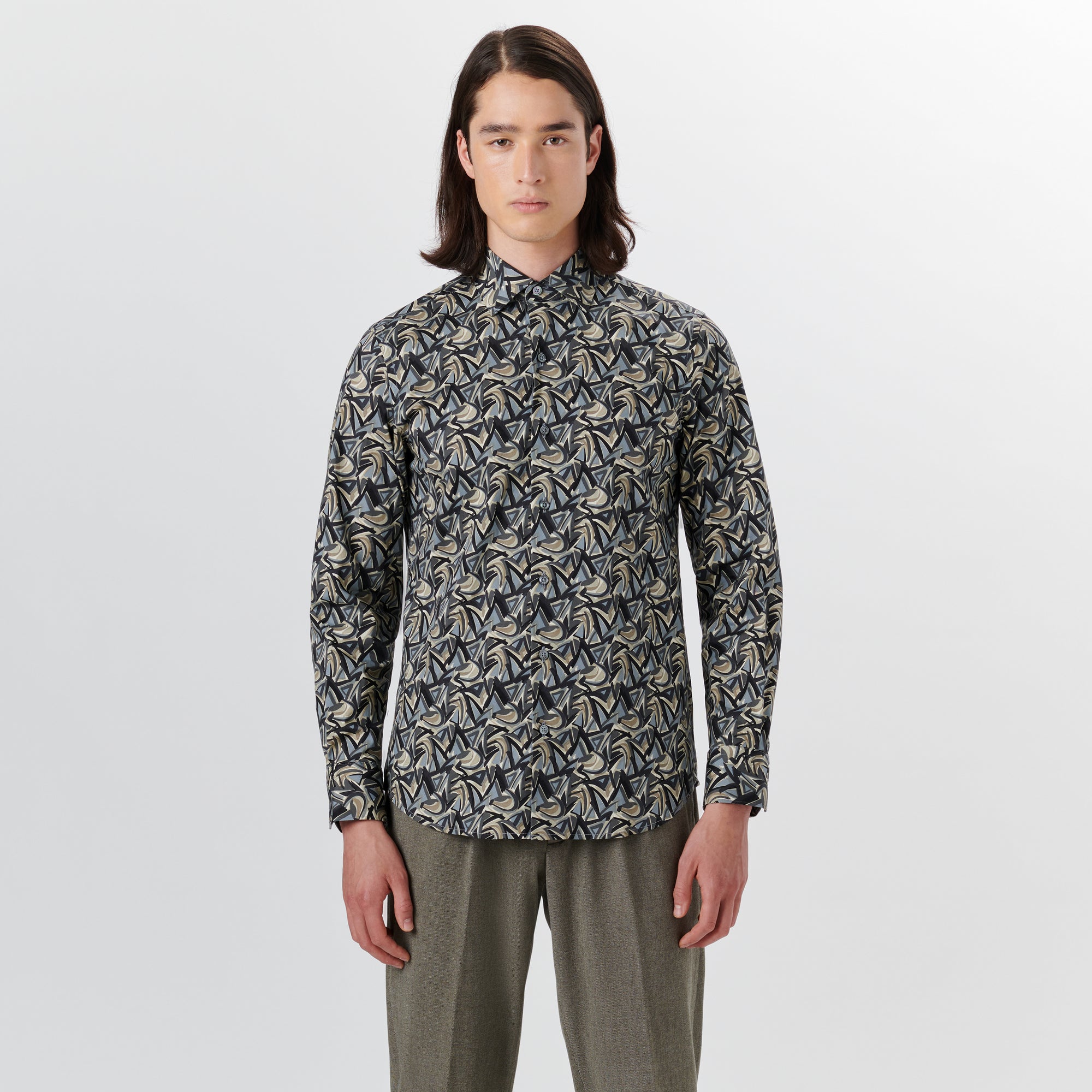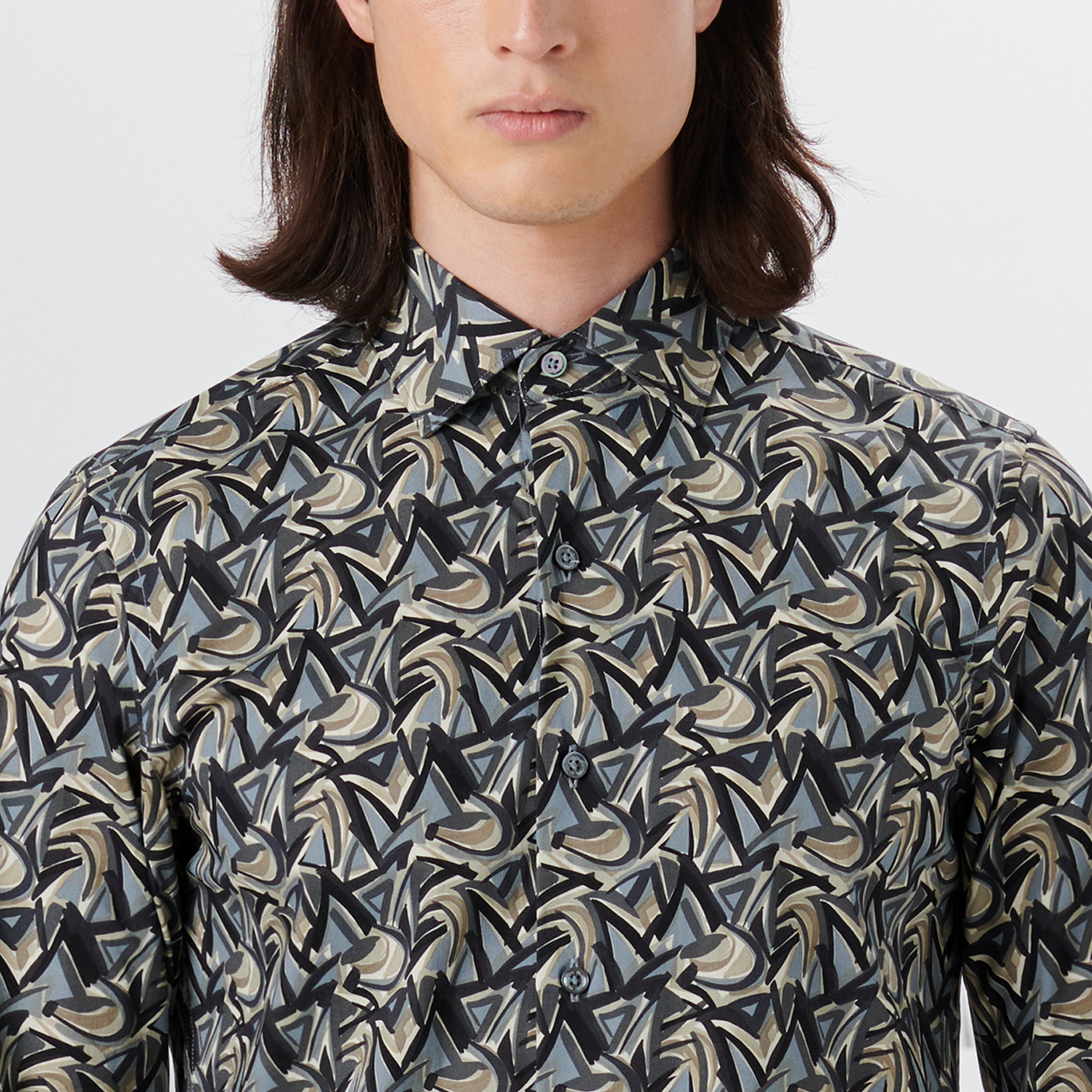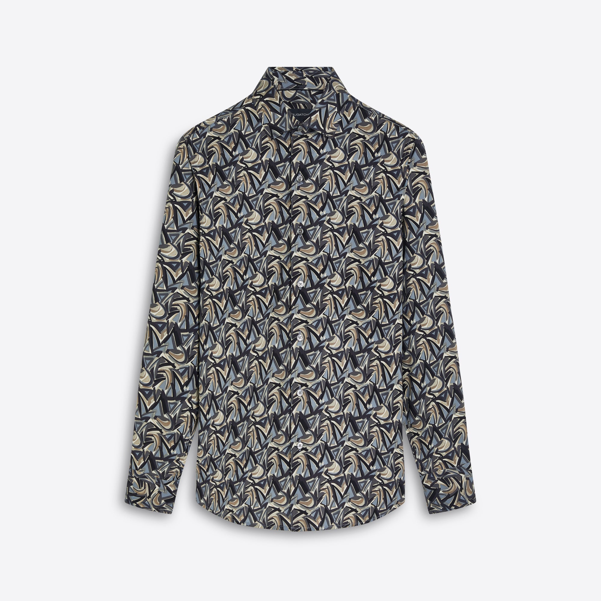 AXEL long-sleeved shirt in abstract print COMFORT STRETCH cotton with spread collar, adjustable notched cuffs and curved hem.