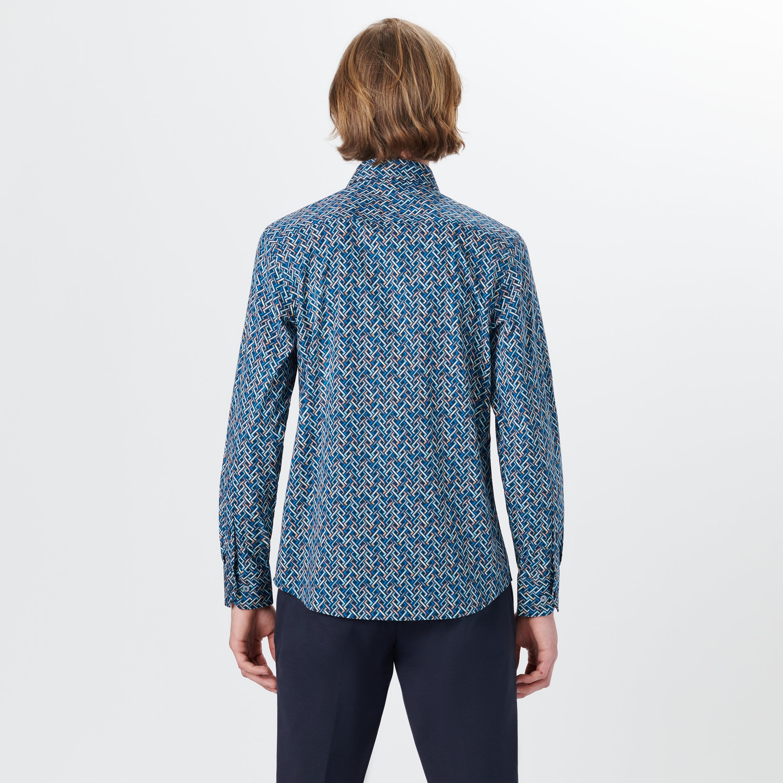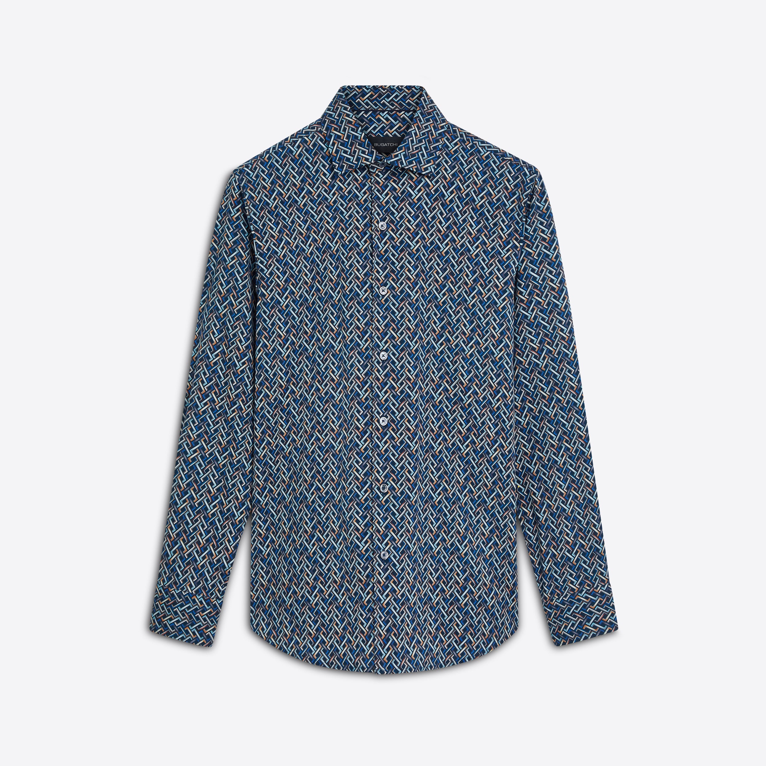 AXEL long-sleeved shirt in basketweave print COMFORT STRETCH cotton with spread collar, adjustable notched cuffs and curved hem.