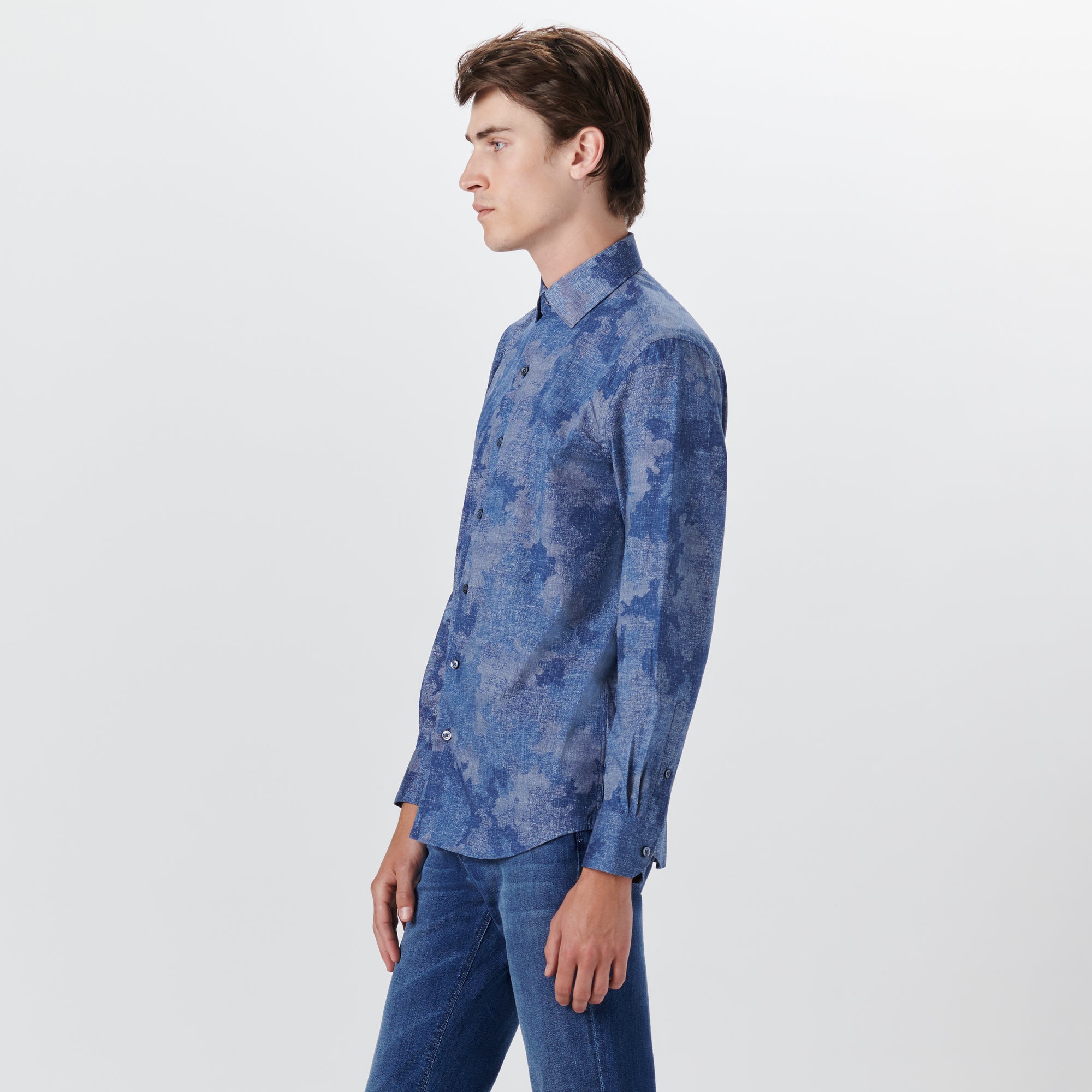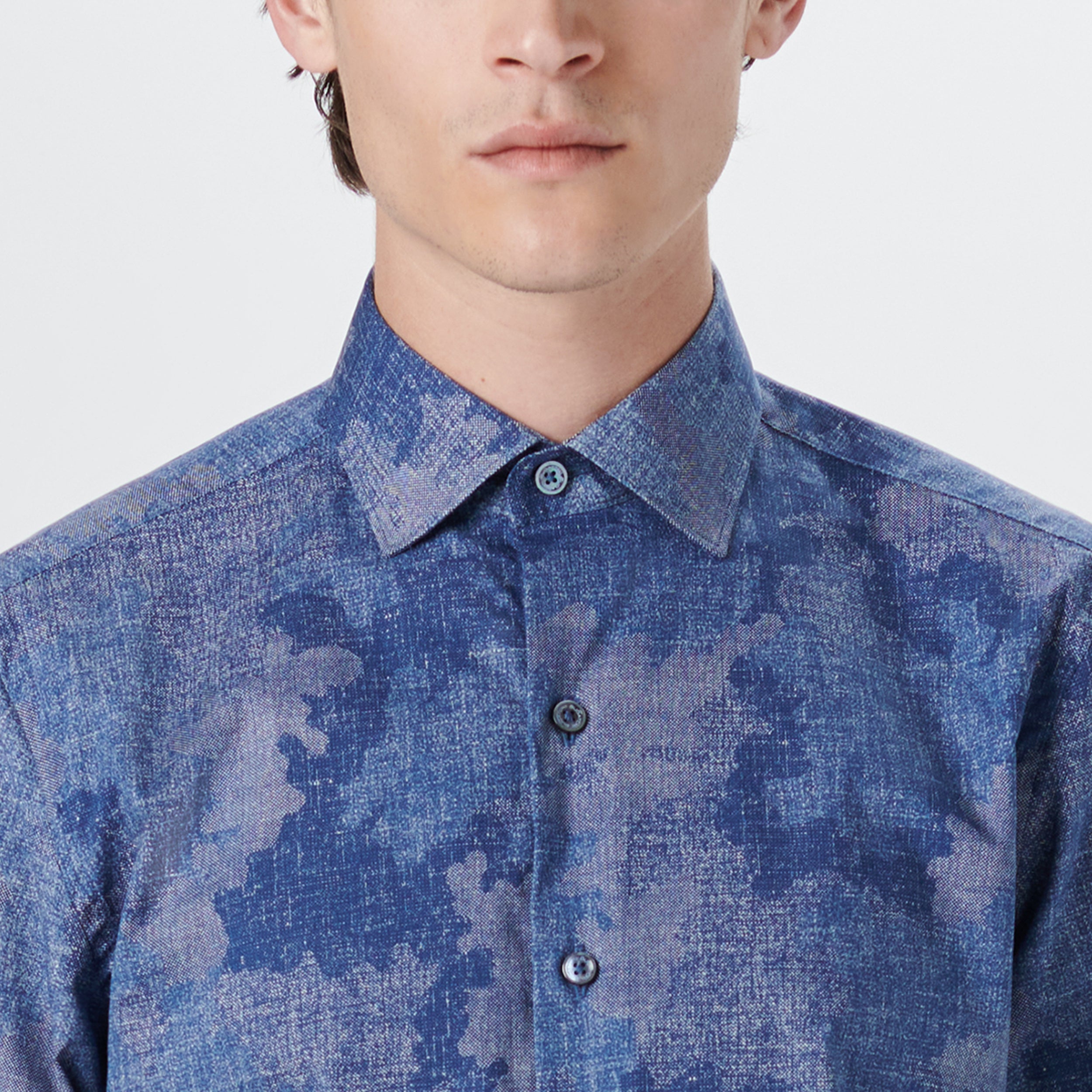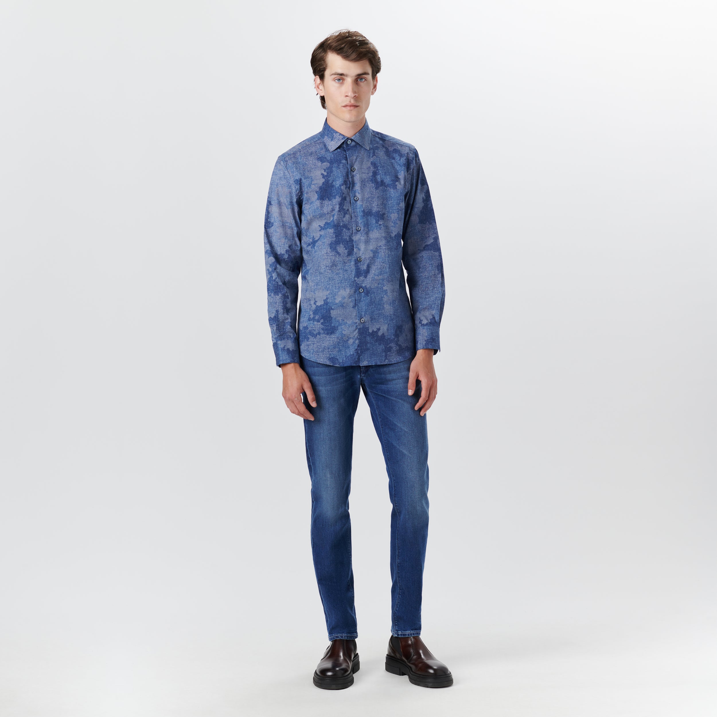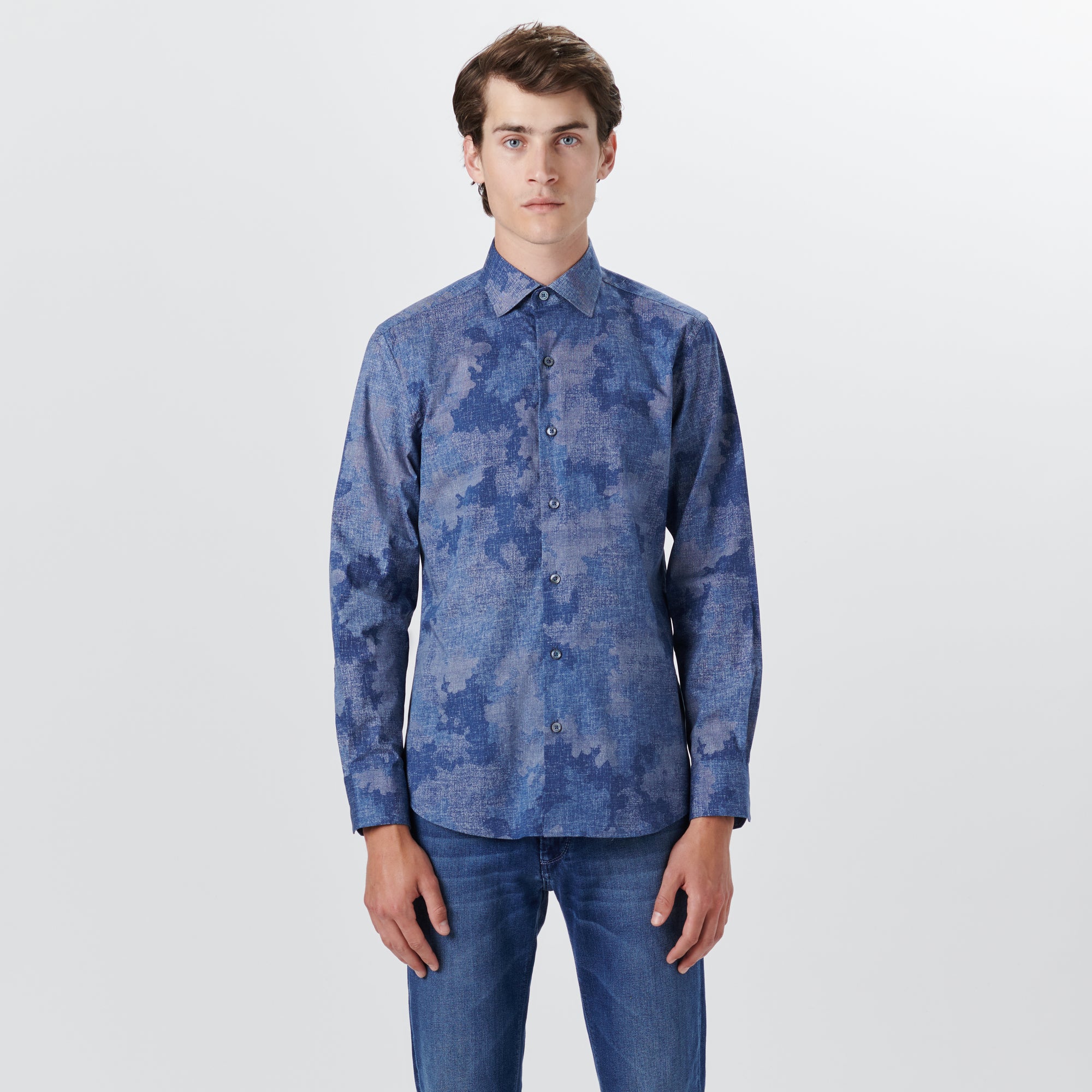 AXEL long-sleeved shirt in camouflage print COMFORT STRETCH cotton with spread collar, adjustable notched cuffs and curved hem.