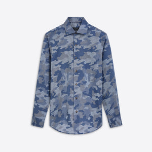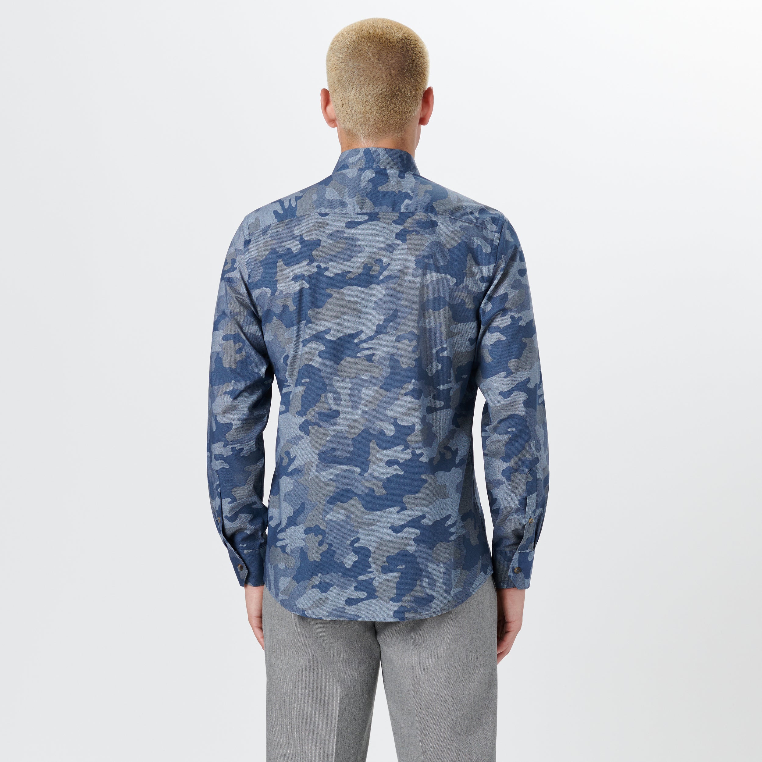 AXEL long-sleeved shirt in camouflage print COMFORT STRETCH cotton with spread collar, adjustable notched cuffs and curved hem.