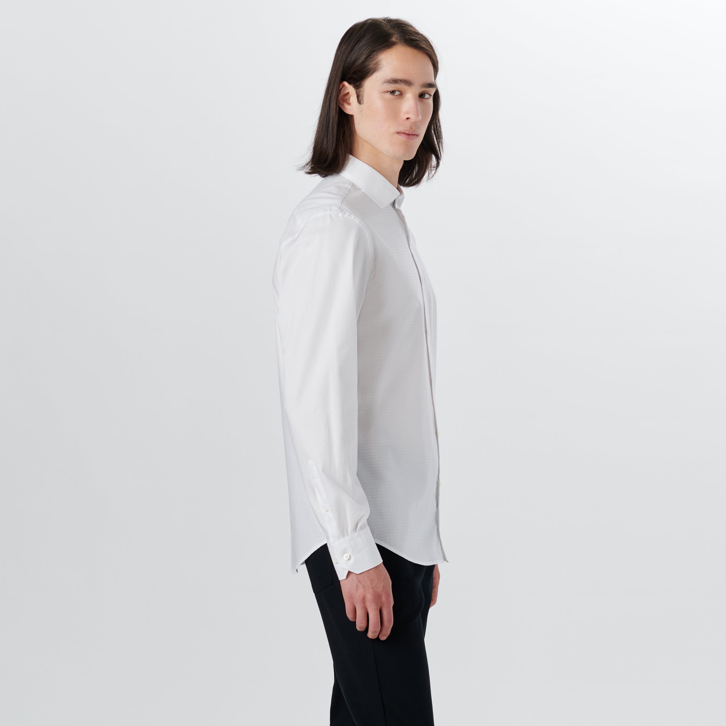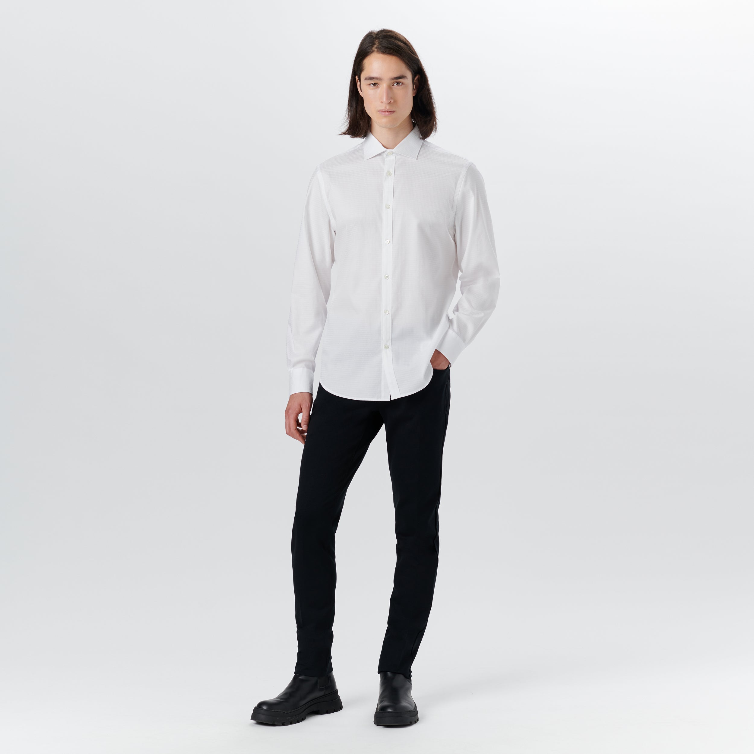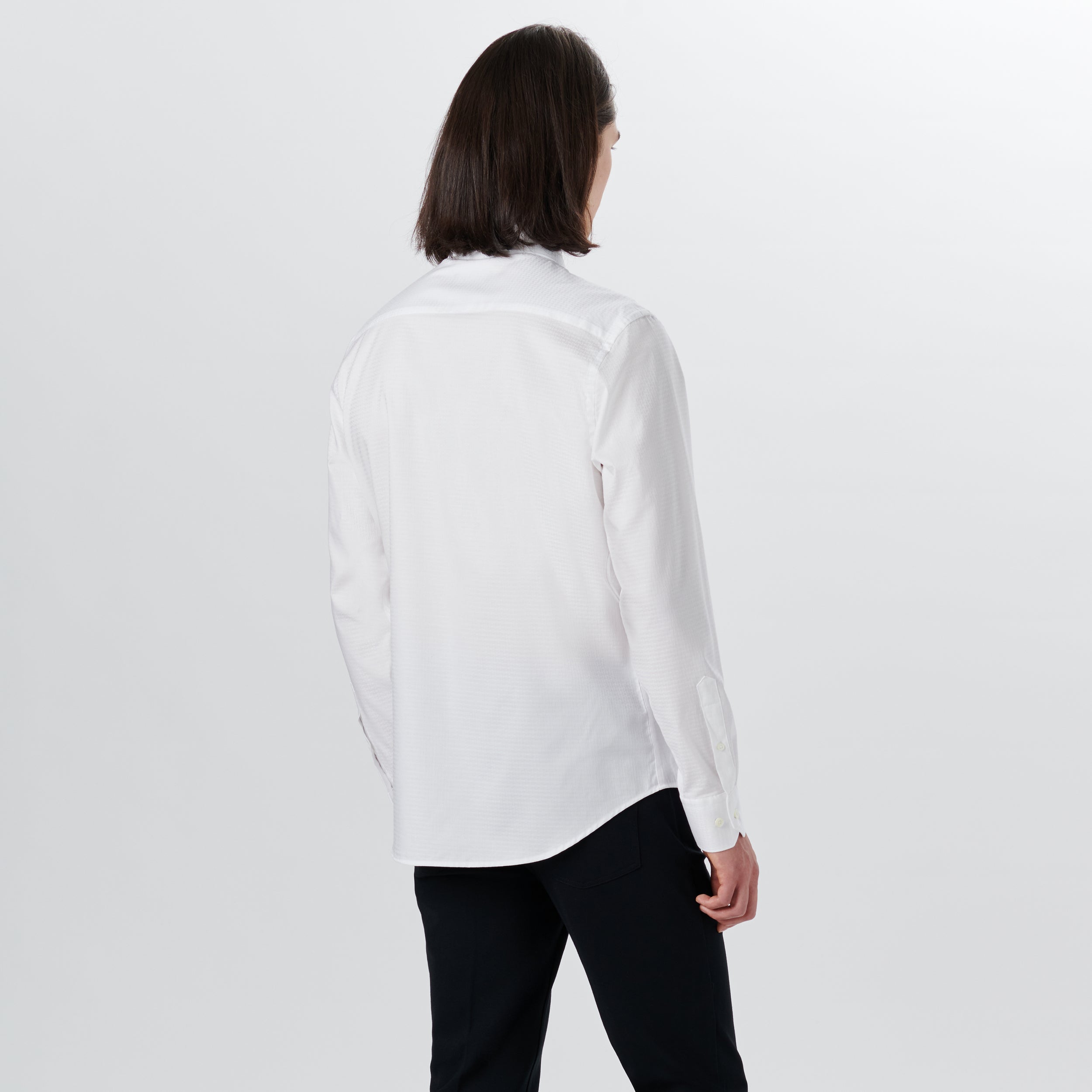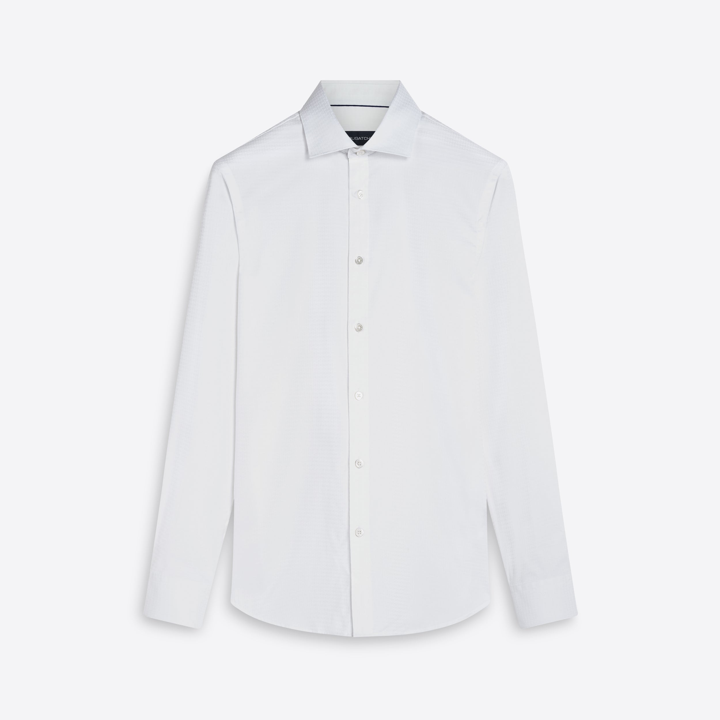 AXEL long-sleeved shirt in chain link COMFORT STRETCH cotton jacquard with spread collar, adjustable notched cuffs and curved hem.