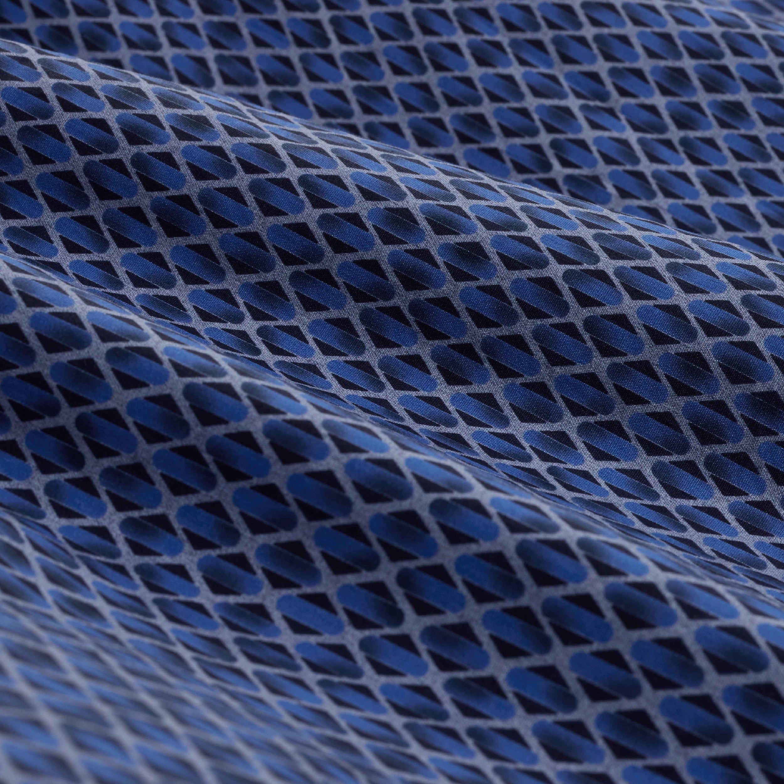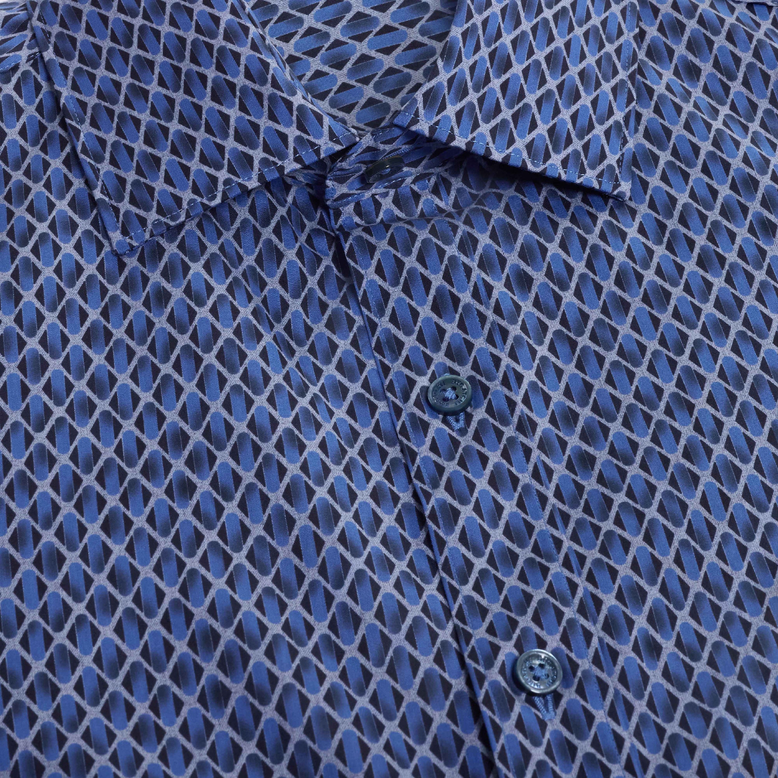 The Axel long-sleeve Comfort Stretch shirt in diamond lattice print is crafted from premium Italian cotton with a hint of stretch for all-day comfort. It features a spread collar, mother-of-pearl buttons, a curved hem that looks great tucked or untucked, and adjustable notched cuffs that also convert for cufflinks. A refined, all-occasion shirt.