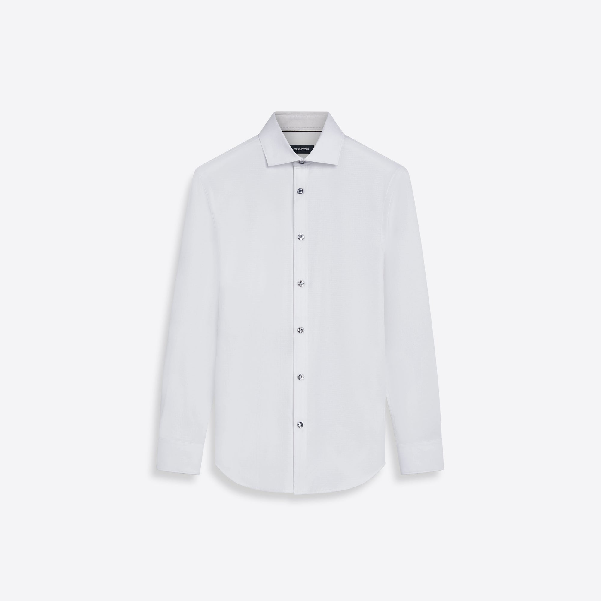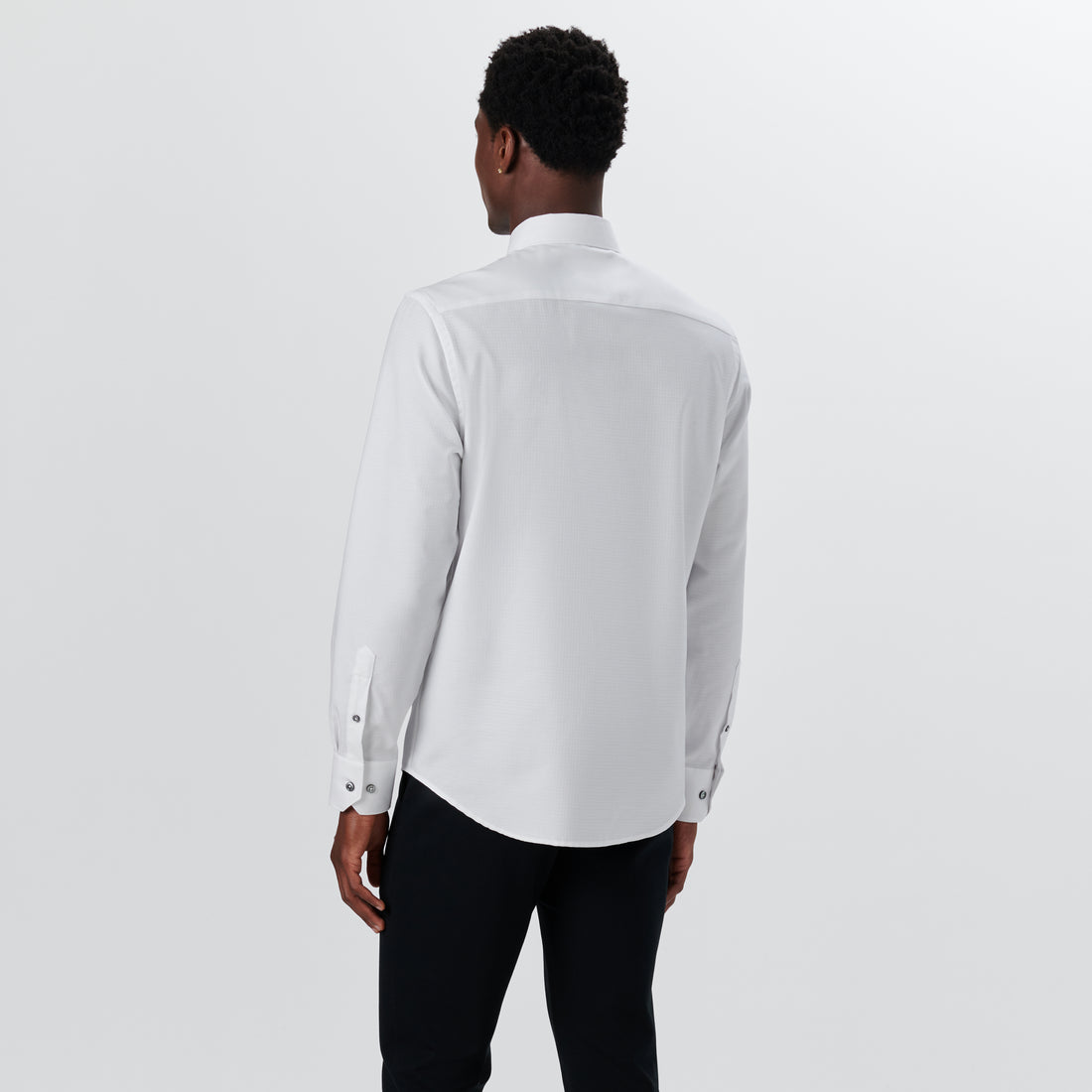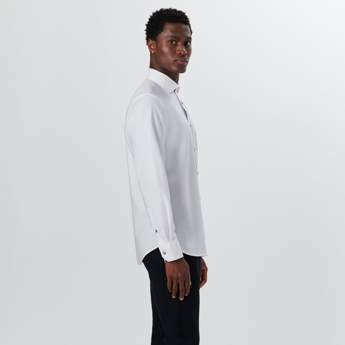 Axel long-sleeved shirt in dot print comfort stretch cotton with spread collar, adjustable notched cuffs and curved hem.