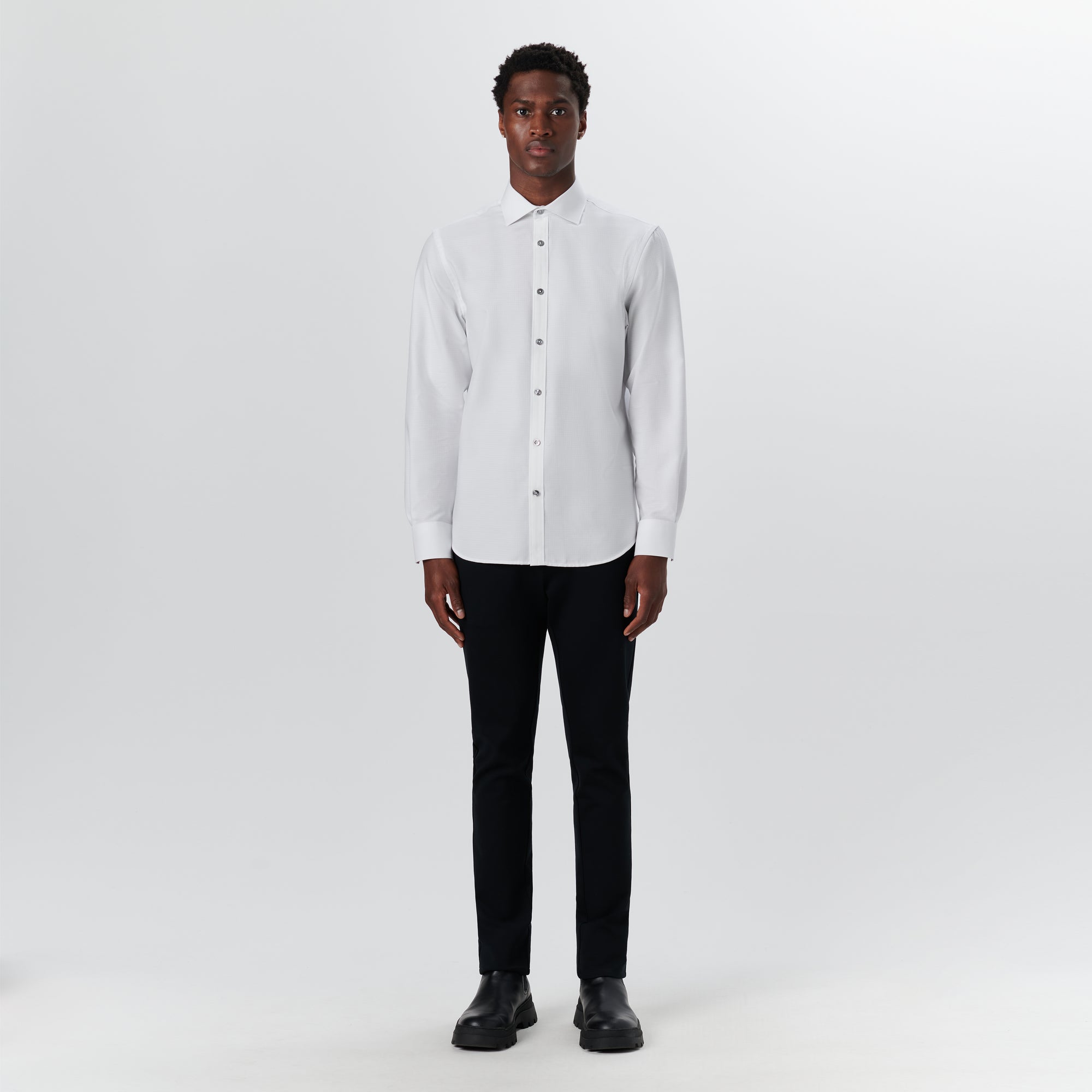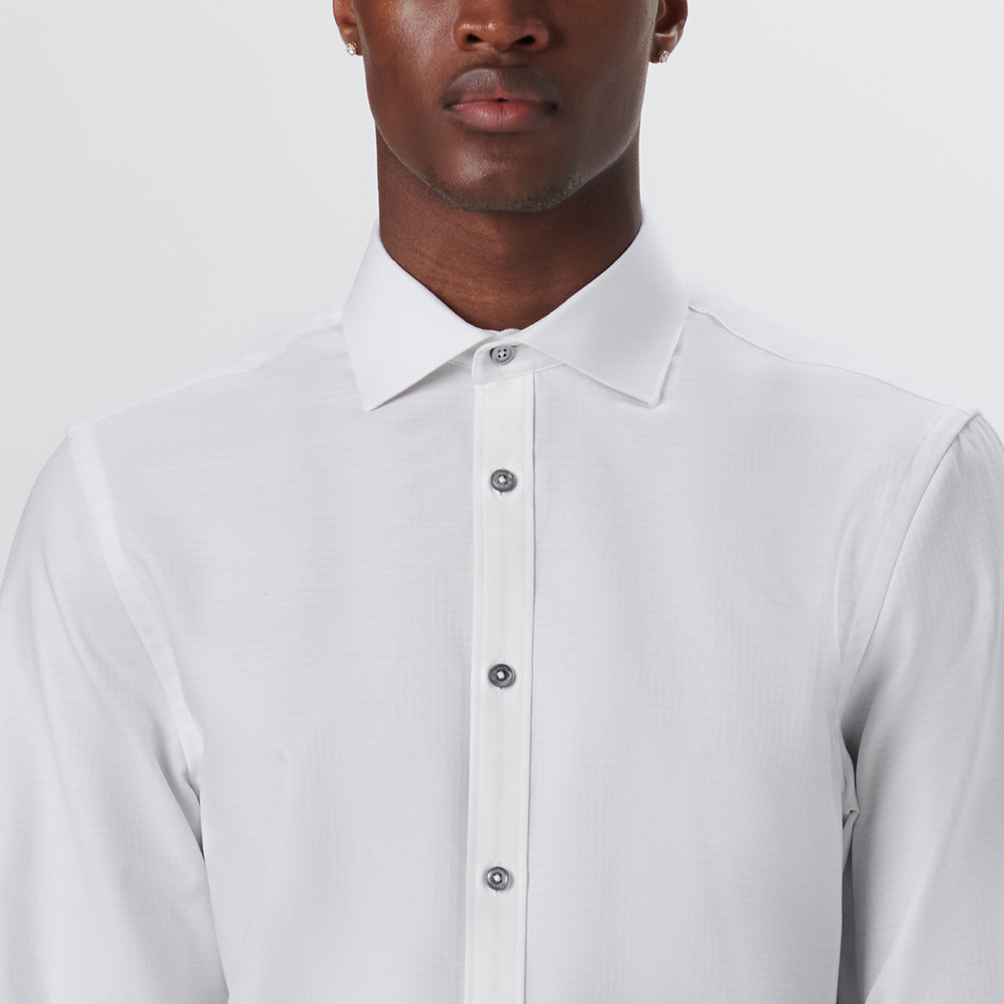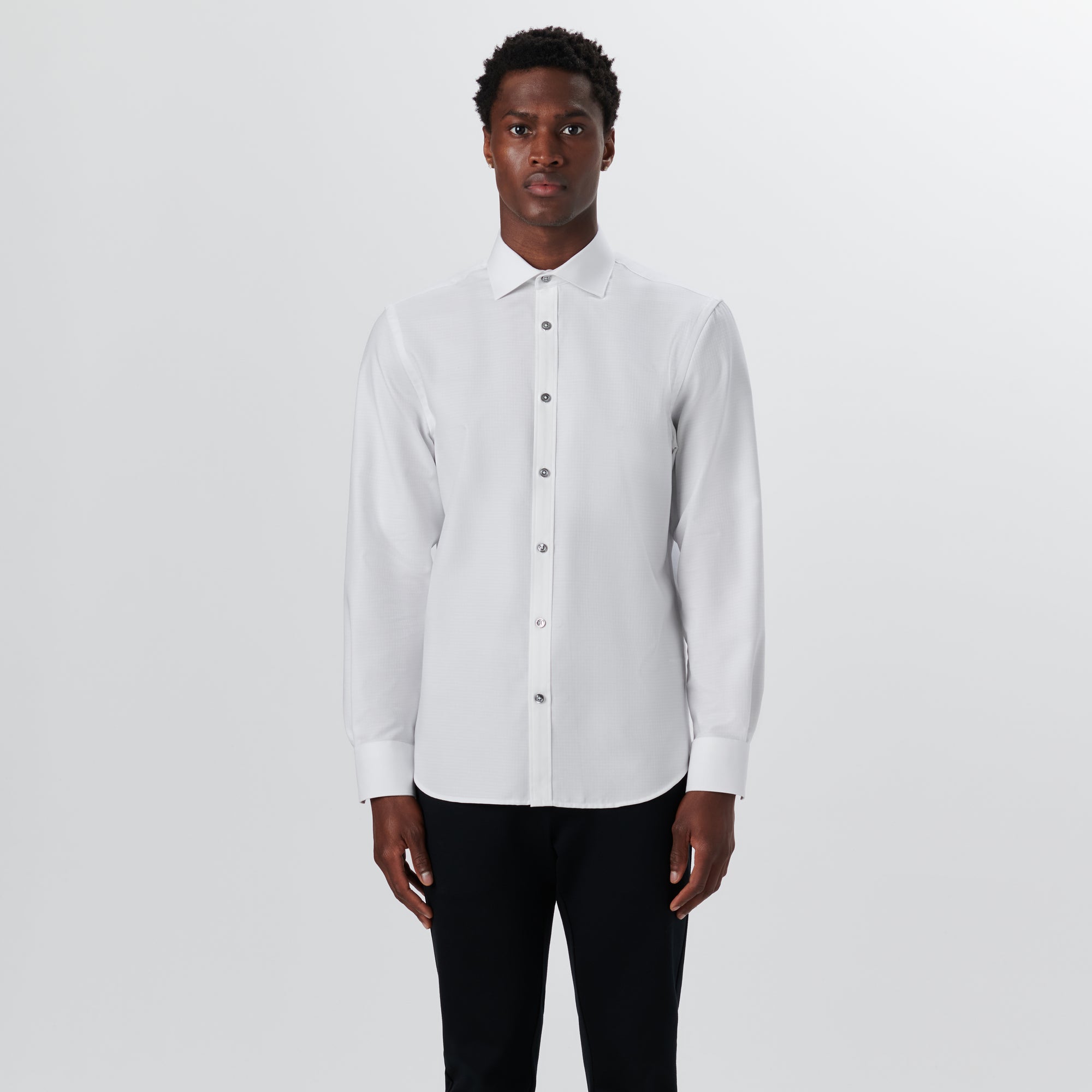 Axel long-sleeved shirt in dot print comfort stretch cotton with spread collar, adjustable notched cuffs and curved hem.