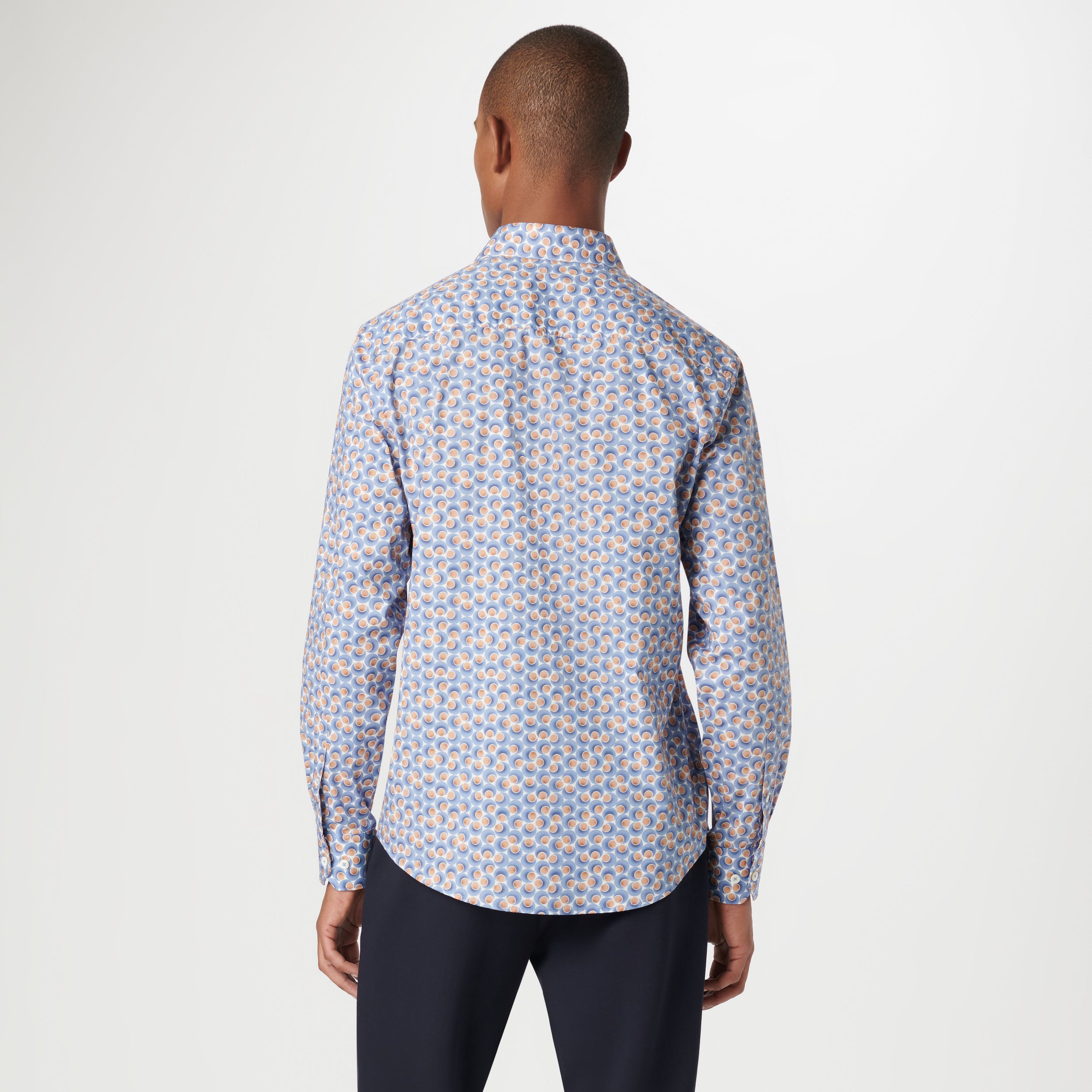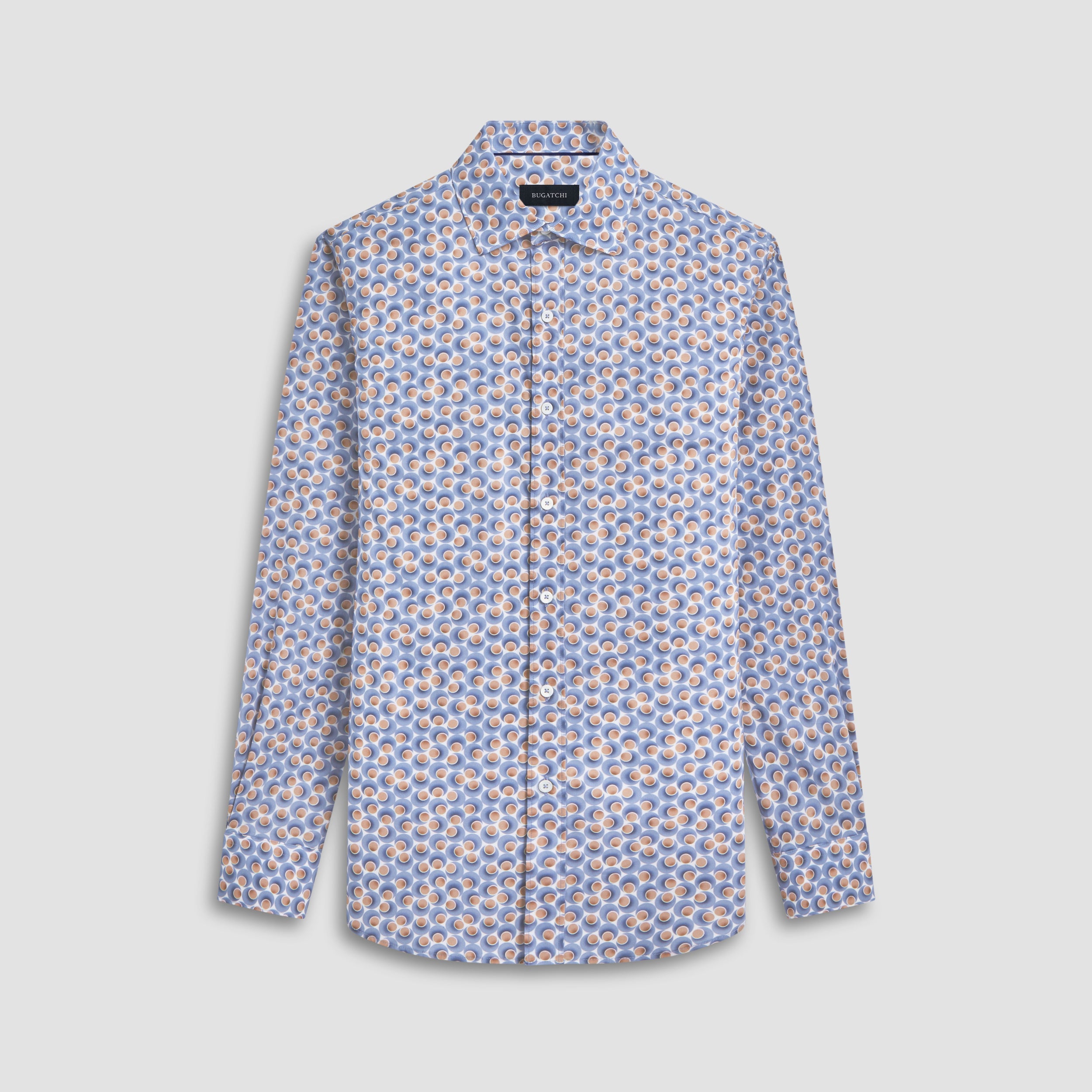 The Axel long-sleeved shirt is crafted from Comfort Stretch cotton and features a dot print, a spread collar, adjustable notched cuffs, and a curved hem.