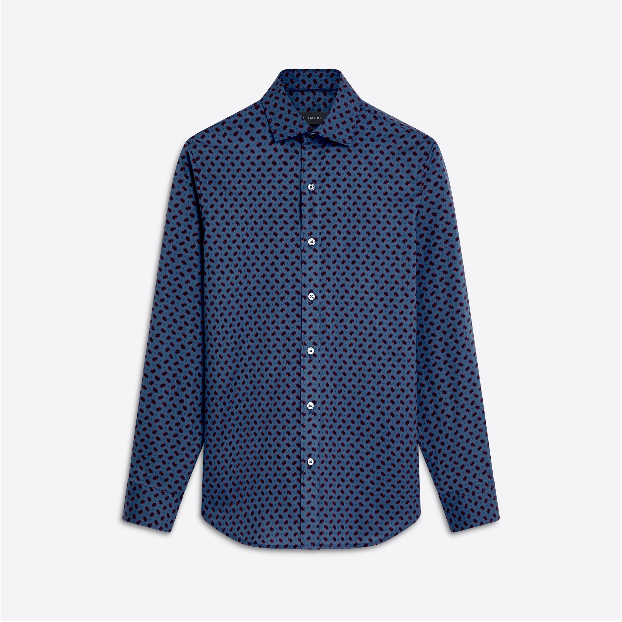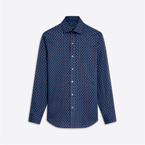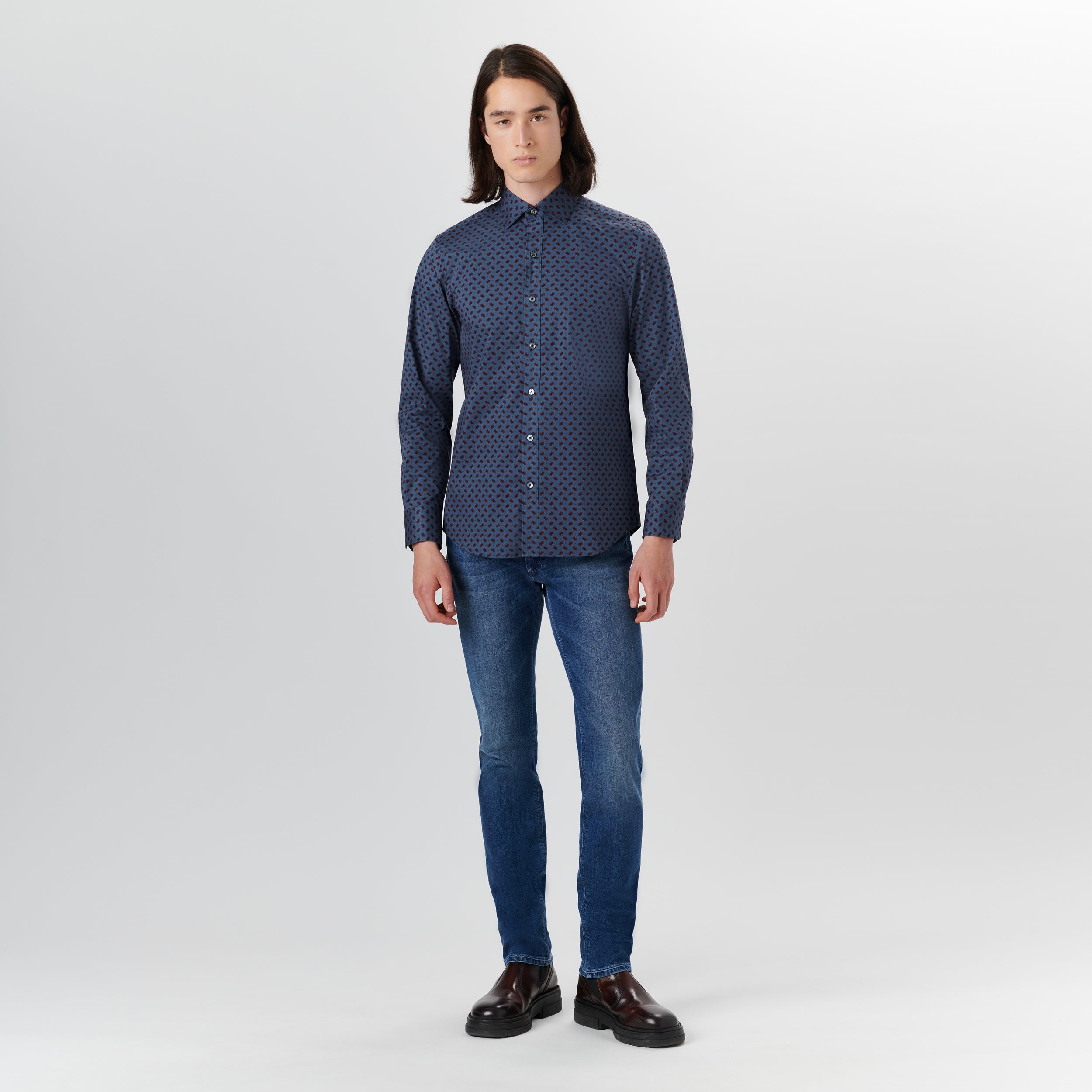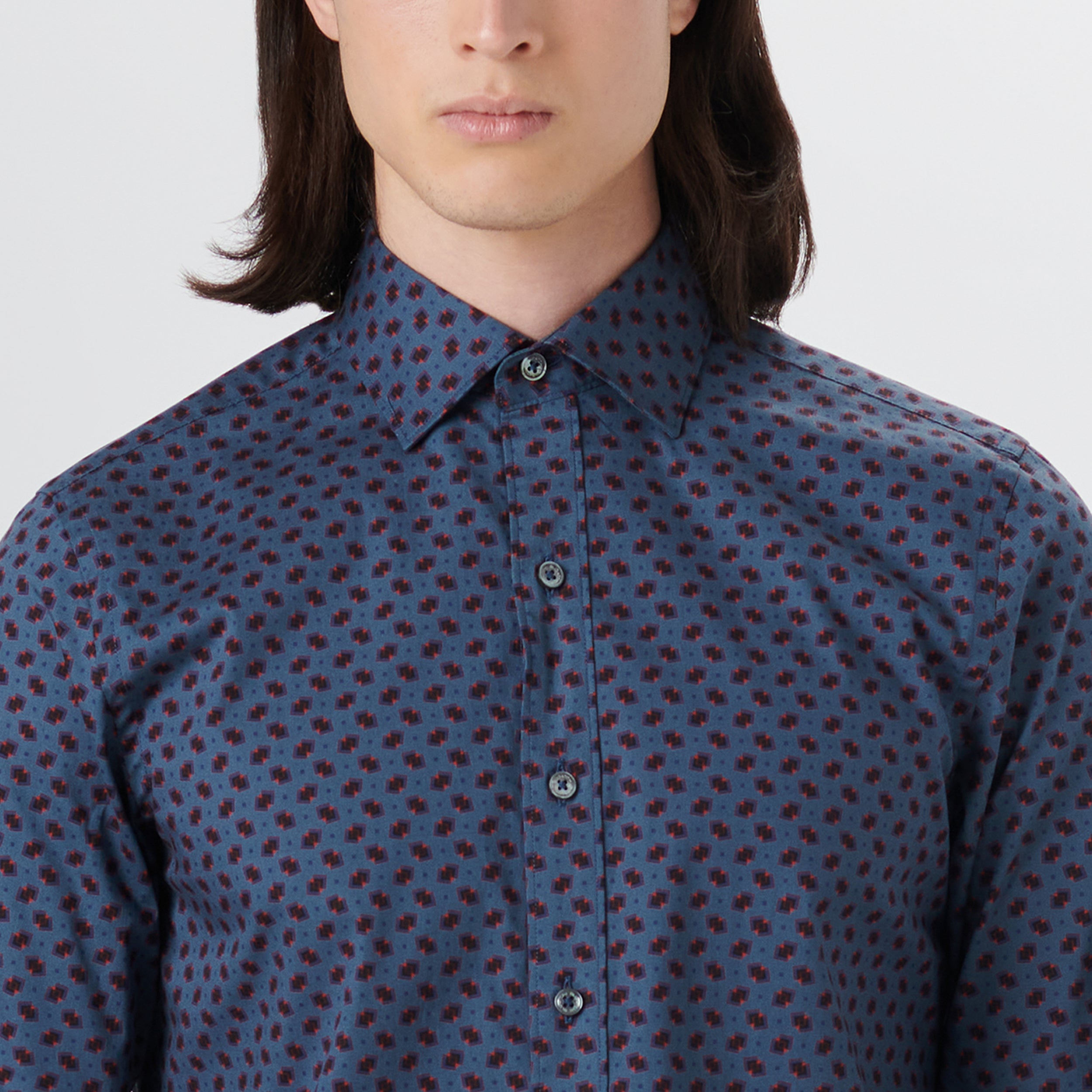 AXEL long-sleeved shirt in geometric print COMFORT STRETCH cotton with spread collar, adjustable notched cuffs and curved hem.