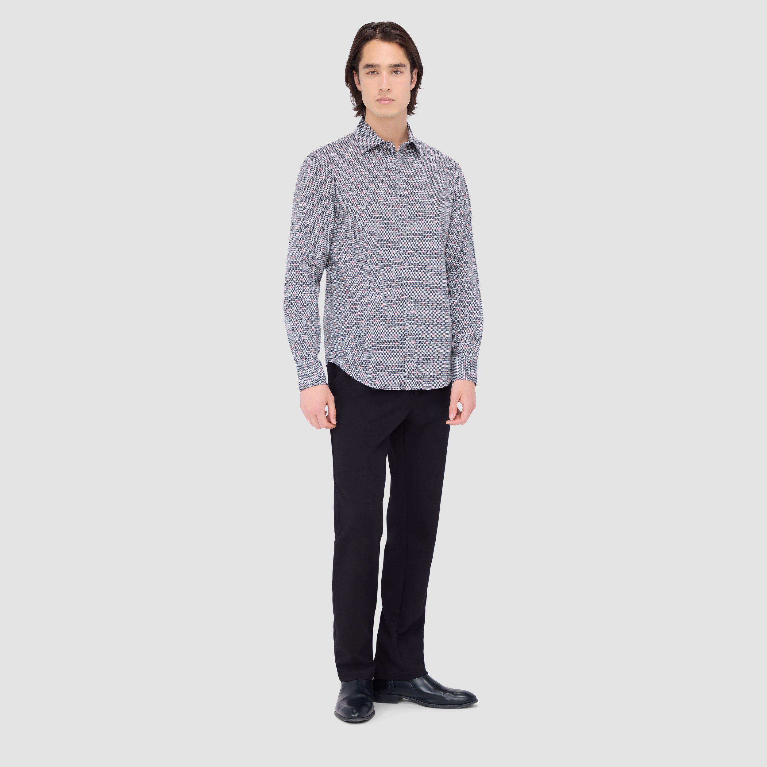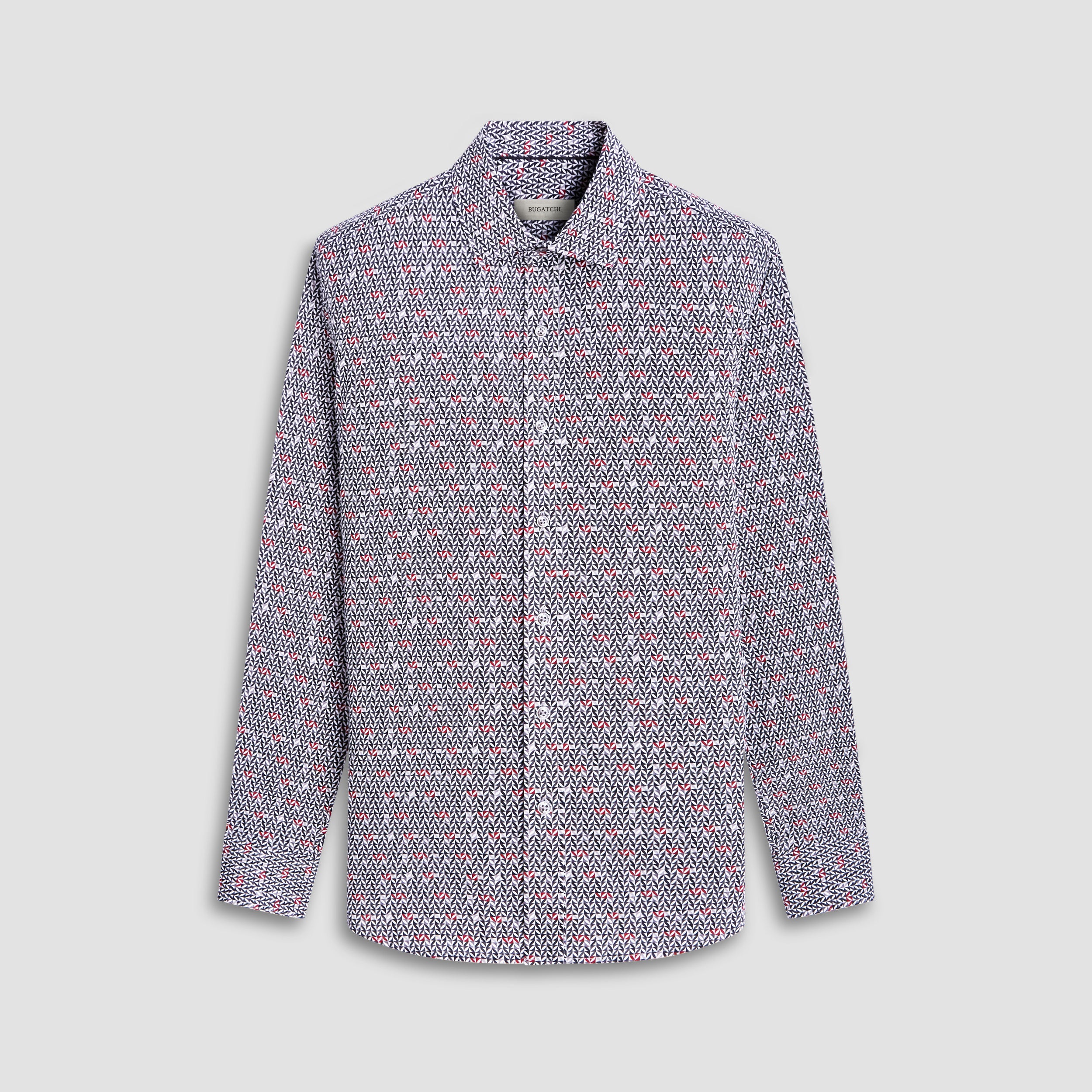 The Axel shirt in COMFORT STRETCH cotton is a contemporary and versatile shirt with optimal comfort and freedom of movement properties. Its timeless and sleek silhouette features long sleeves, a spread collar, adjustable notched cuffs, a curved hem, and an eye-catching geometric print. Wear it tucked or untucked with chinos or trousers for a smart-casual vibe, or with jeans for a relaxed look.