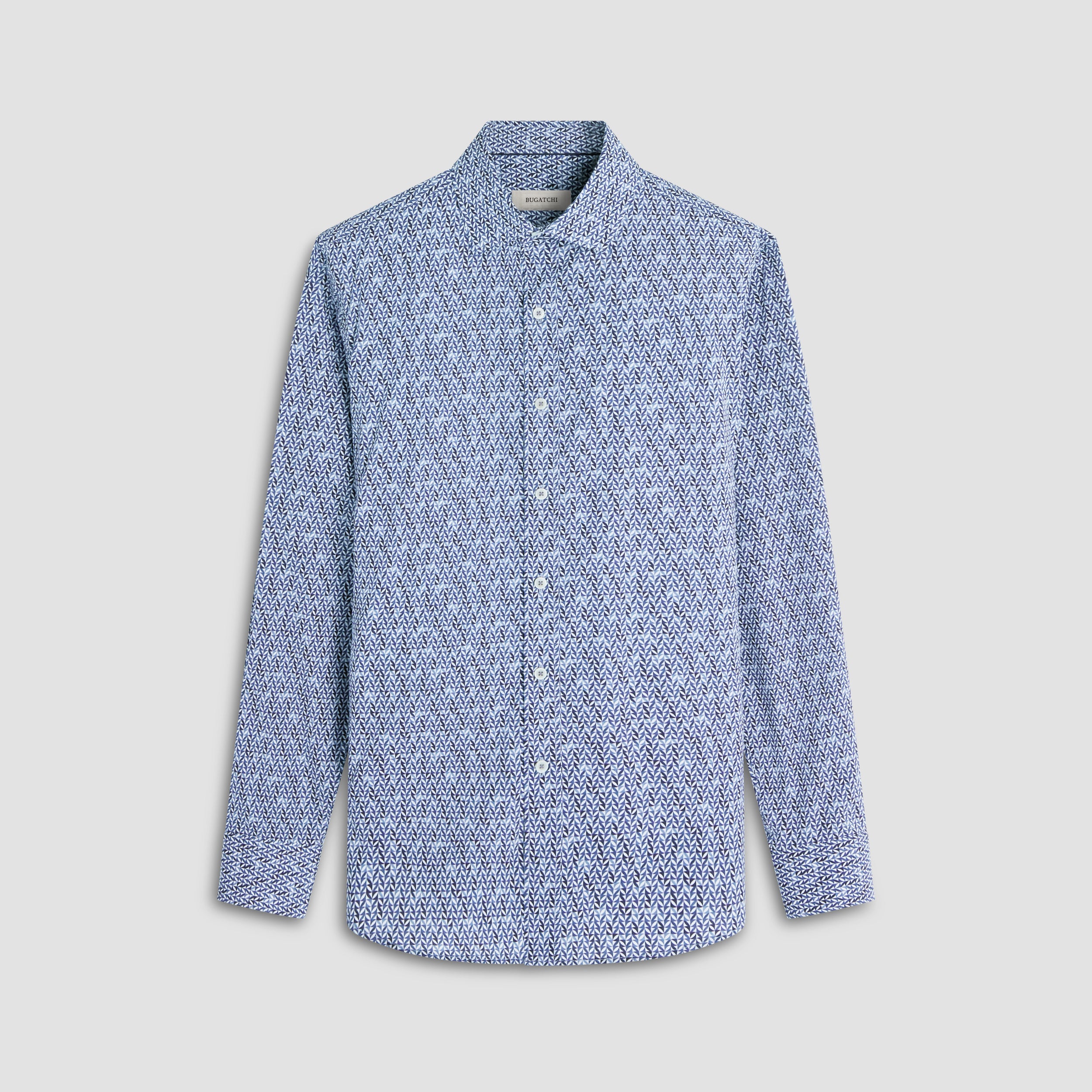 The Axel shirt in COMFORT STRETCH cotton is a contemporary and versatile shirt with optimal comfort and freedom of movement properties. Its timeless and sleek silhouette features long sleeves, a spread collar, adjustable notched cuffs, a curved hem, and an eye-catching geometric print. Wear it tucked or untucked with chinos or trousers for a smart-casual vibe, or with jeans for a relaxed look.