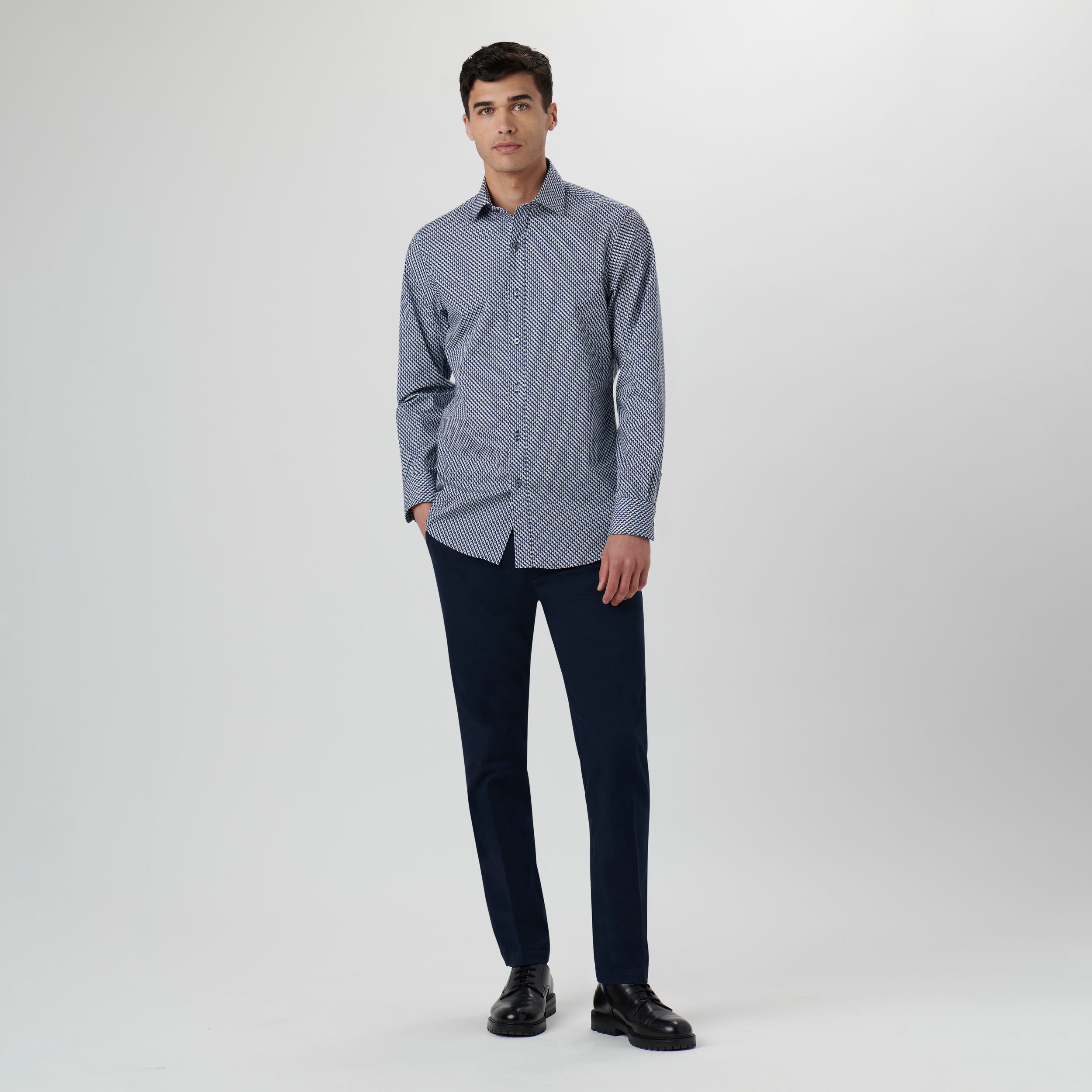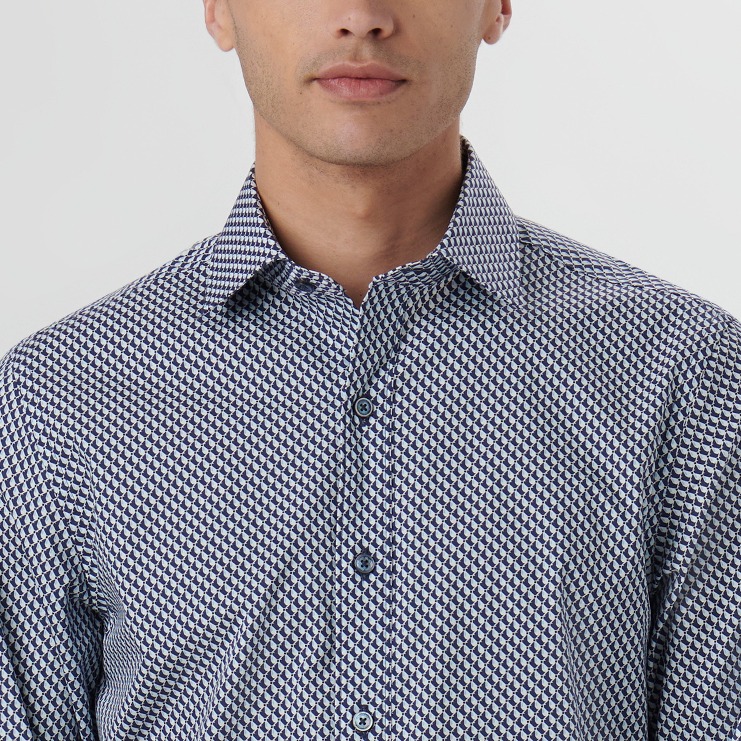 Axel long-sleeved shirt in geometric print COMFORT STRETCH cotton with spread collar, adjustable notched cuffs and curved hem.