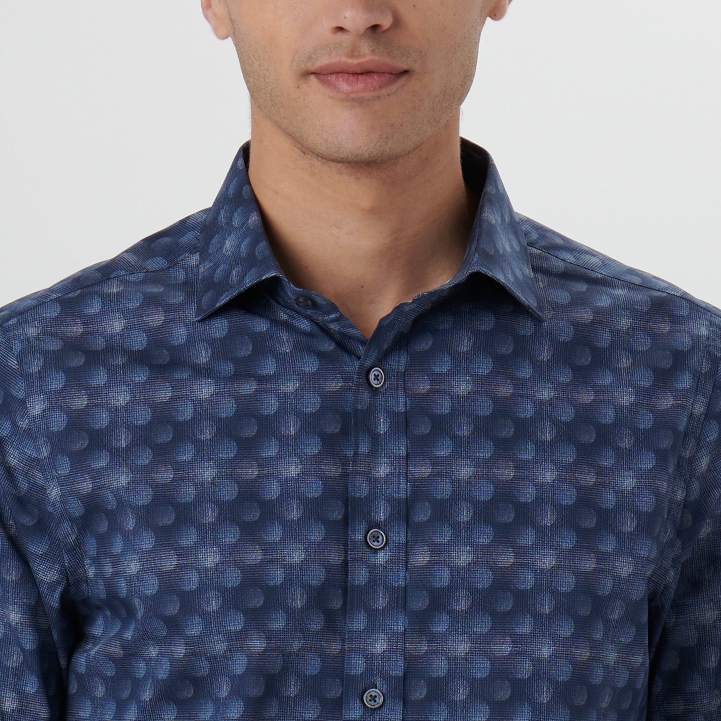 Axel long-sleeved shirt in geometric print COMFORT STRETCH cotton with spread collar, adjustable notched cuffs and curved hem.