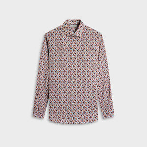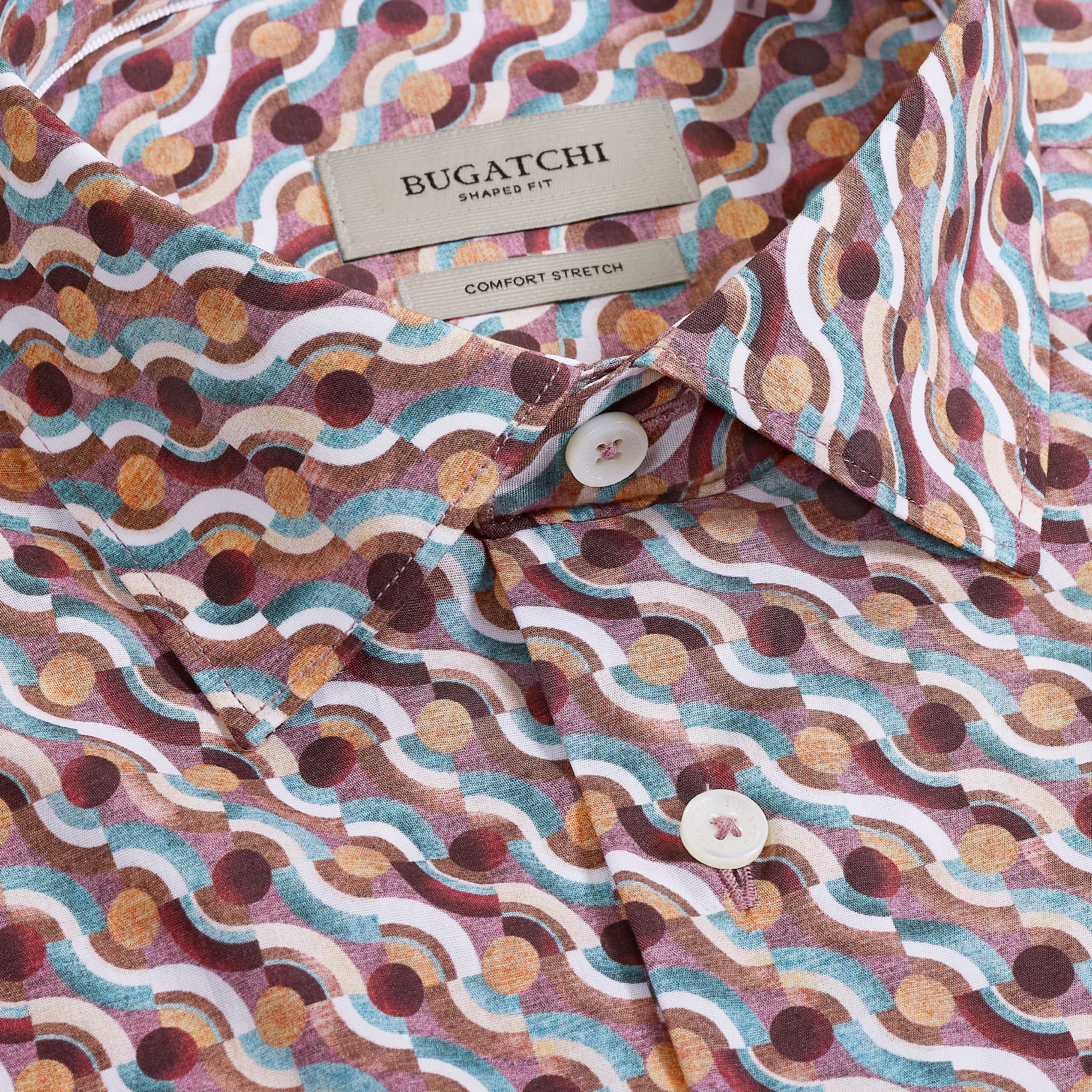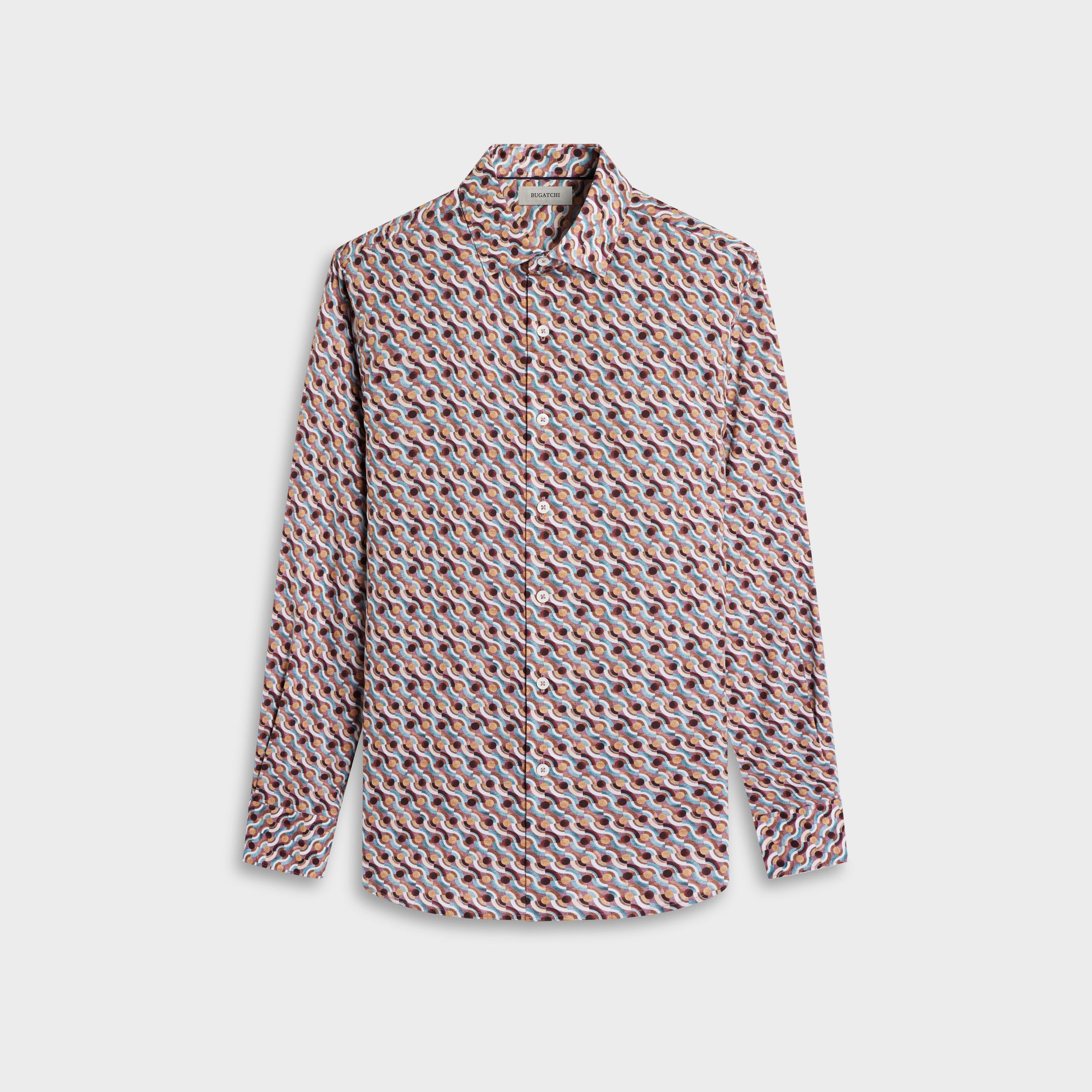 The Axel long-sleeve Comfort Stretch shirt is crafted from premium Italian cotton fabric with added stretch for all-day ease, in a retro geometric wave print. Designed with a spread collar, genuine mother-of-pearl buttons, and adjustable notched cuffs that also convert for cufflinks. A versatile shirt that looks polished whether tucked or untucked.