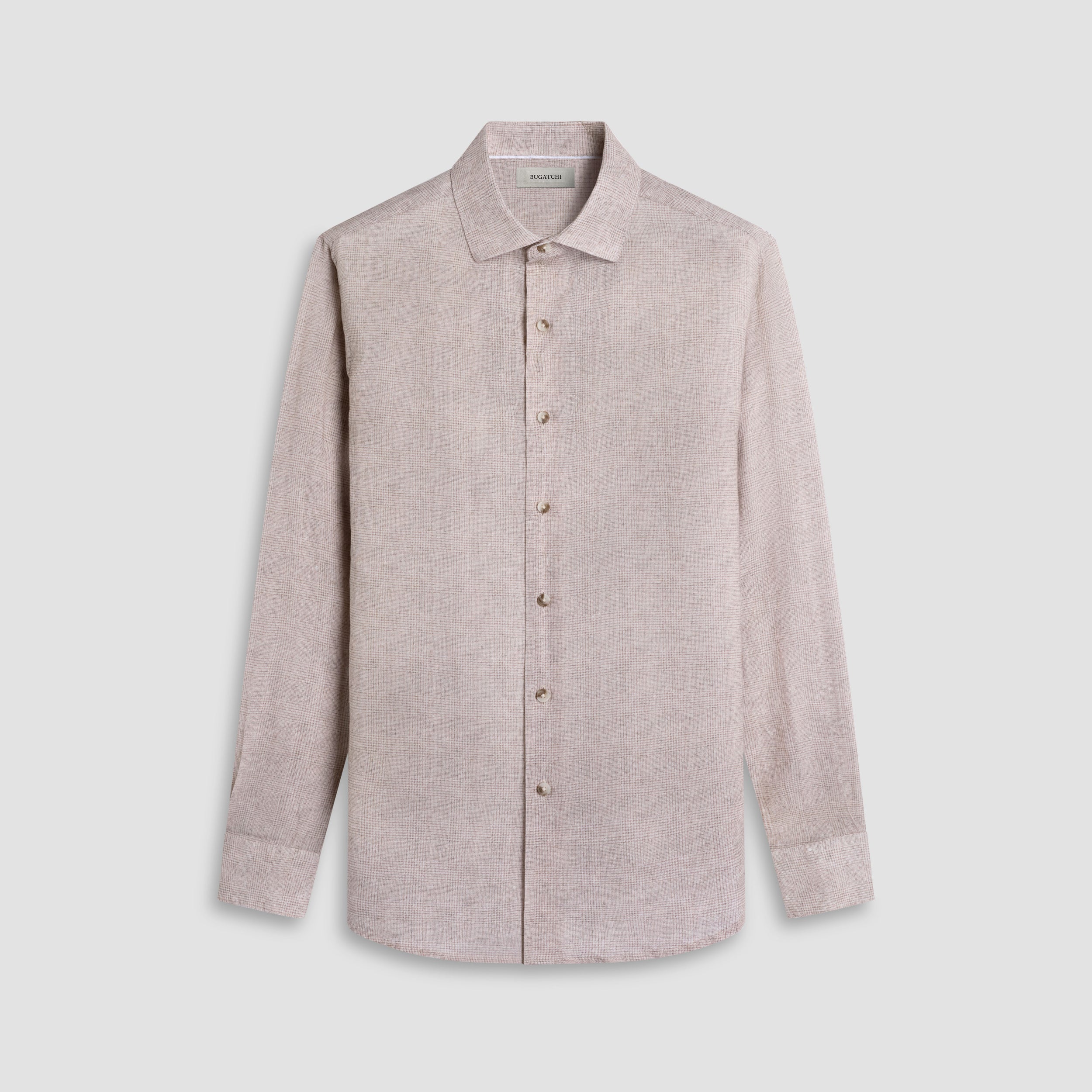 The Axel long-sleeve shirt is made in Italy from 100% premium Italian linen, offering lightweight breathability and a naturally refined texture. Featuring a tonal Glen plaid pattern that balances casual ease with tailored sophistication, it's designed with a spread collar and adjustable notched cuffs . A timeless shirt that embodies effortless Italian craftsmanship and relaxed elegance.