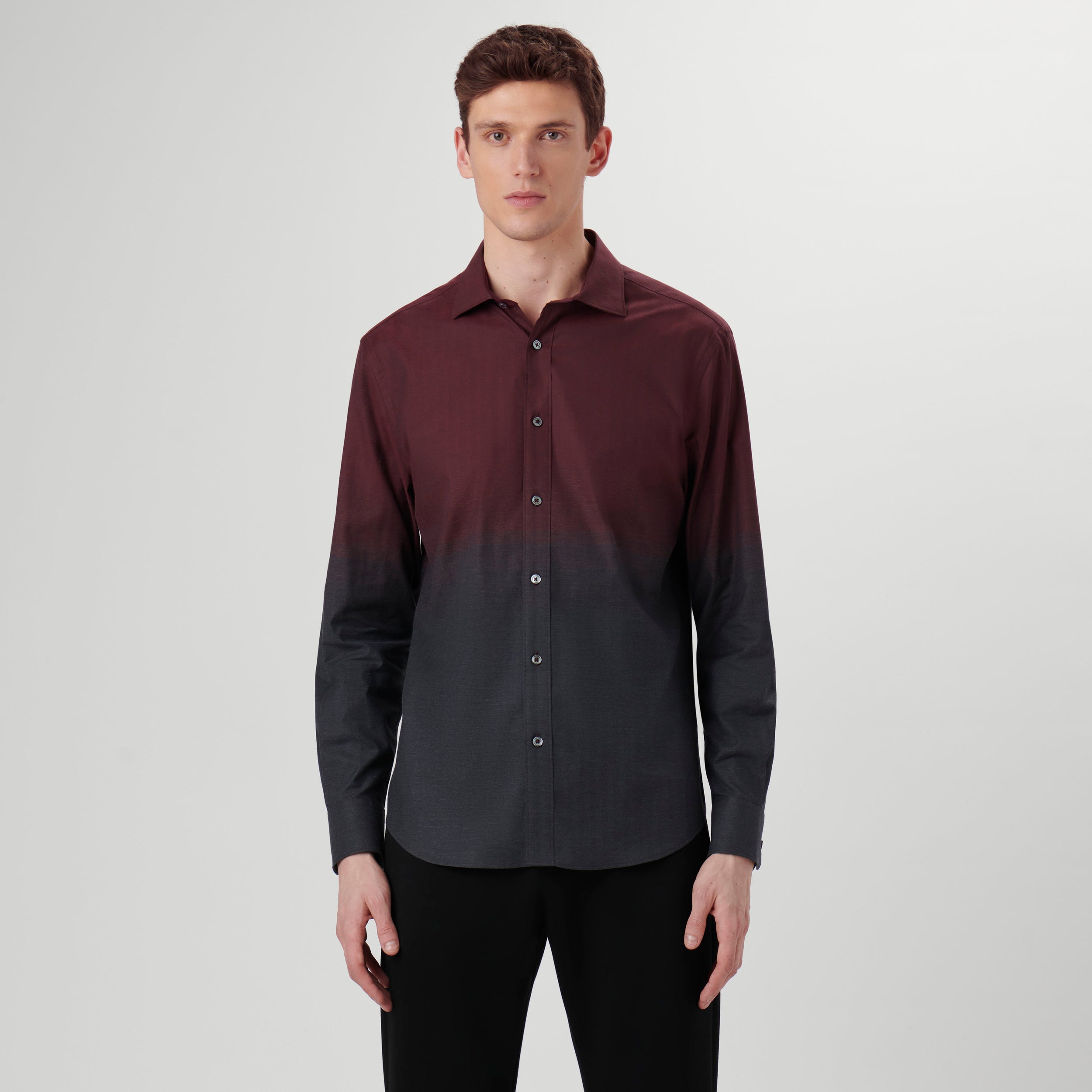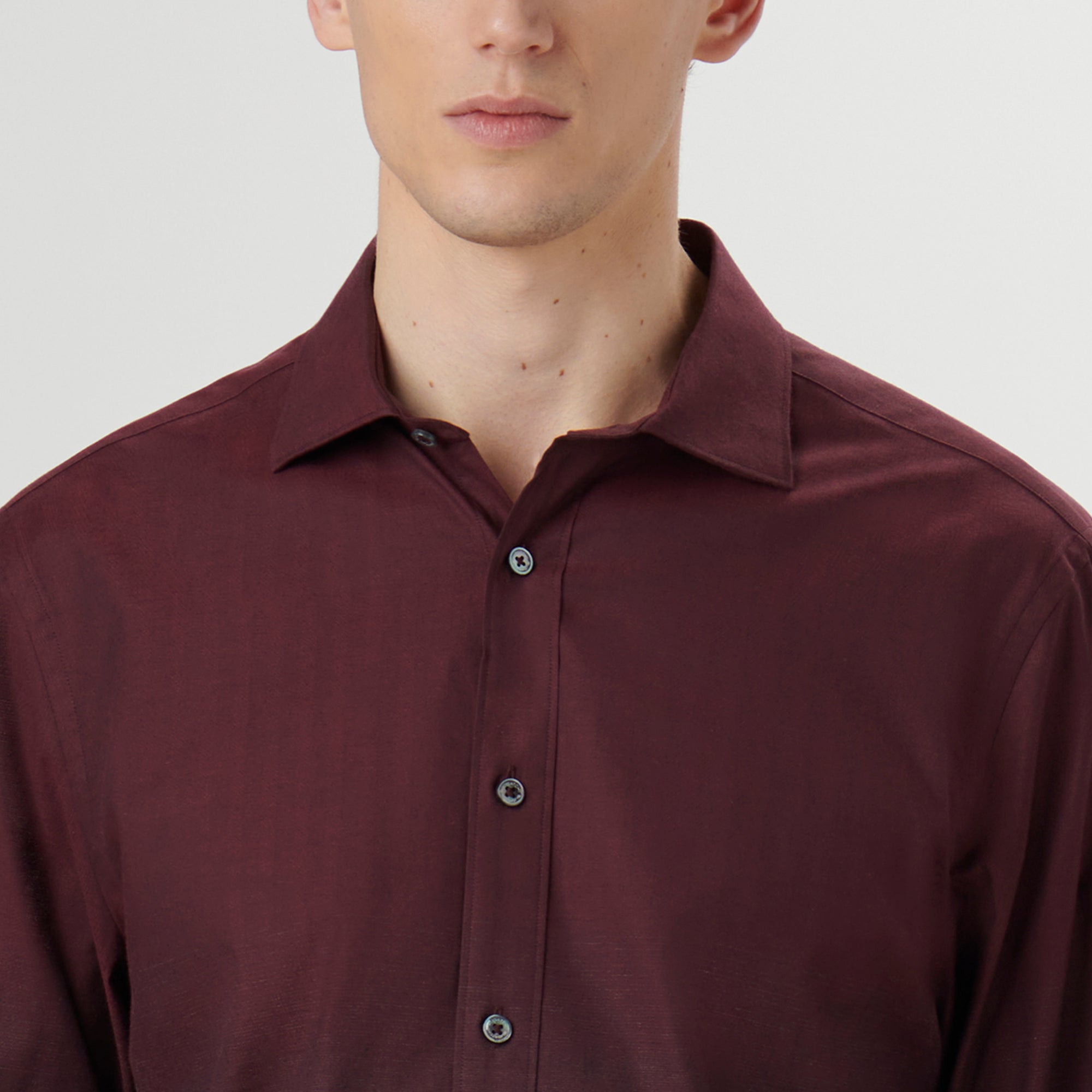 Axel long-sleeved shirt in herringbone COMFORT STRETCH cotton with spread collar, adjustable notched cuffs and curved hem.