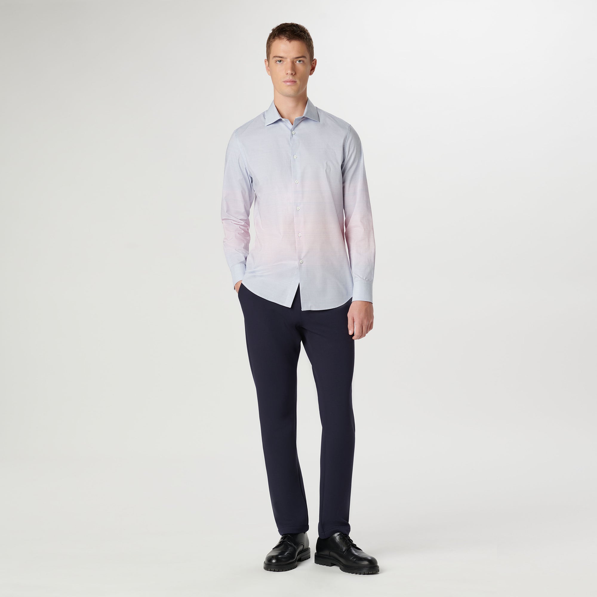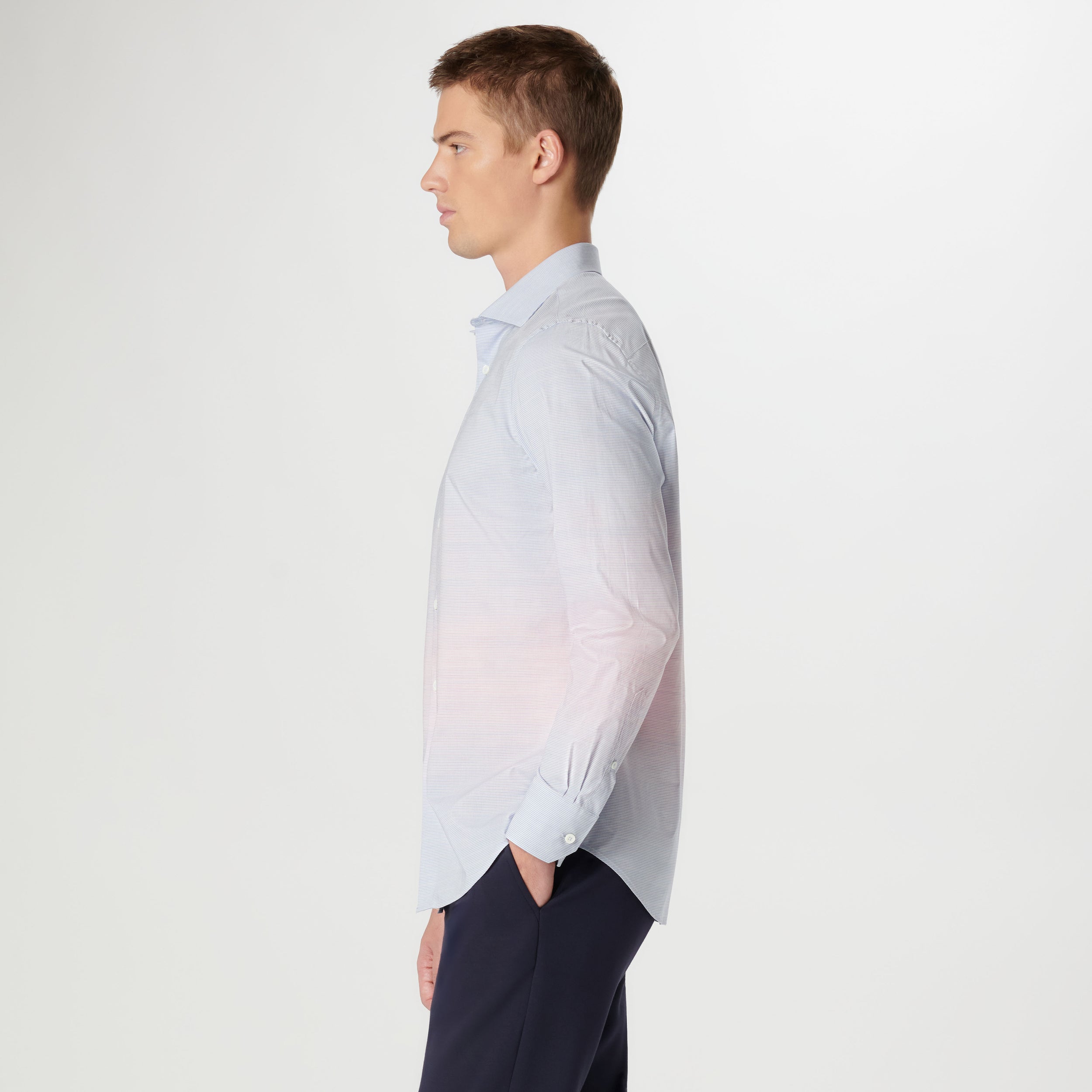 The Axel long-sleeved shirt is crafted from 100% superfine cotton and features a mini shepherd check, a spread collar, adjustable notched cuffs, and a curved hem.