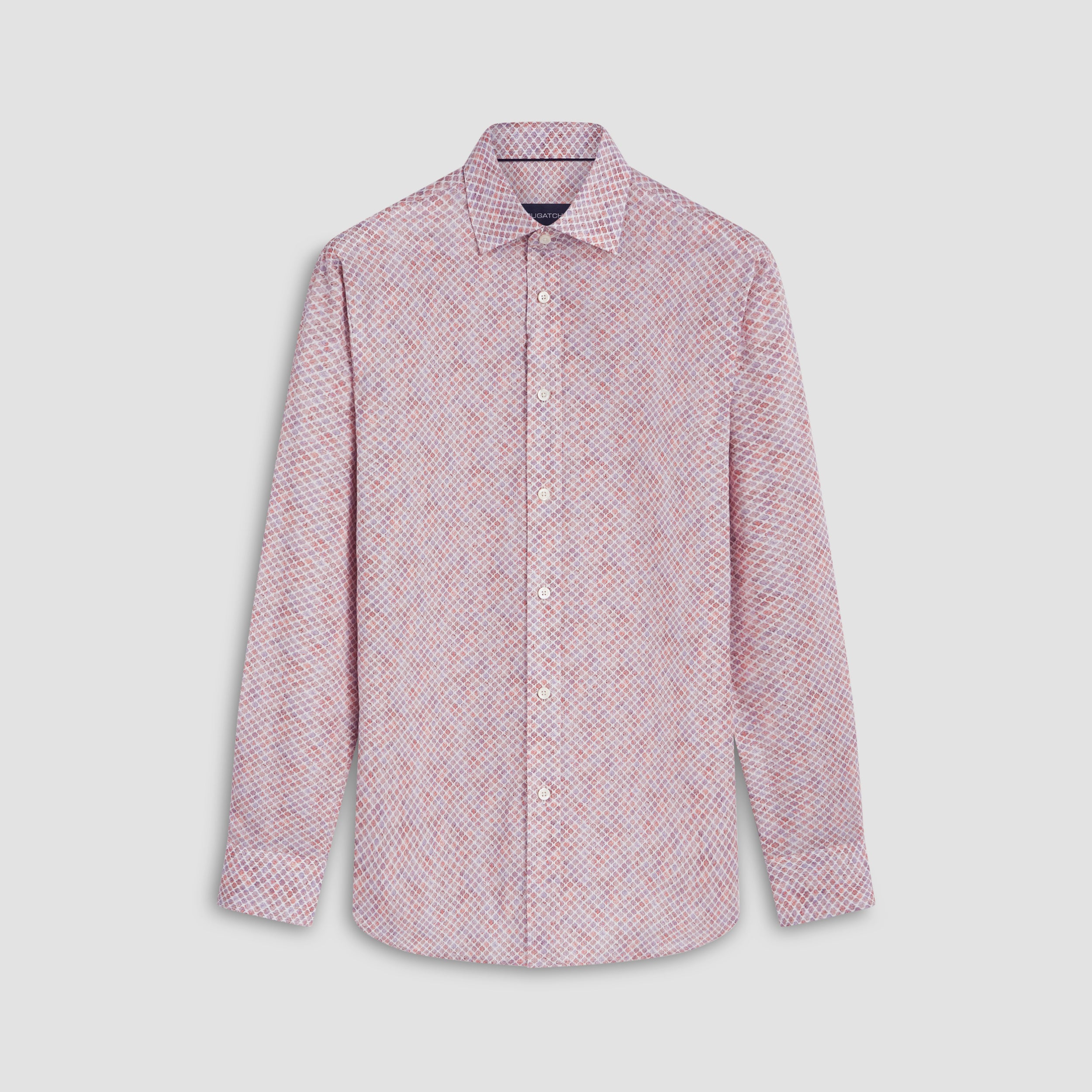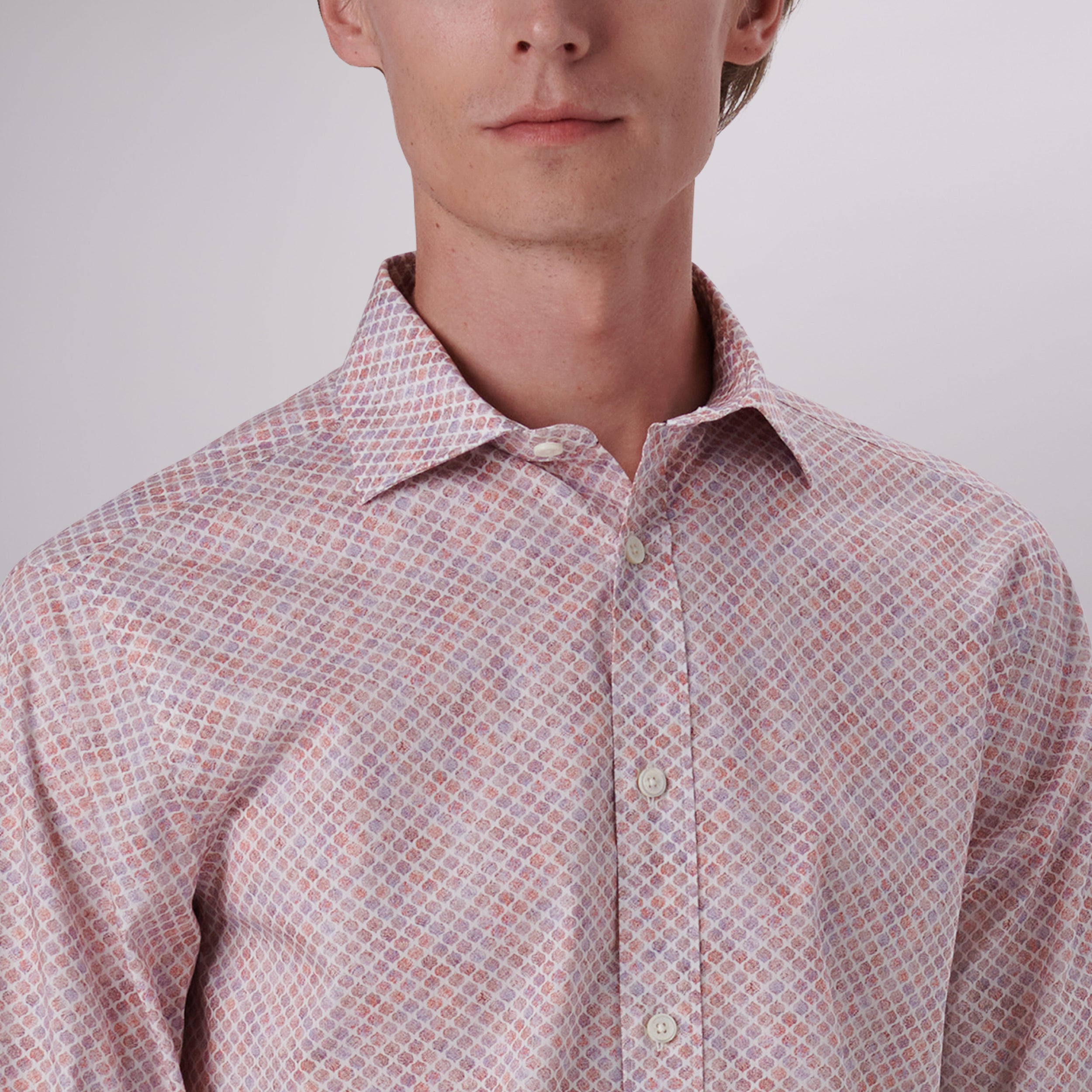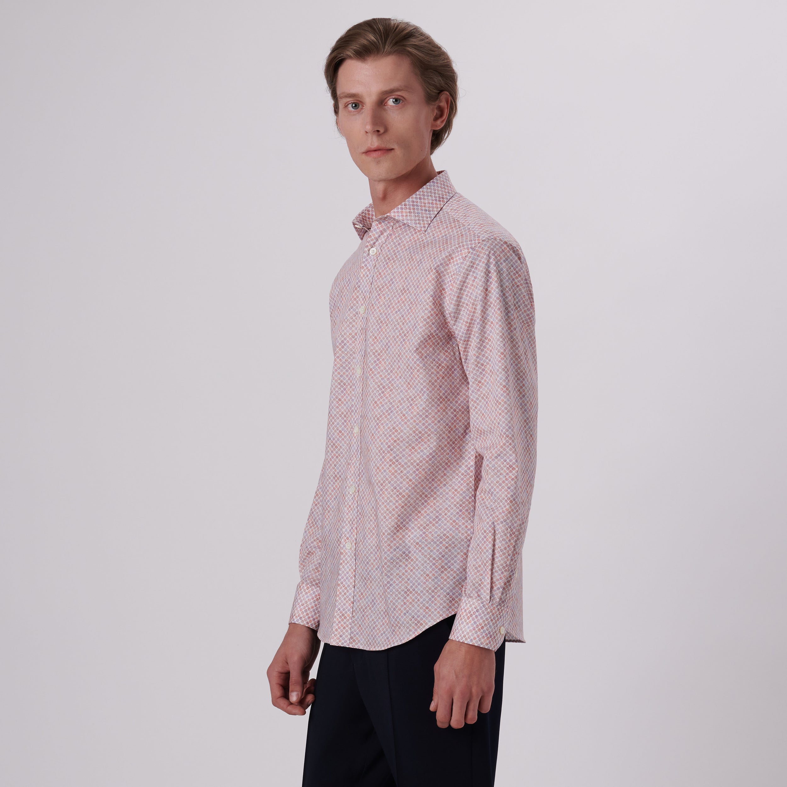 Axel ogee print long-sleeved shirt in comfort stretch cotton with spread collar, adjustable notched cuffs, genuine shell buttons and a curved hemline.