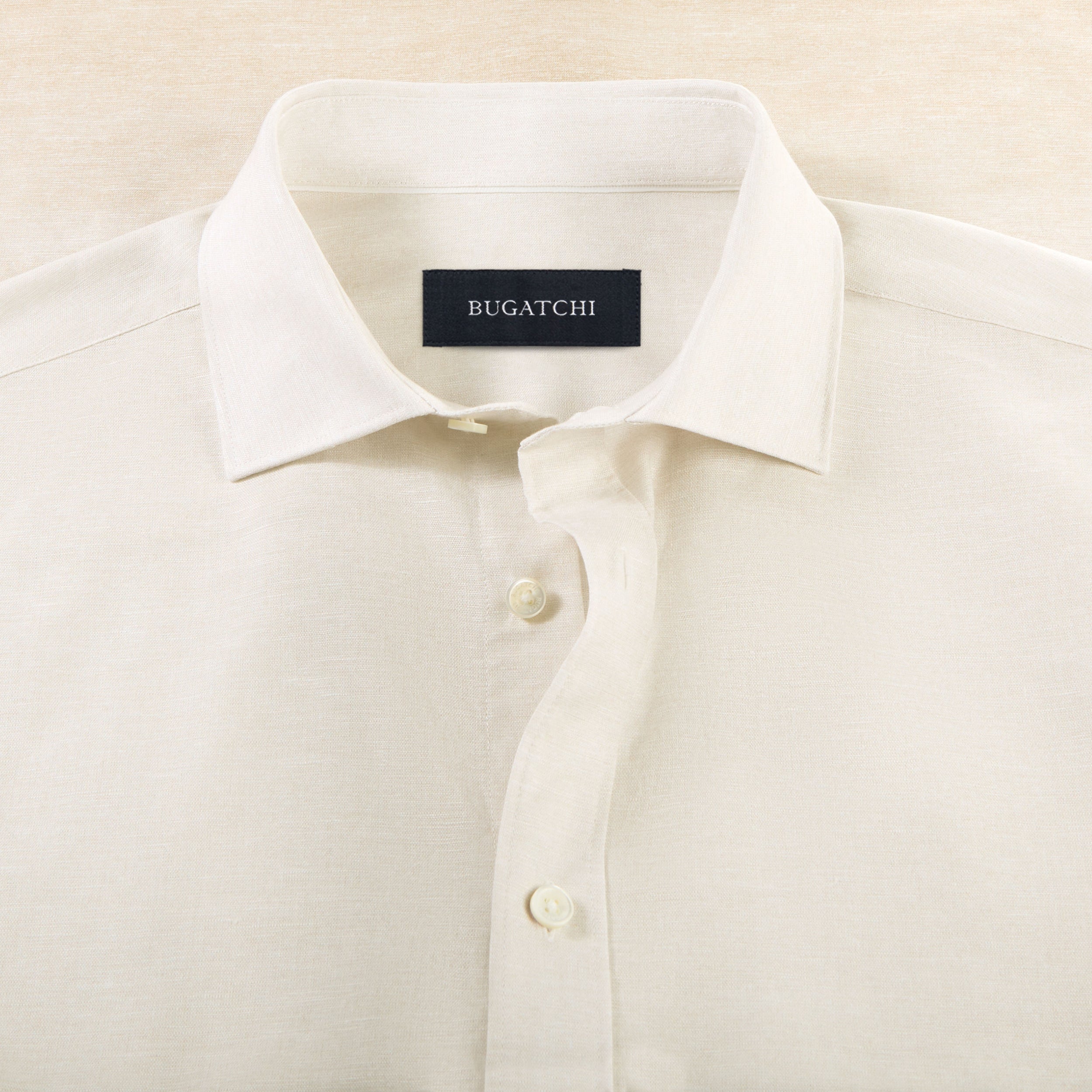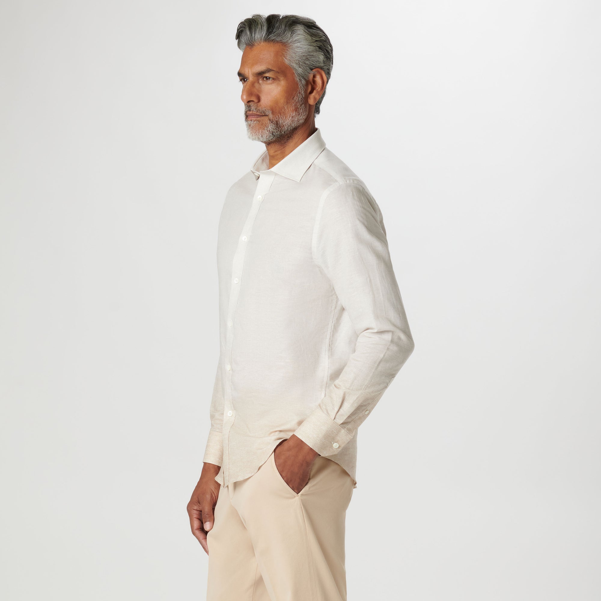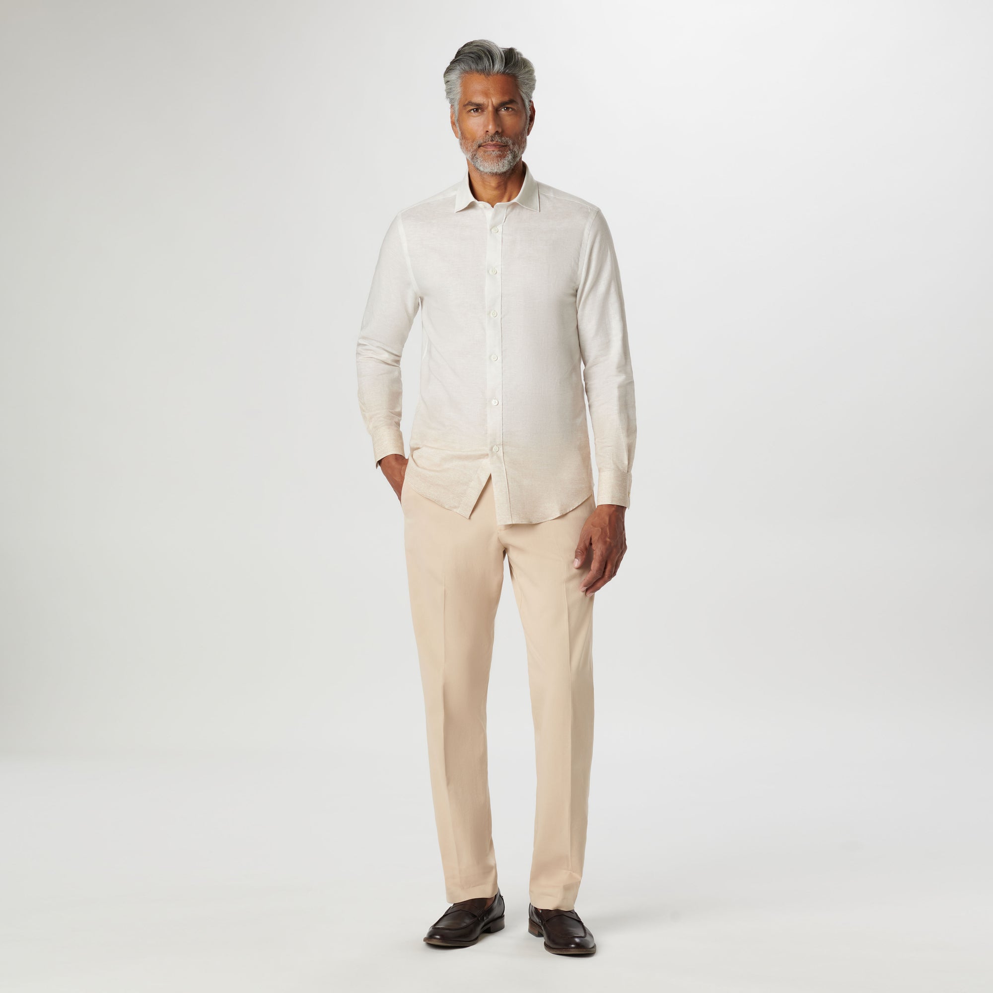 The Axel long-sleeved shirt is crafted from premium linen-cotton blend and features an ombre print, a spread collar, adjustable notched cuffs, and a curved hem.
