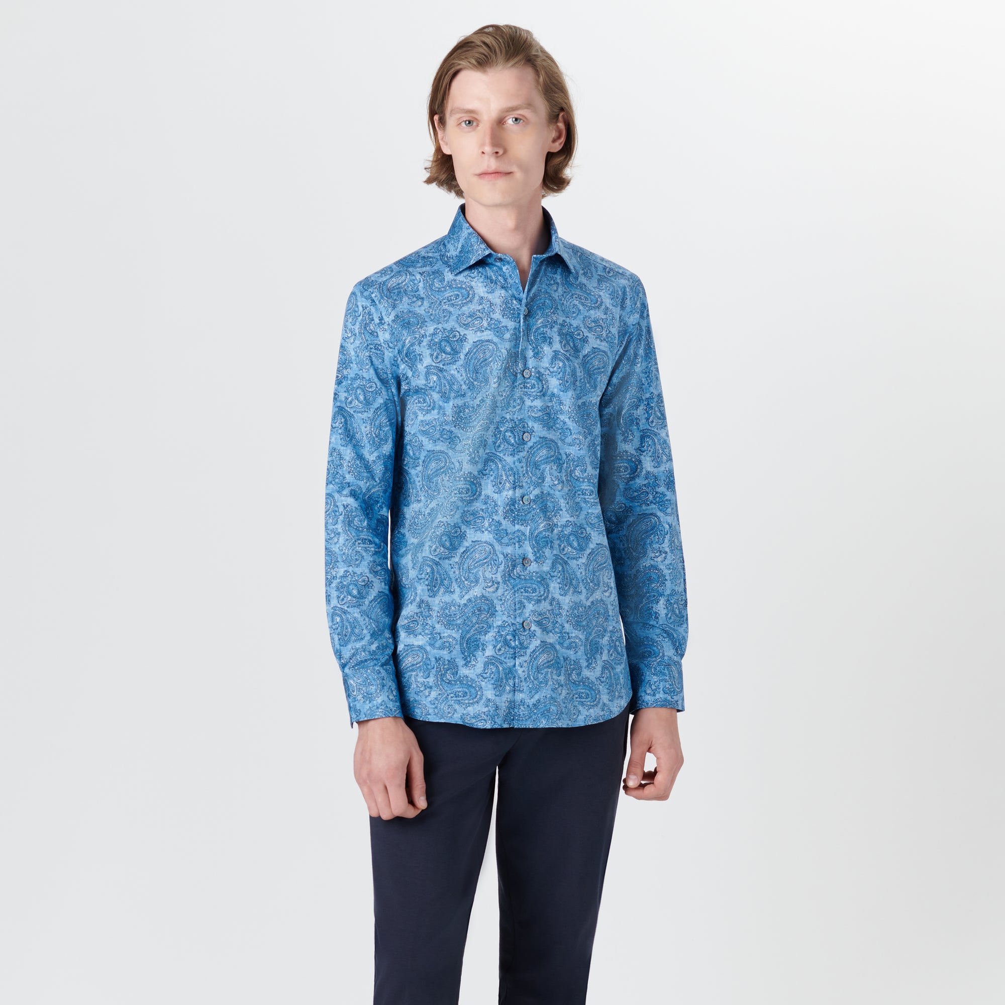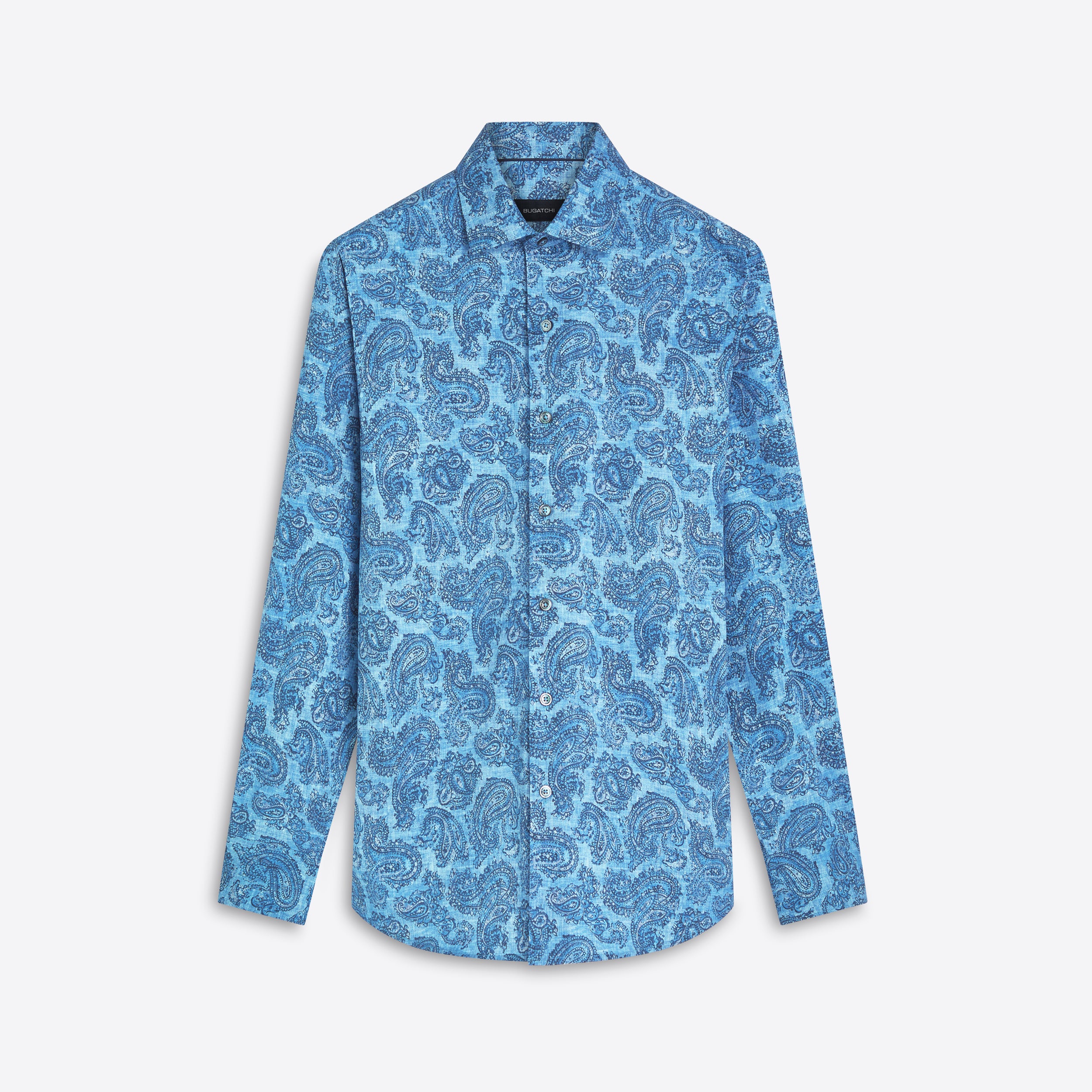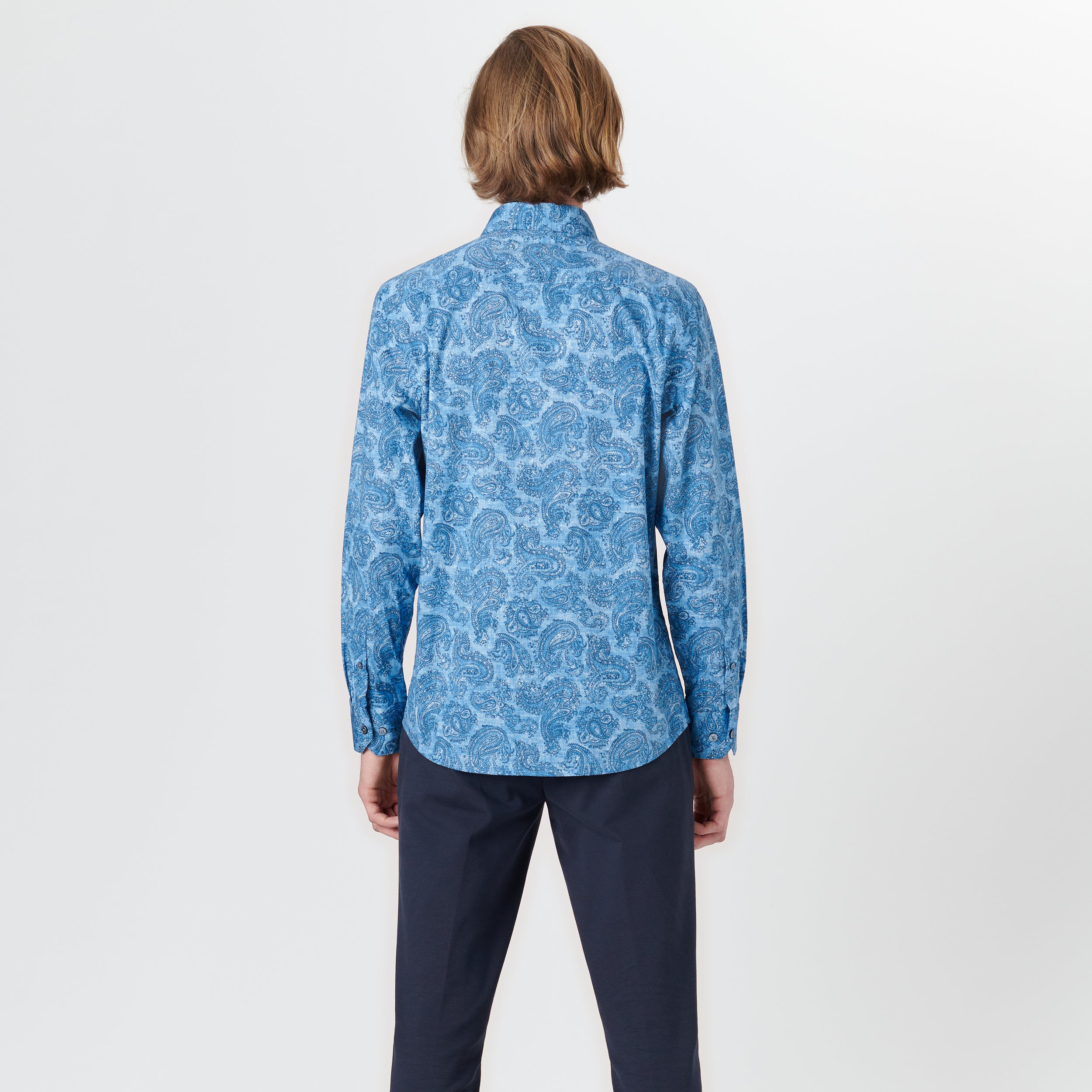 AXEL long-sleeved shirt in paisley print COMFORT STRETCH cotton with spread collar, adjustable notched cuffs and curved hem.
