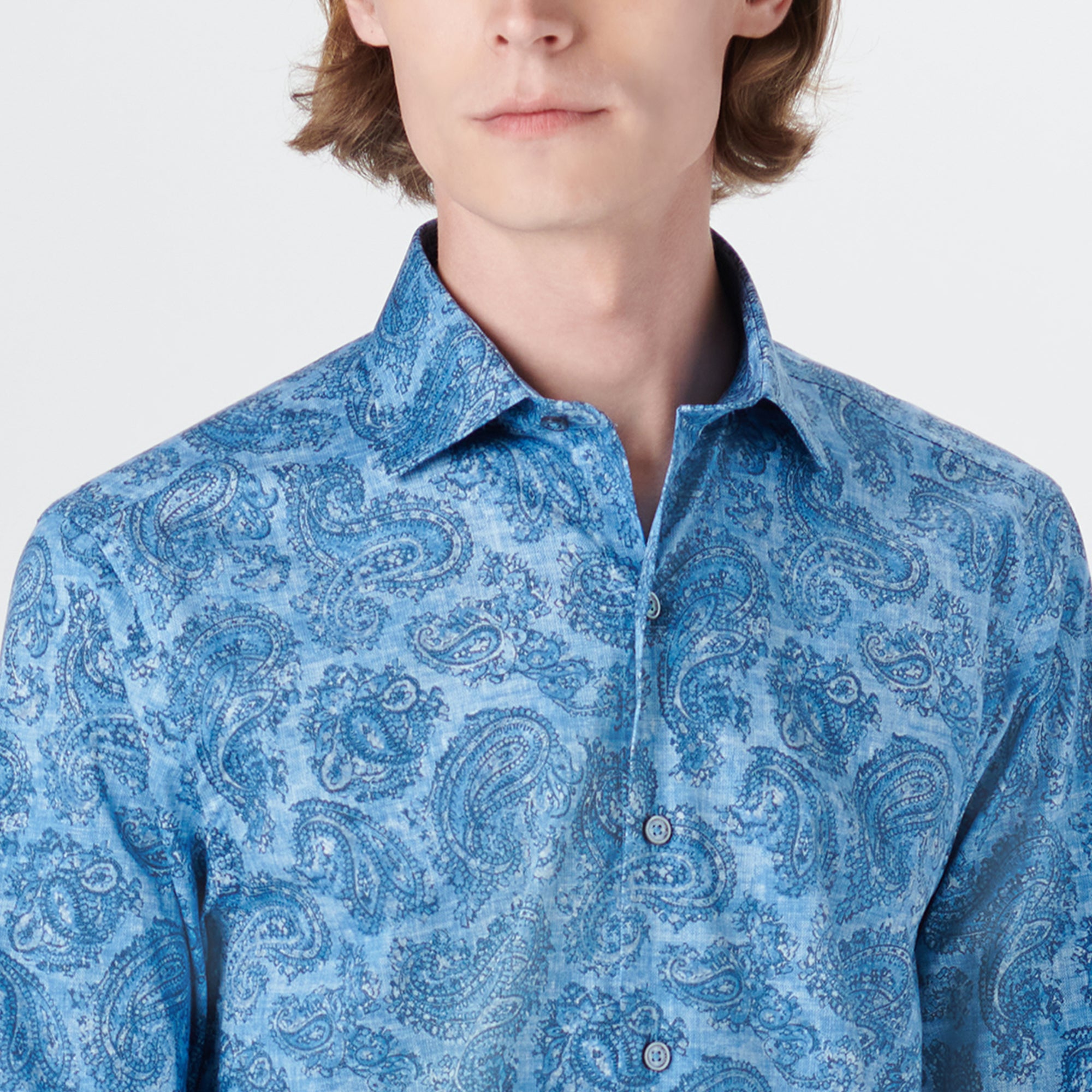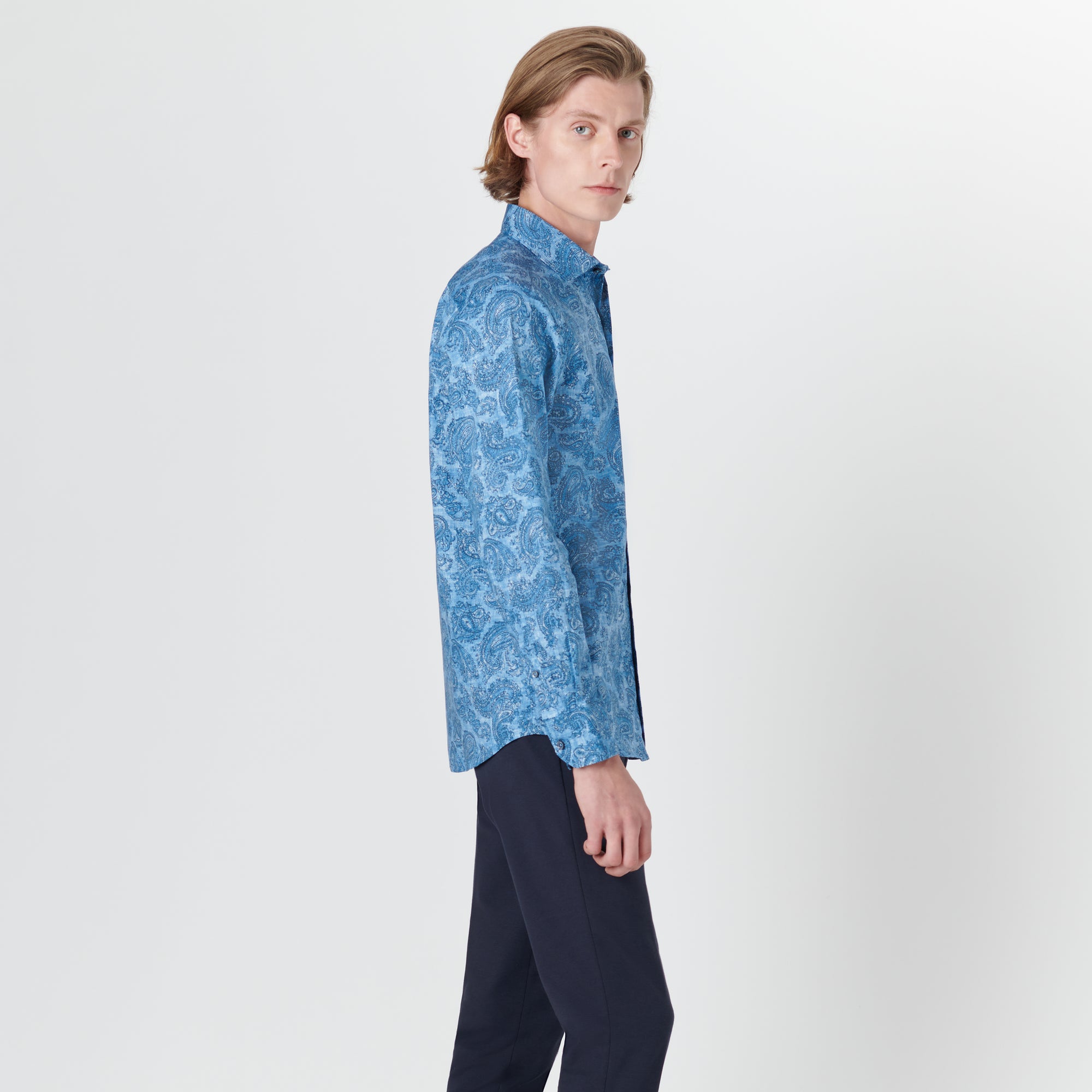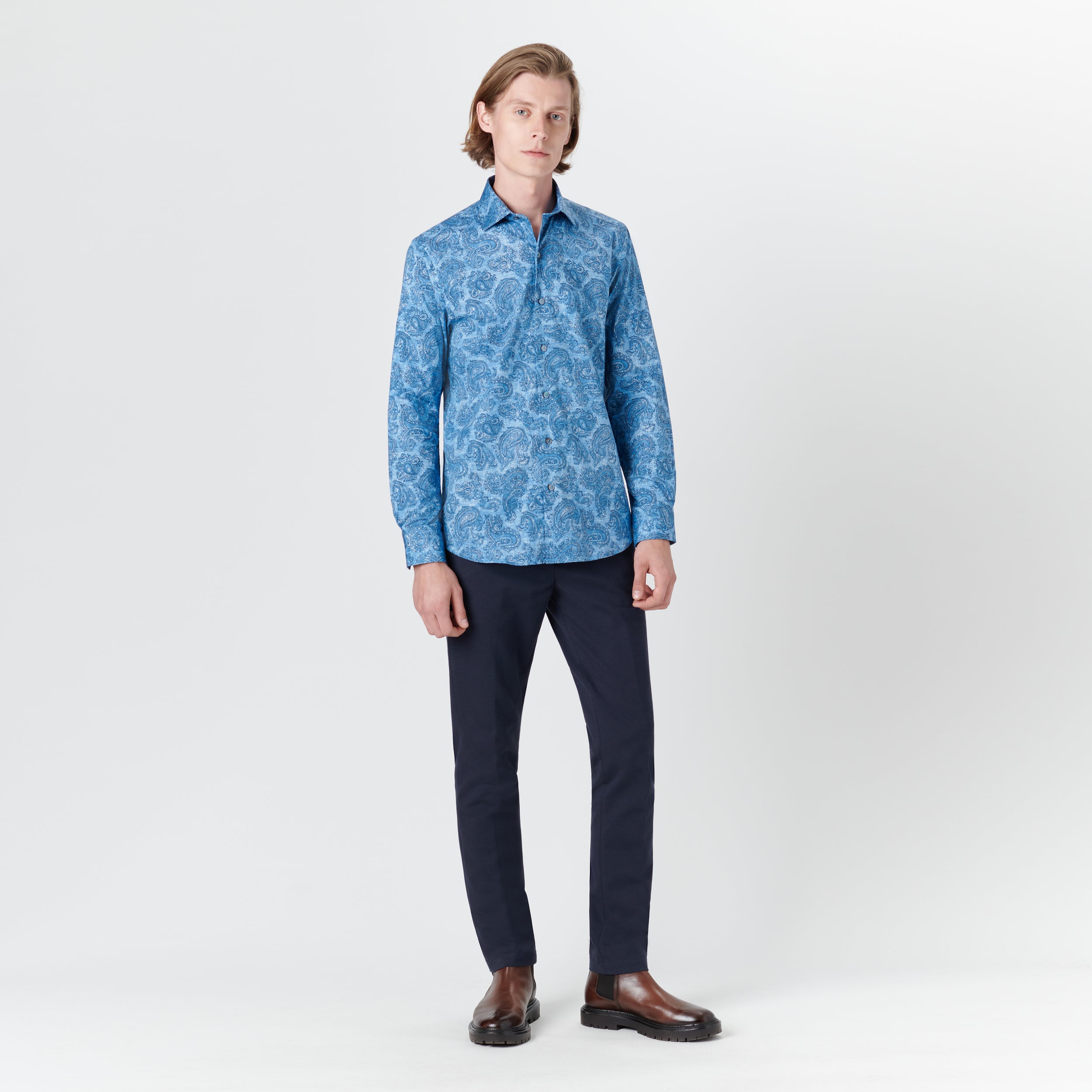 AXEL long-sleeved shirt in paisley print COMFORT STRETCH cotton with spread collar, adjustable notched cuffs and curved hem.