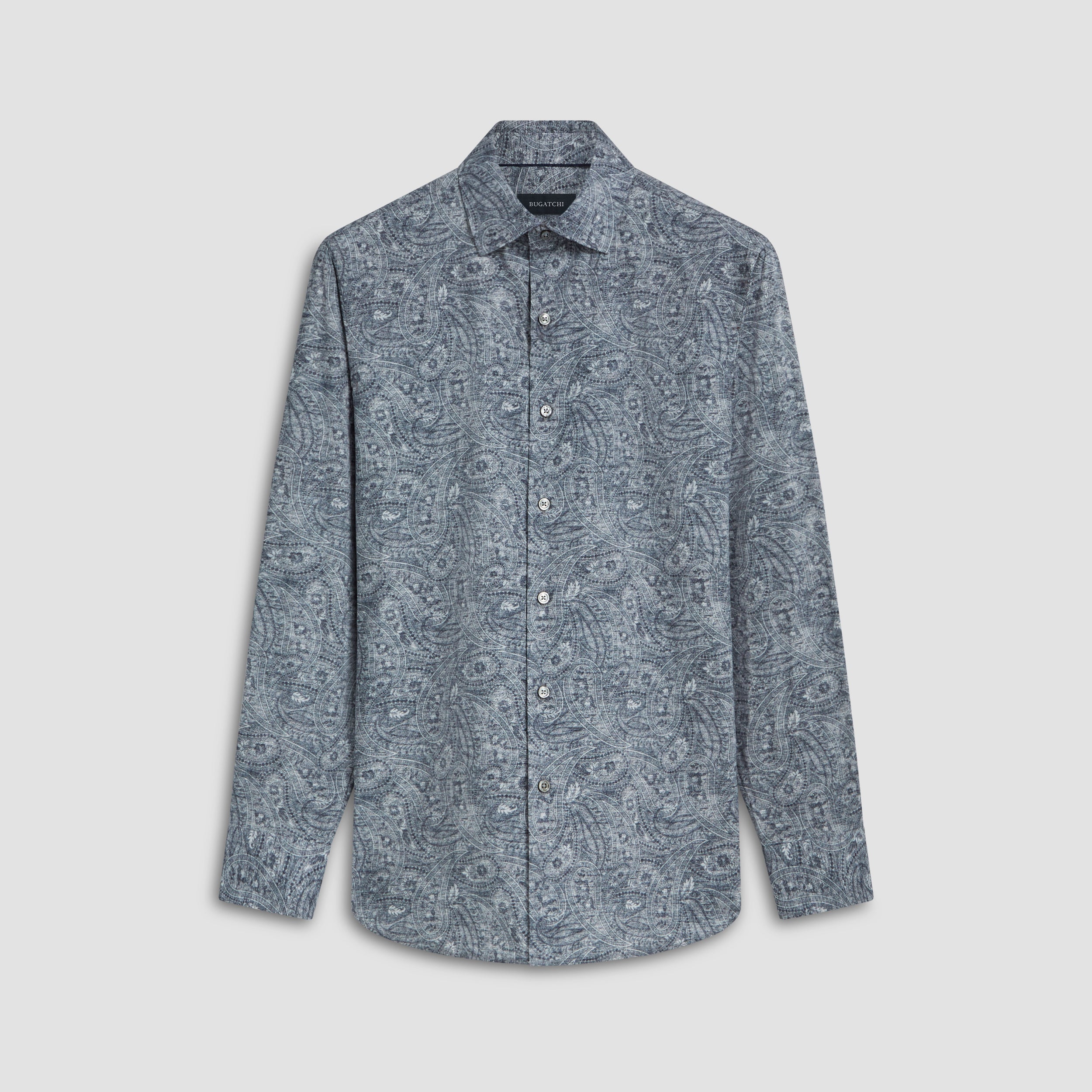 Axel long-sleeved shirt in paisley print COMFORT STRETCH cotton with spread collar, adjustable notched cuffs and curved hem.