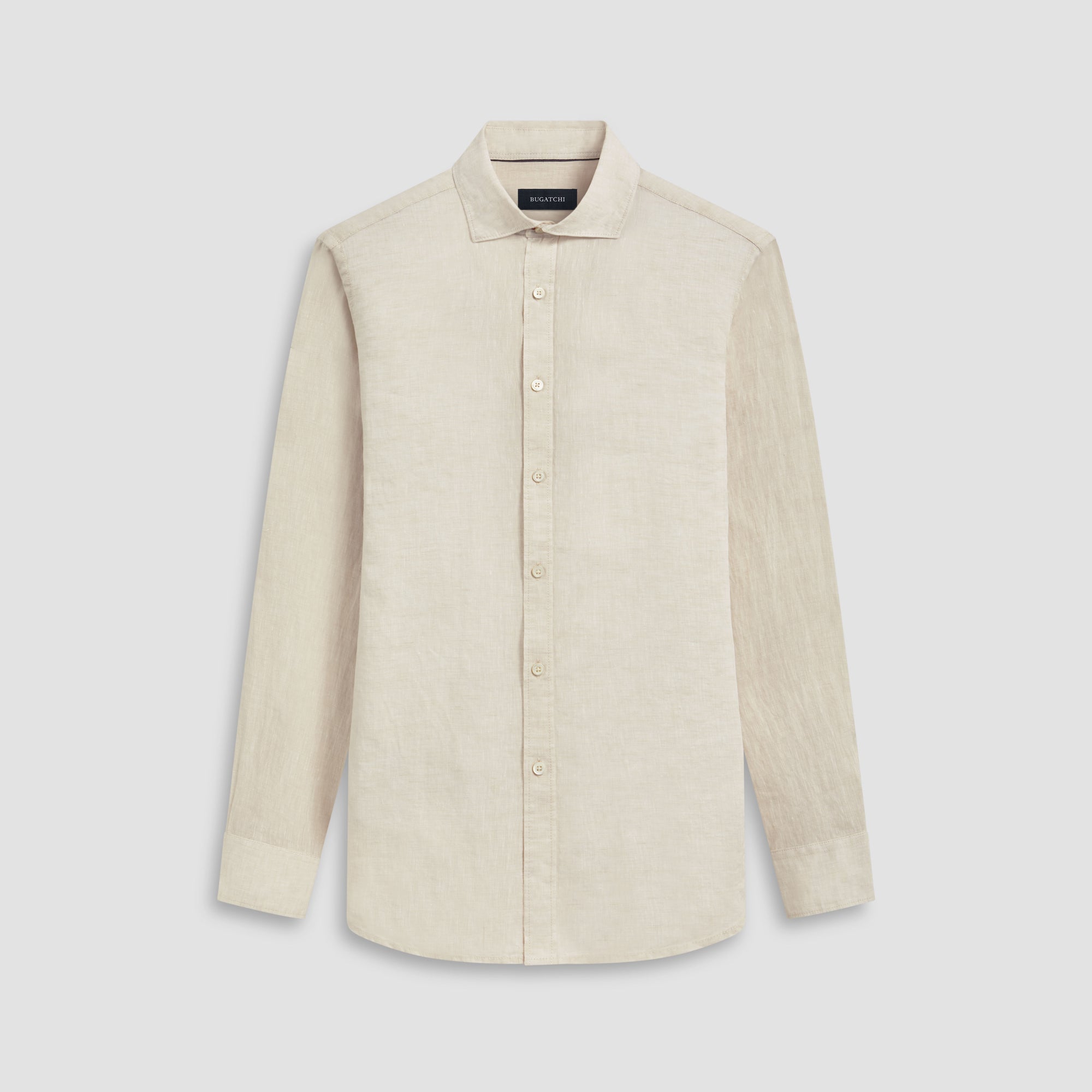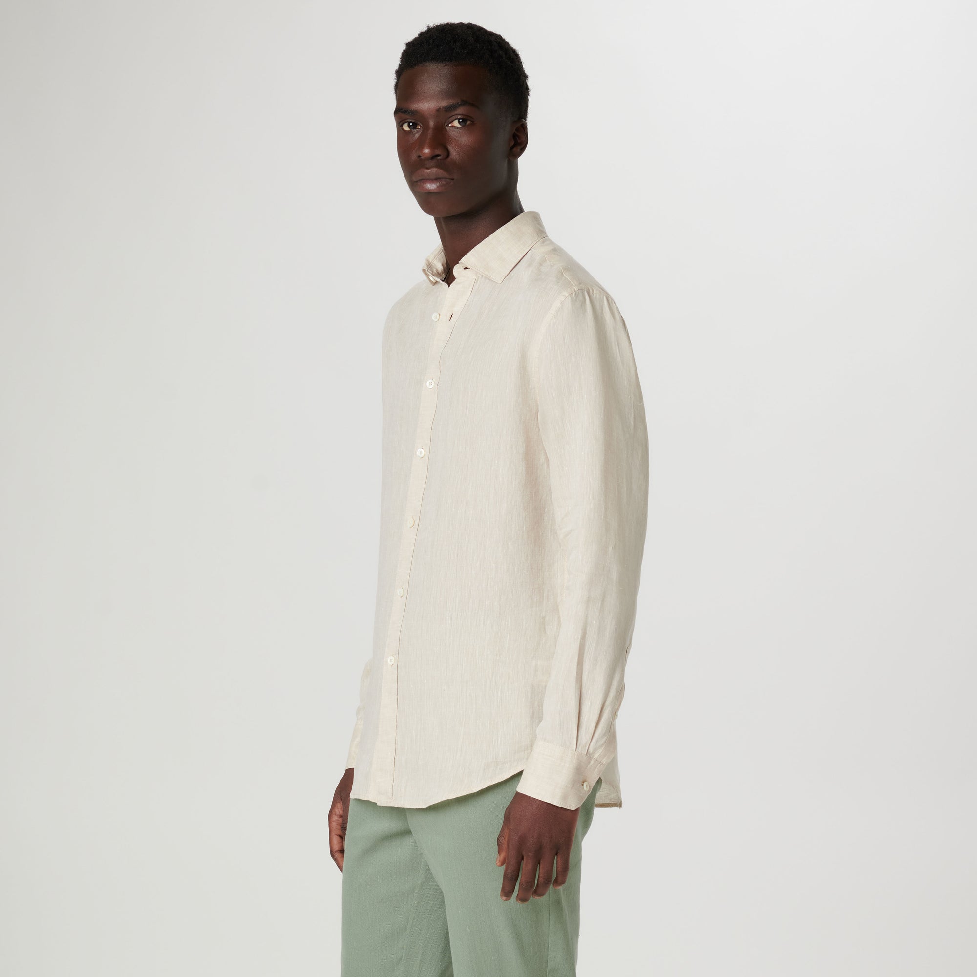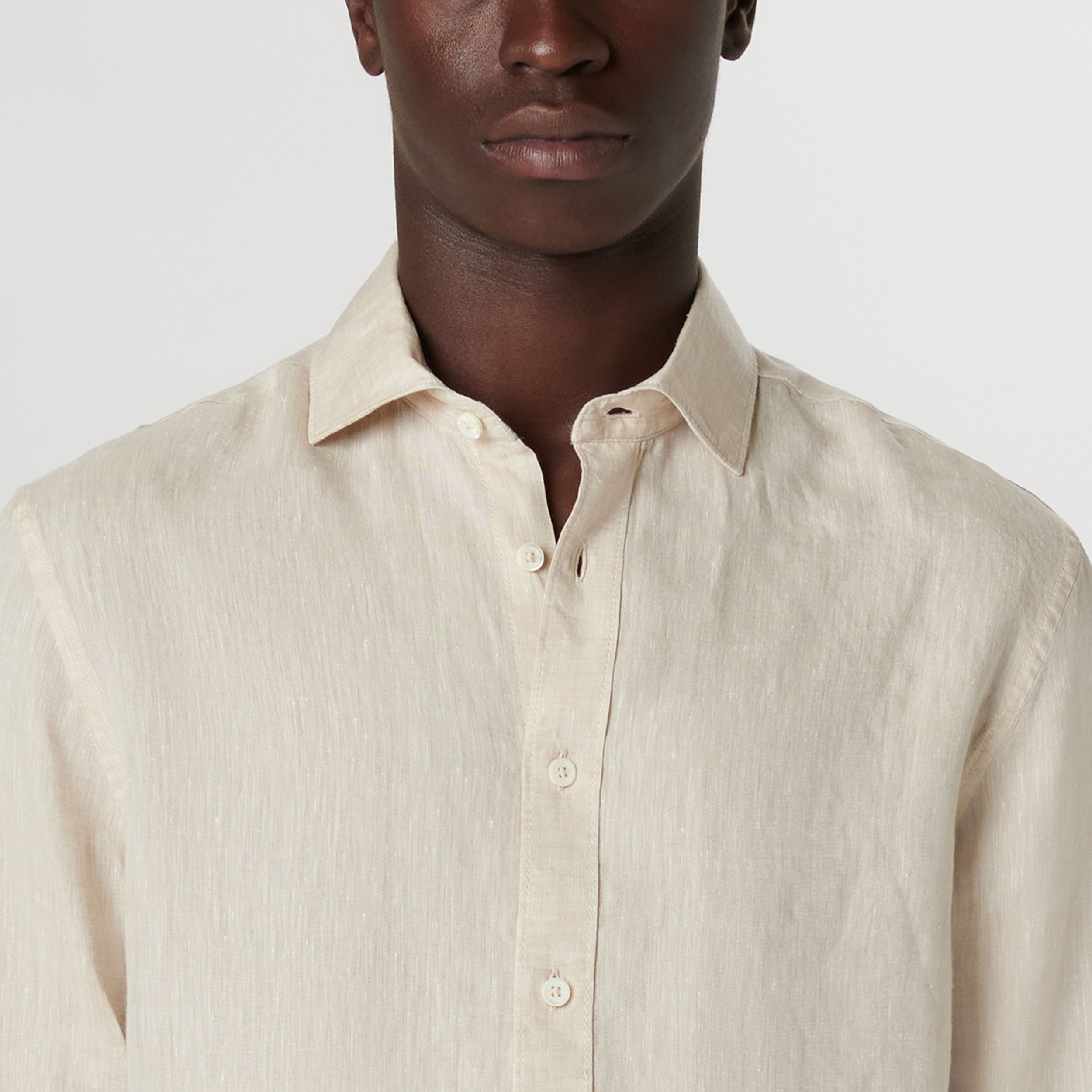 The Axel long-sleeved shirt in 100% linen defines elegance and comfort. Crafted from lightweight, breathable linen, this shirt features a spread collar, adjustable notched cuffs, mother-of-pearl buttons and a curved hem perfect for wearing tucked or untucked.