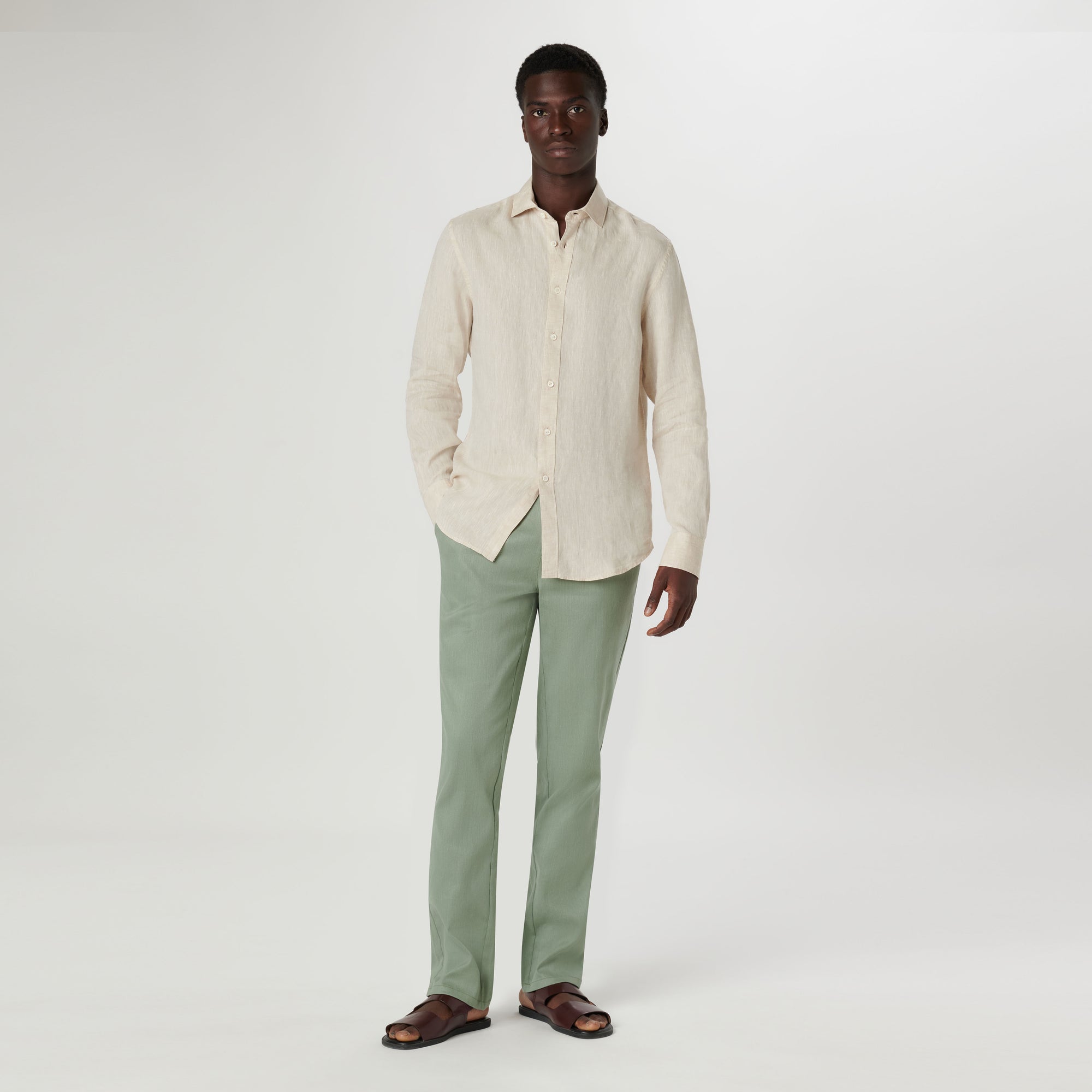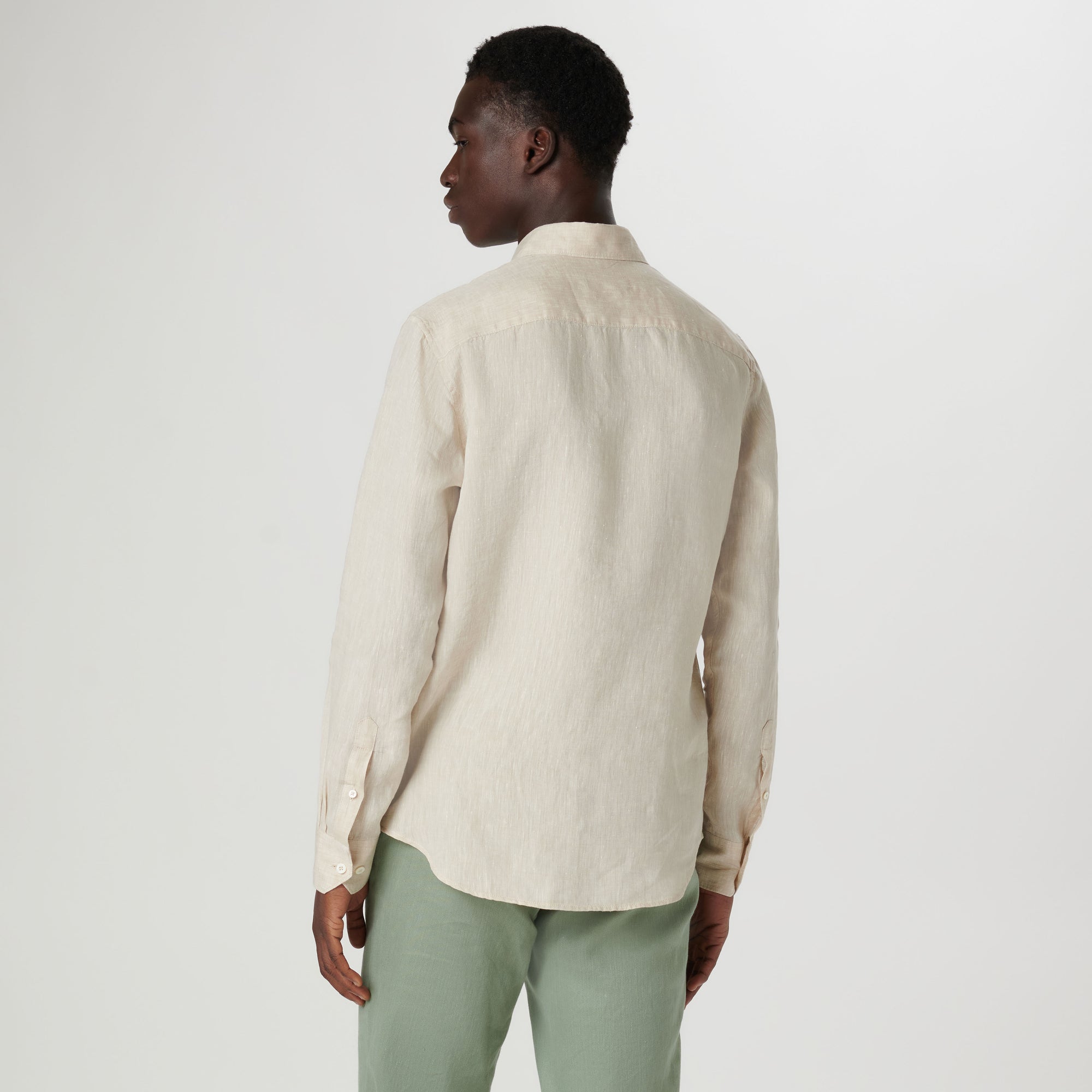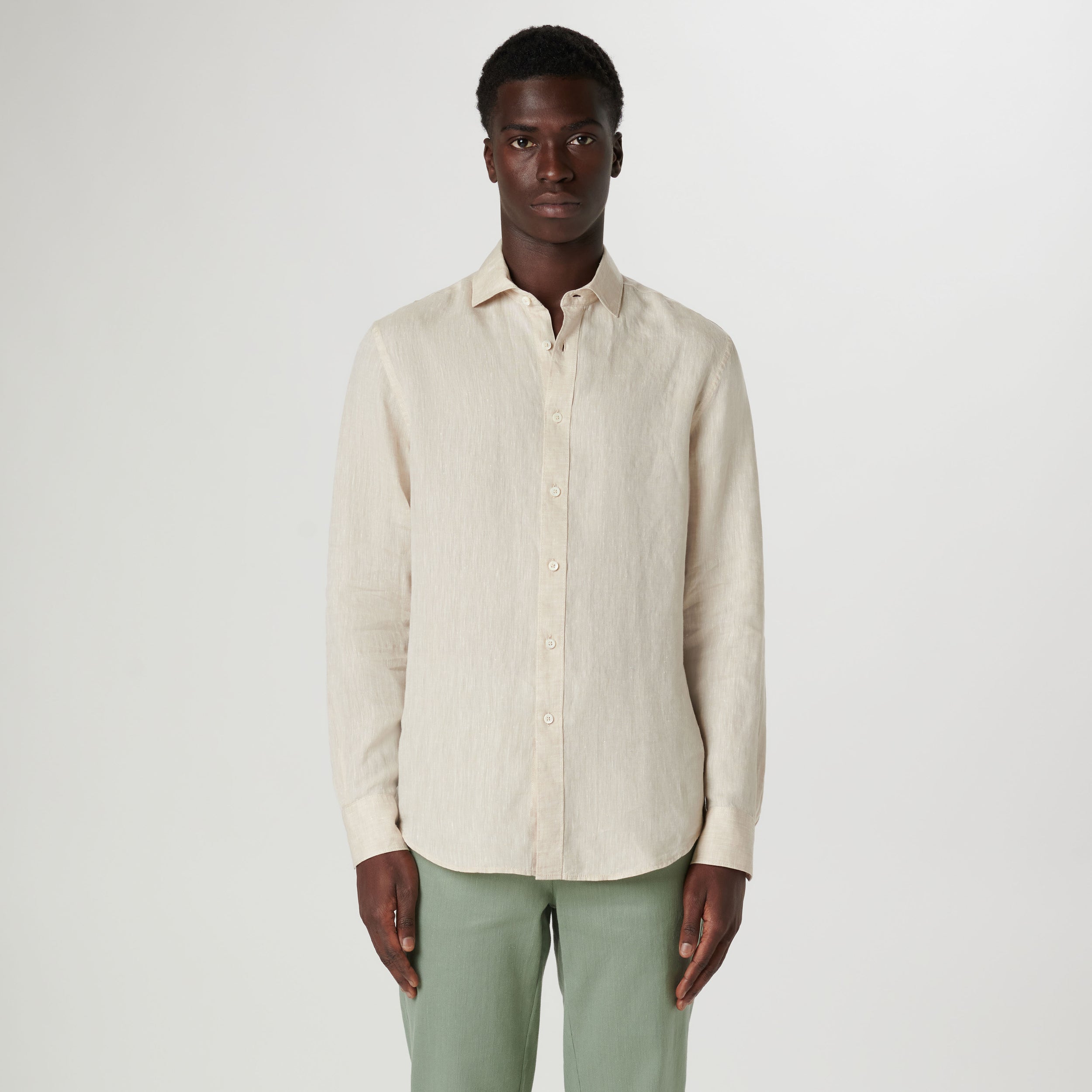 The Axel long-sleeved shirt in 100% linen defines elegance and comfort. Crafted from lightweight, breathable linen, this shirt features a spread collar, adjustable notched cuffs, mother-of-pearl buttons and a curved hem perfect for wearing tucked or untucked.