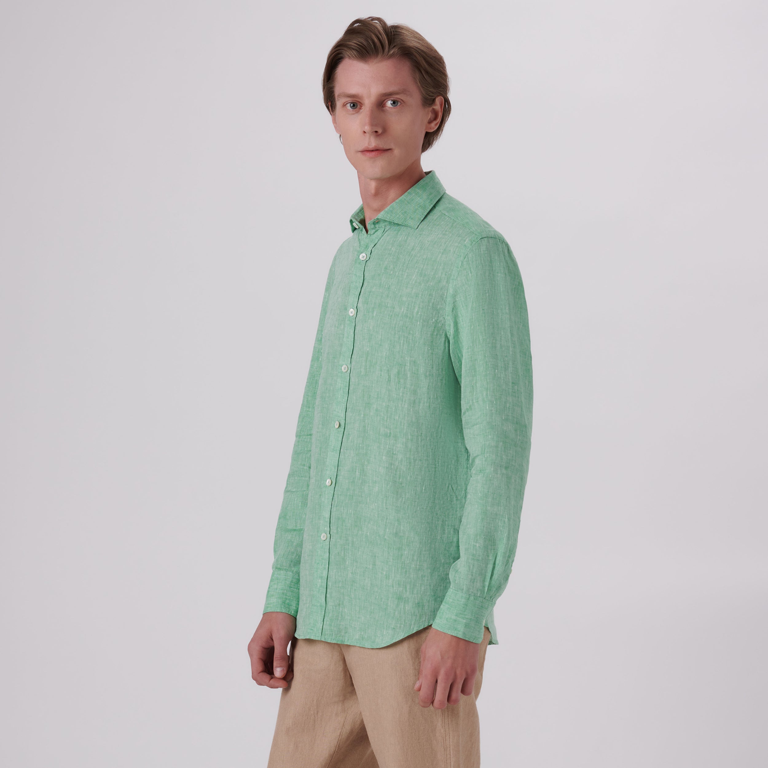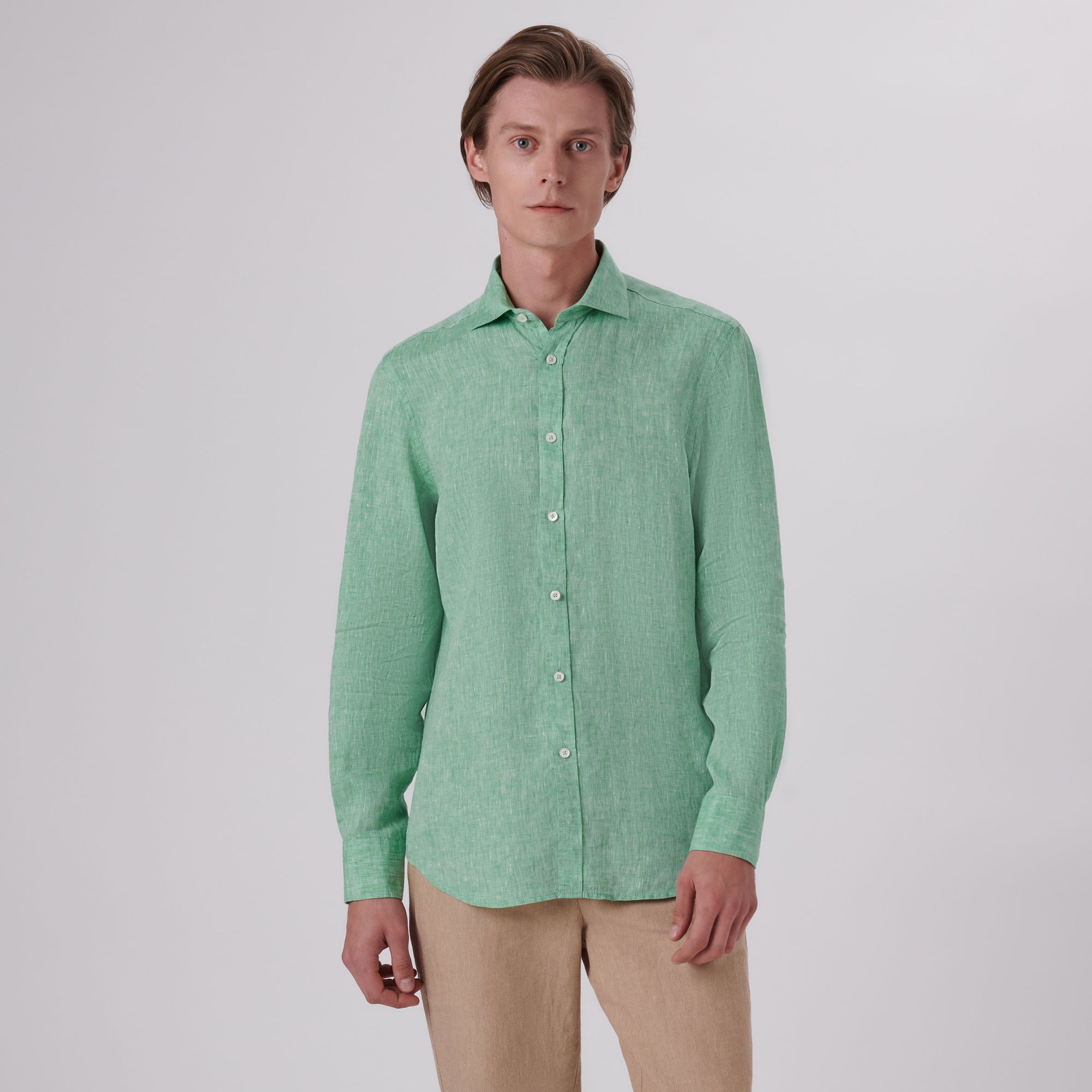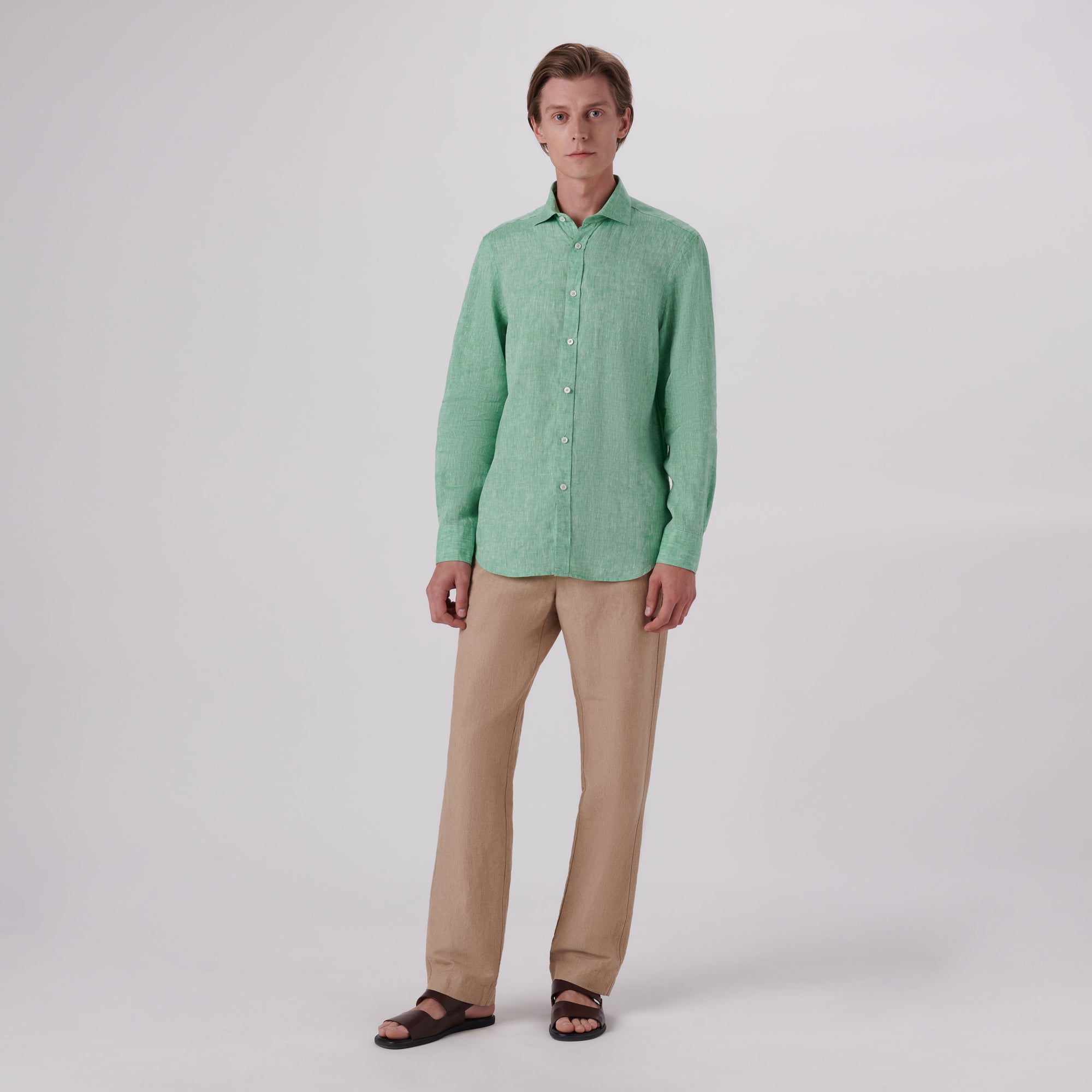 The Axel long-sleeved shirt in 100% linen defines elegance and comfort. Crafted from lightweight, breathable linen, this shirt features a spread collar, adjustable notched cuffs, mother-of-pearl buttons and a curved hem perfect for wearing tucked or untucked.