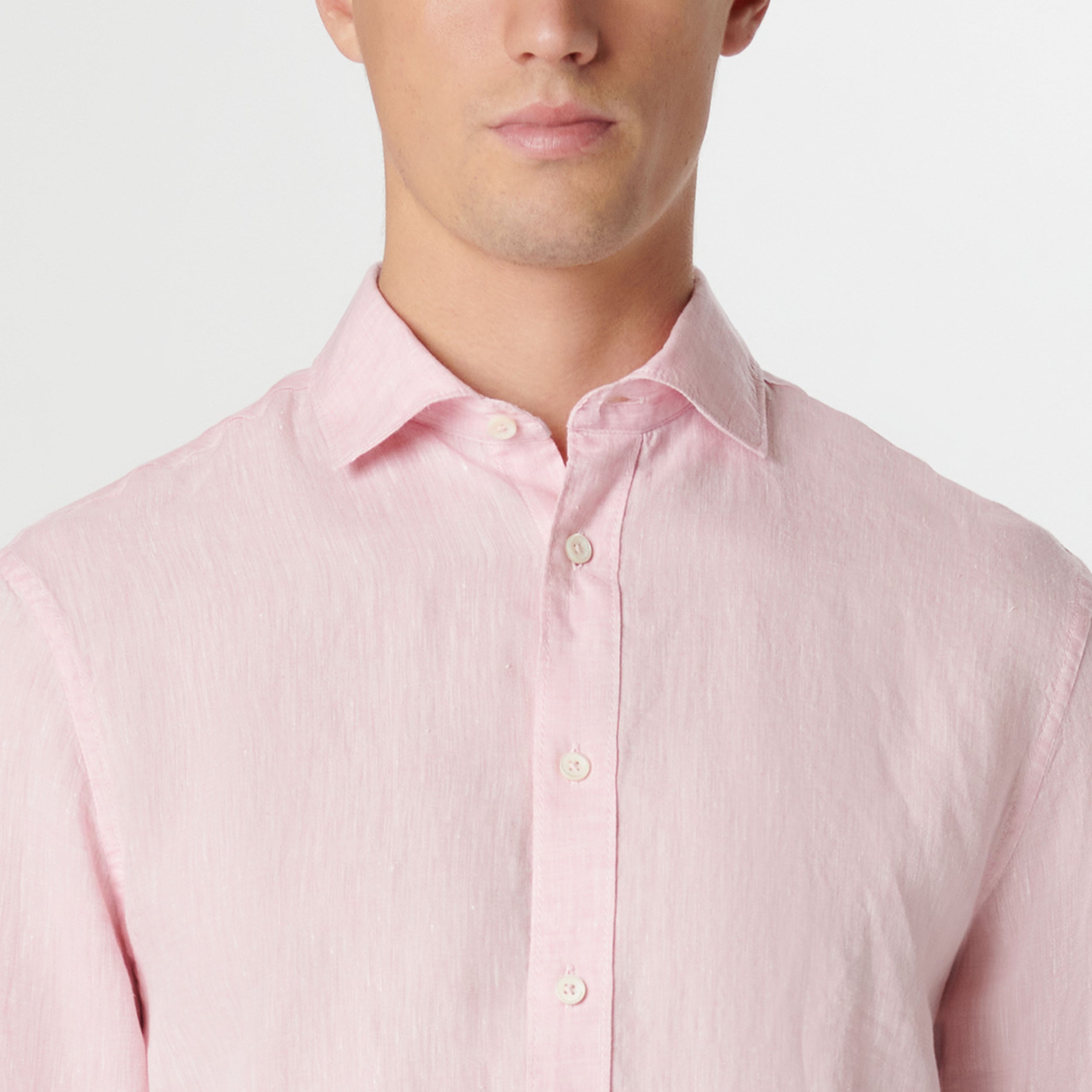 The Axel long-sleeved shirt in 100% linen defines elegance and comfort. Crafted from lightweight, breathable linen, this shirt features a spread collar, adjustable notched cuffs, mother-of-pearl buttons and a curved hem perfect for wearing tucked or untucked.