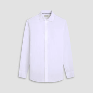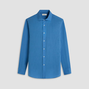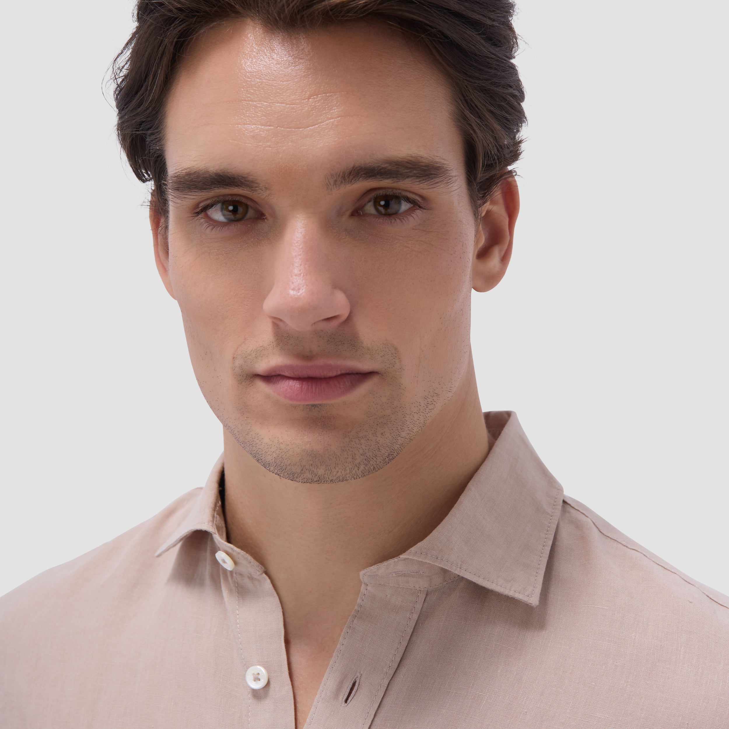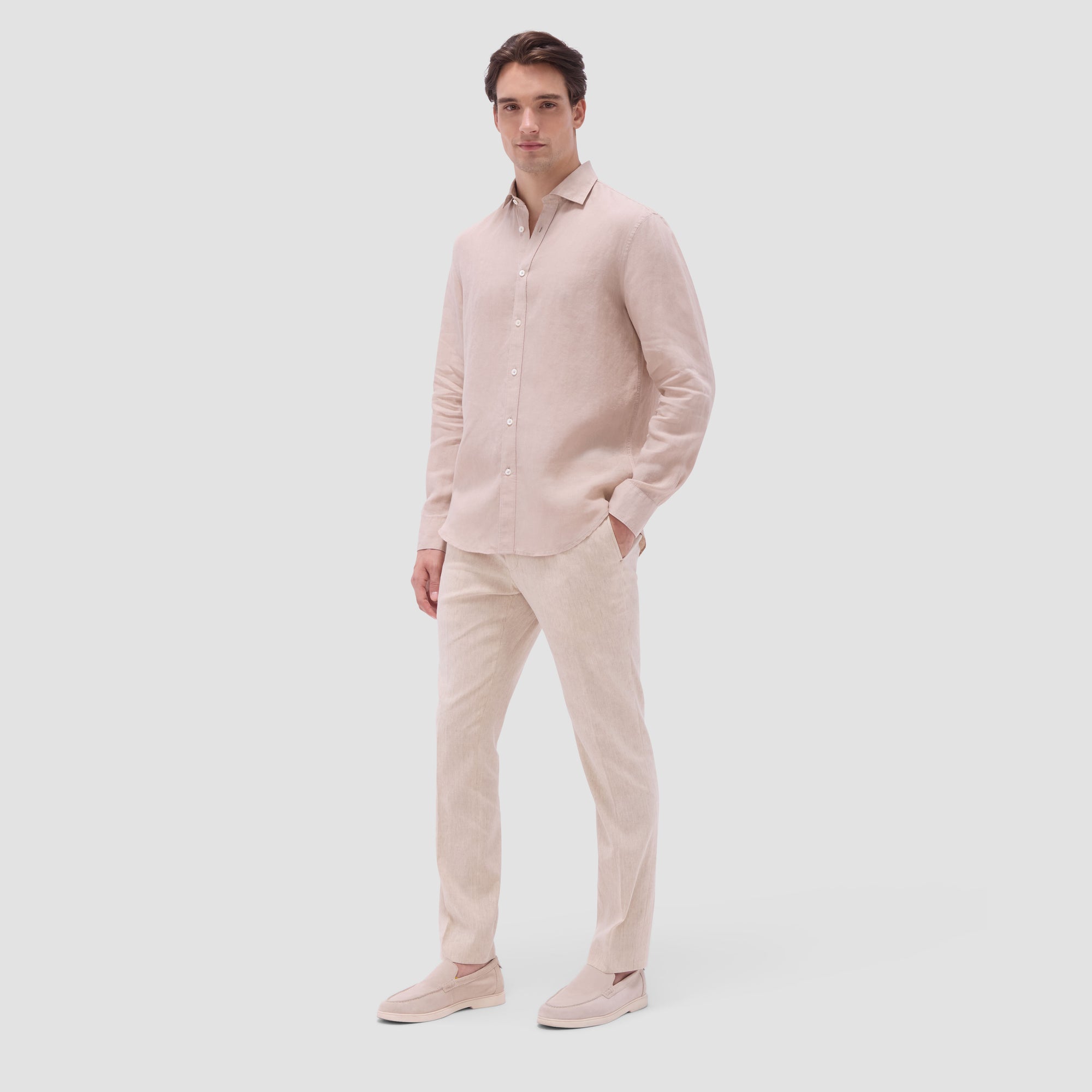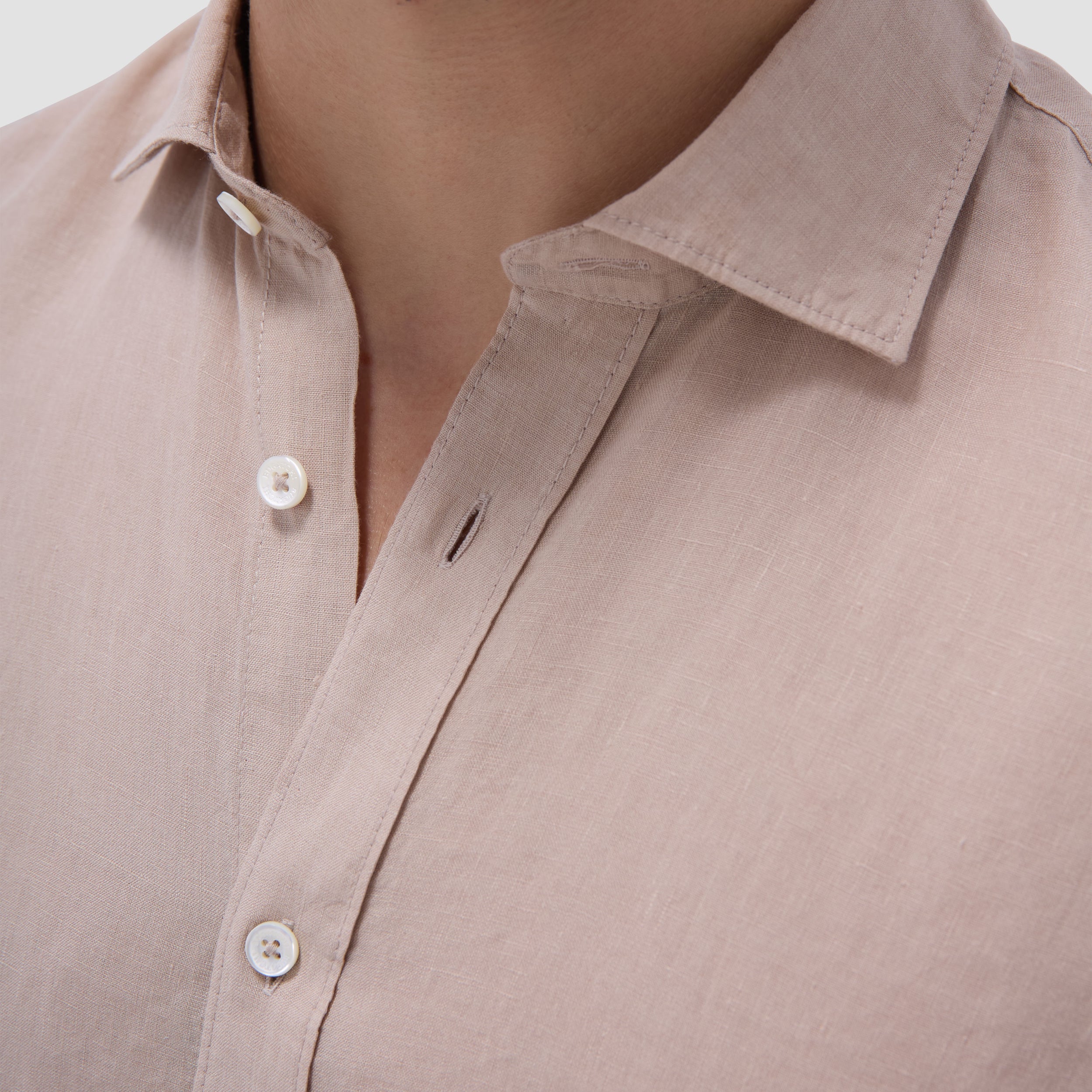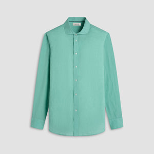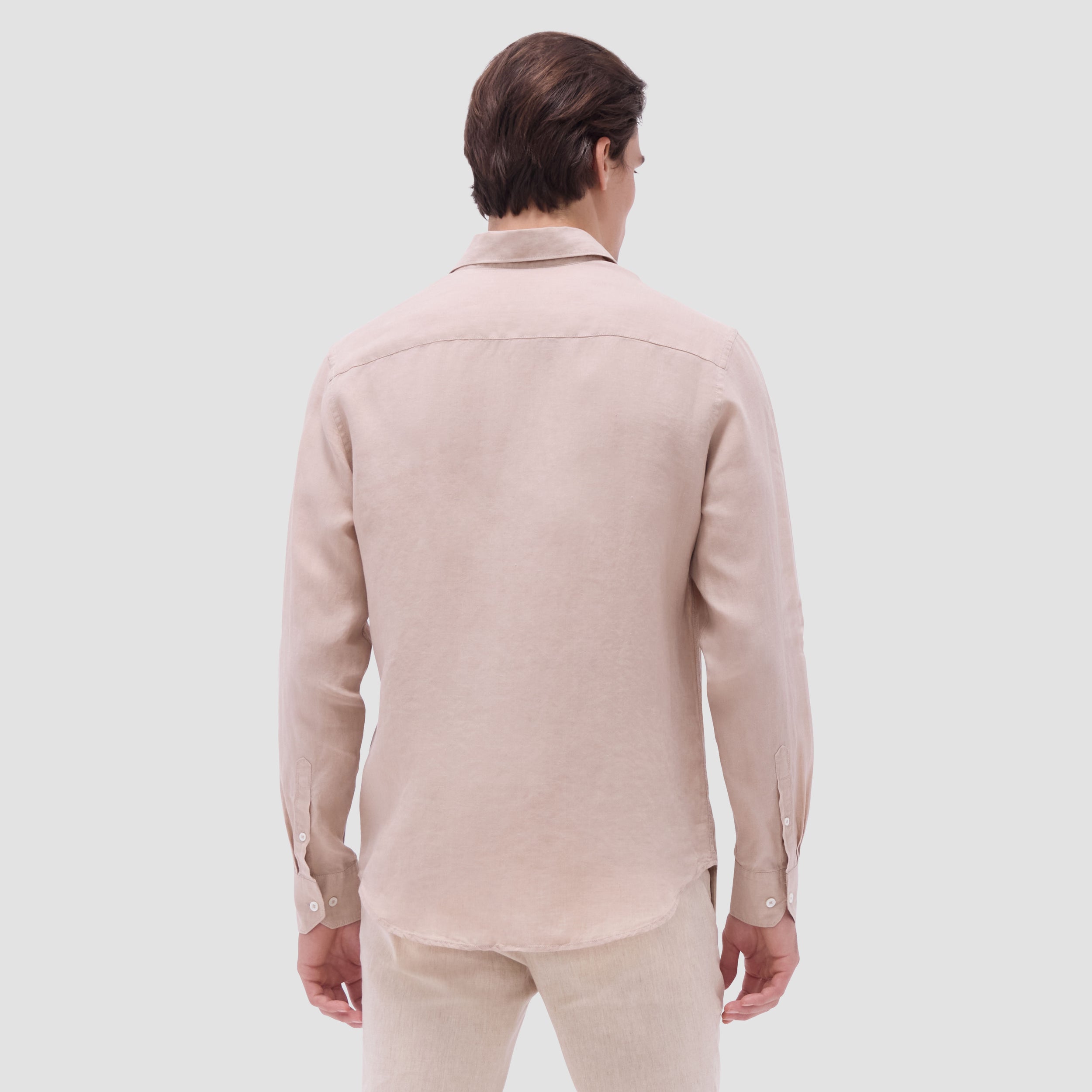 The Axel long-sleeve shirt in solid color is crafted from 100% linen and features a spread collar, mother-of-pearl buttons, a curved hem that can be worn tucked or untucked, and notched cuffs adjustable for a custom fit-wear them snug or loose. The natural texture of linen adds a laid-back, effortless charm to any outfit.