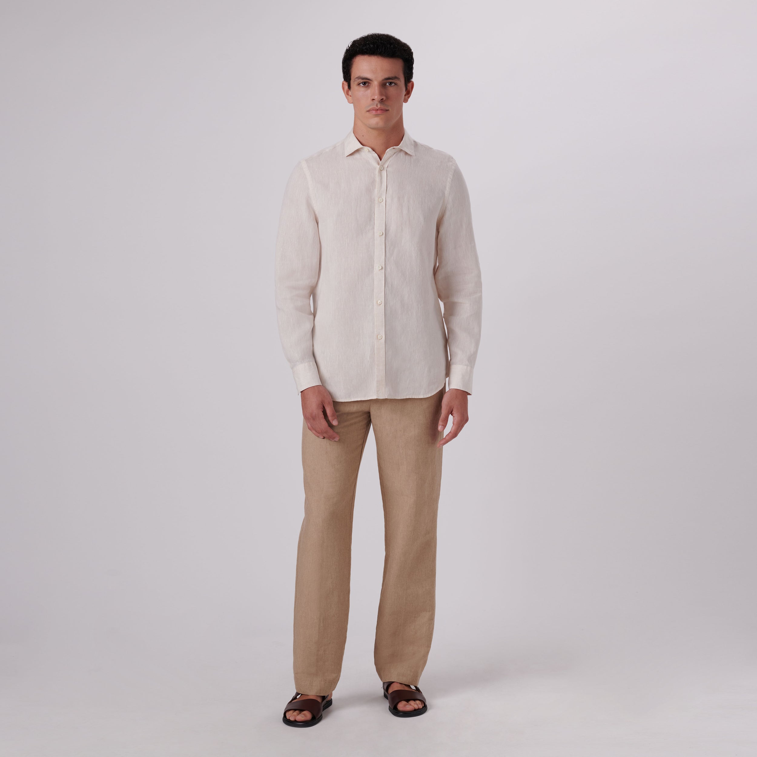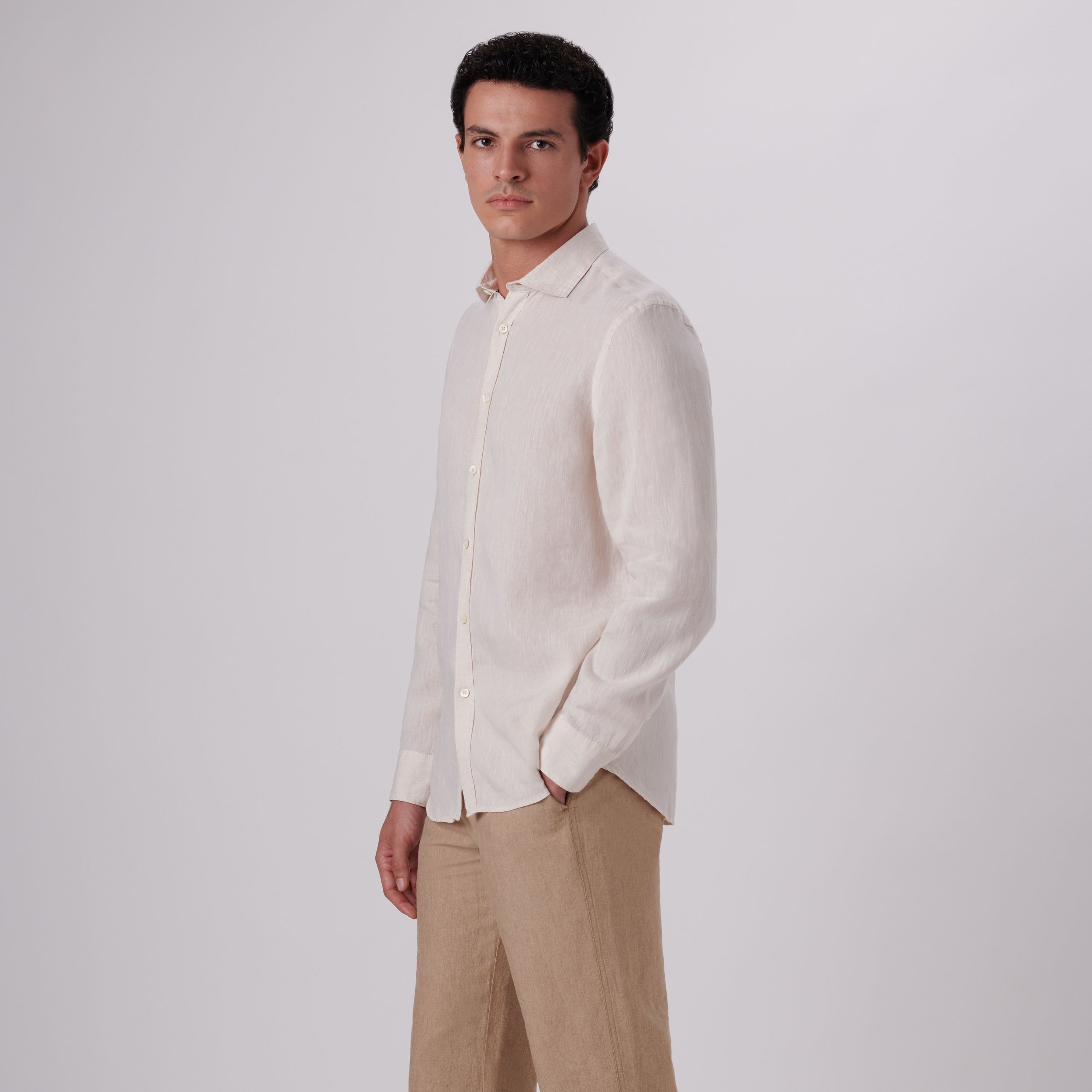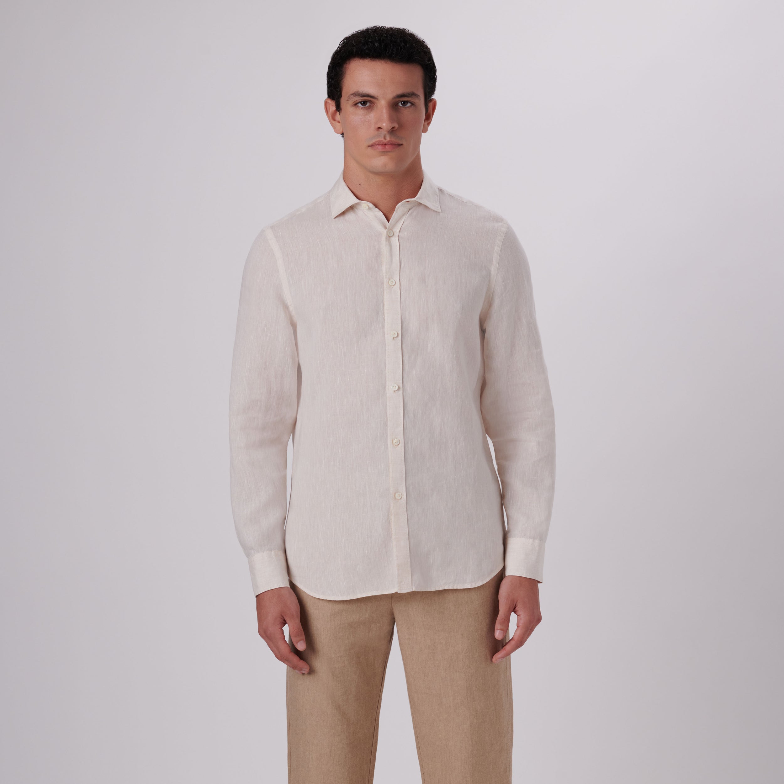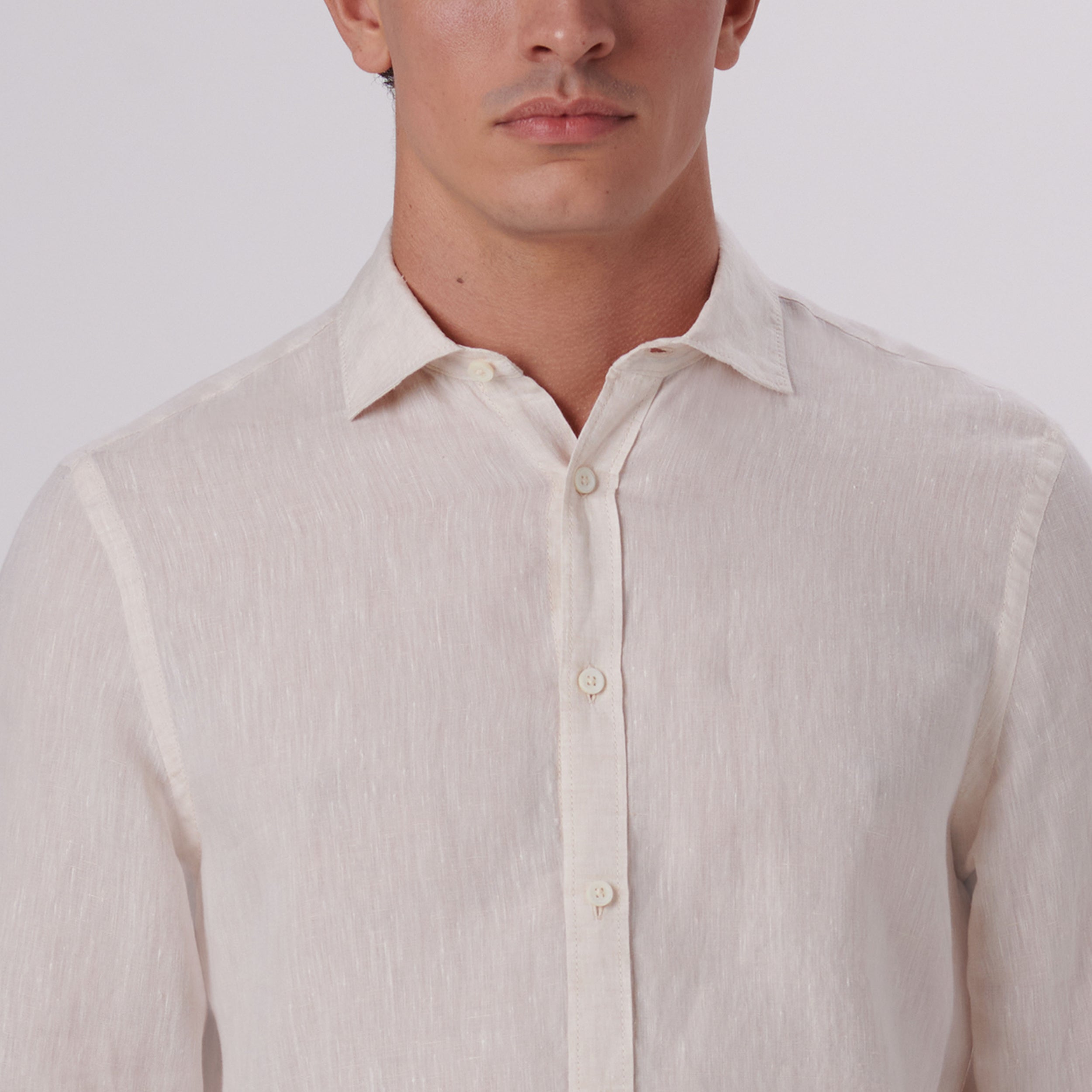 Axel solid long-sleeved shirt in 100% linen with spread collar, adjustable notched cuffs, genuine shell buttons and a curved hemline.