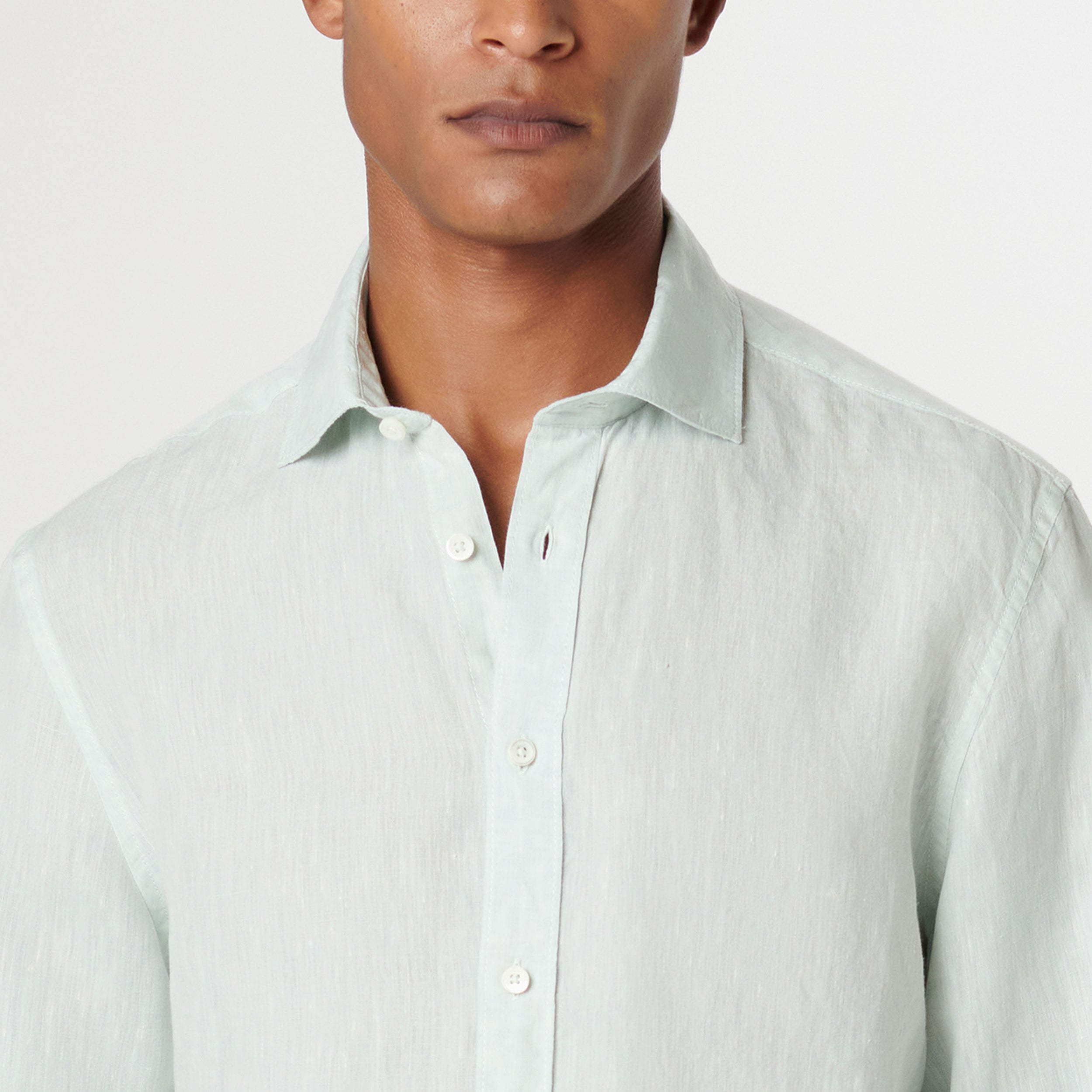 The Axel long-sleeved shirt in 100% linen defines elegance and comfort. Crafted from lightweight, breathable linen, this shirt features a spread collar, adjustable notched cuffs, mother-of-pearl buttons and a curved hem perfect for wearing tucked or untucked.