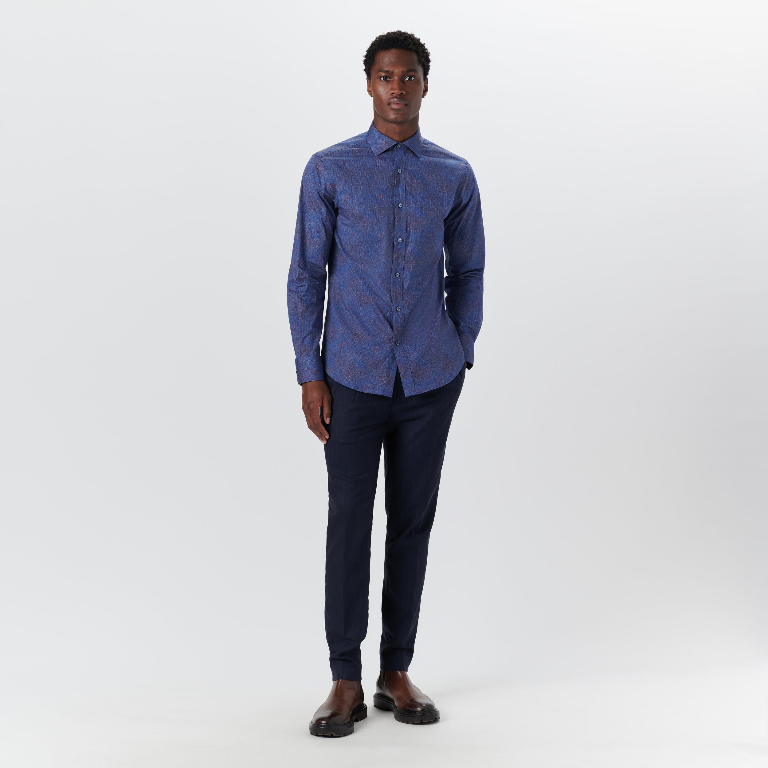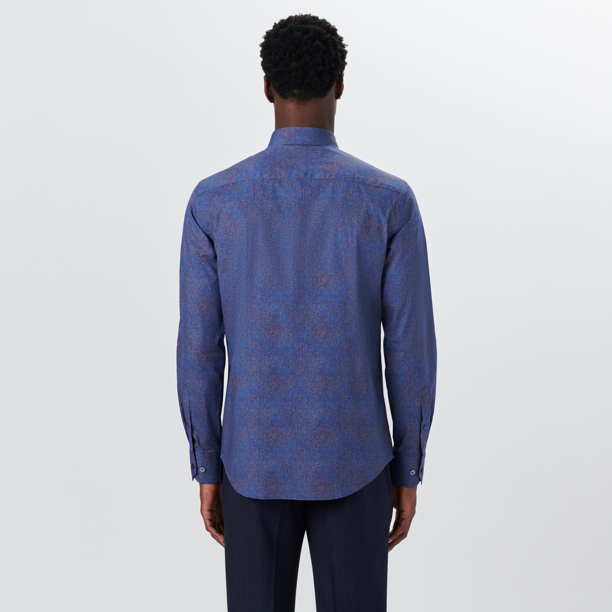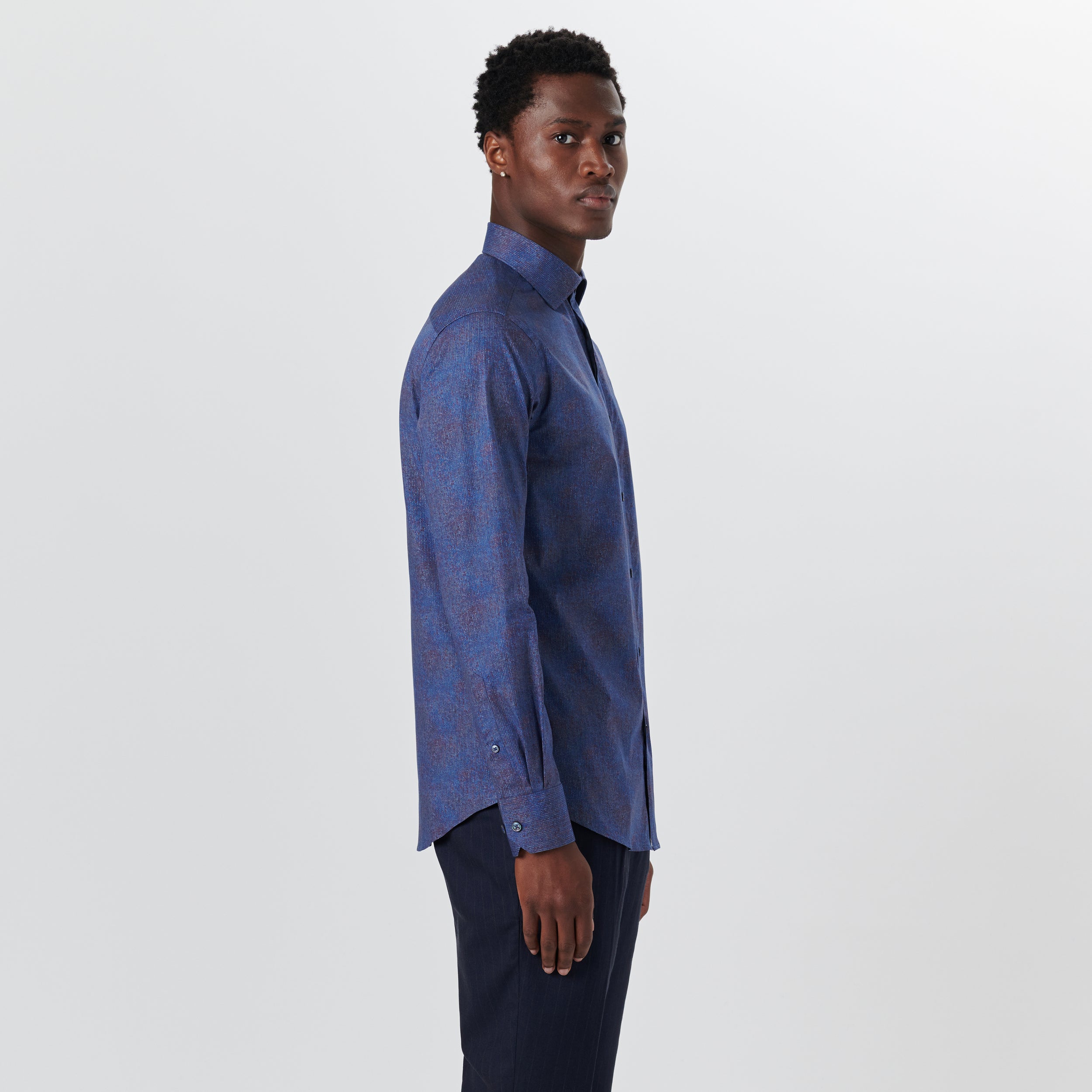 AXEL long-sleeved shirt in multicolor speckled herringbone COMFORT STRETCH cotton with spread collar, adjustable notched cuffs and curved hem.