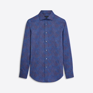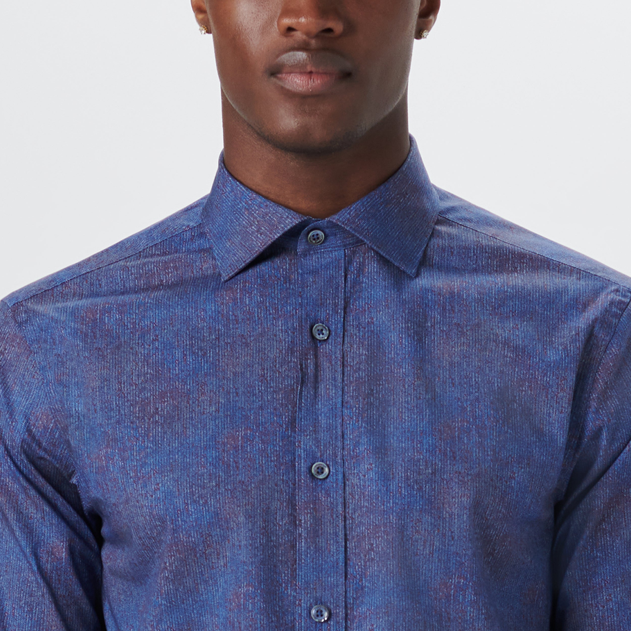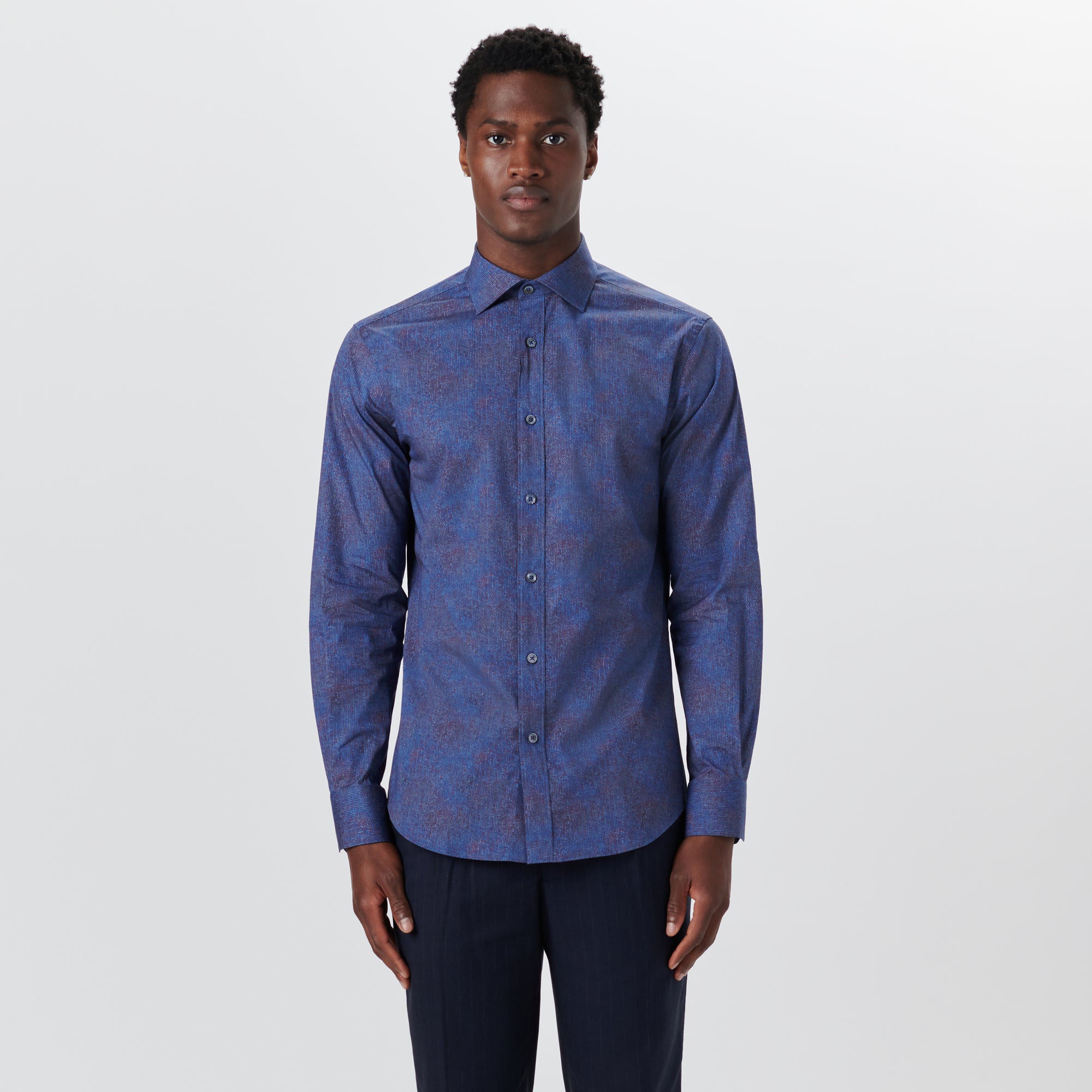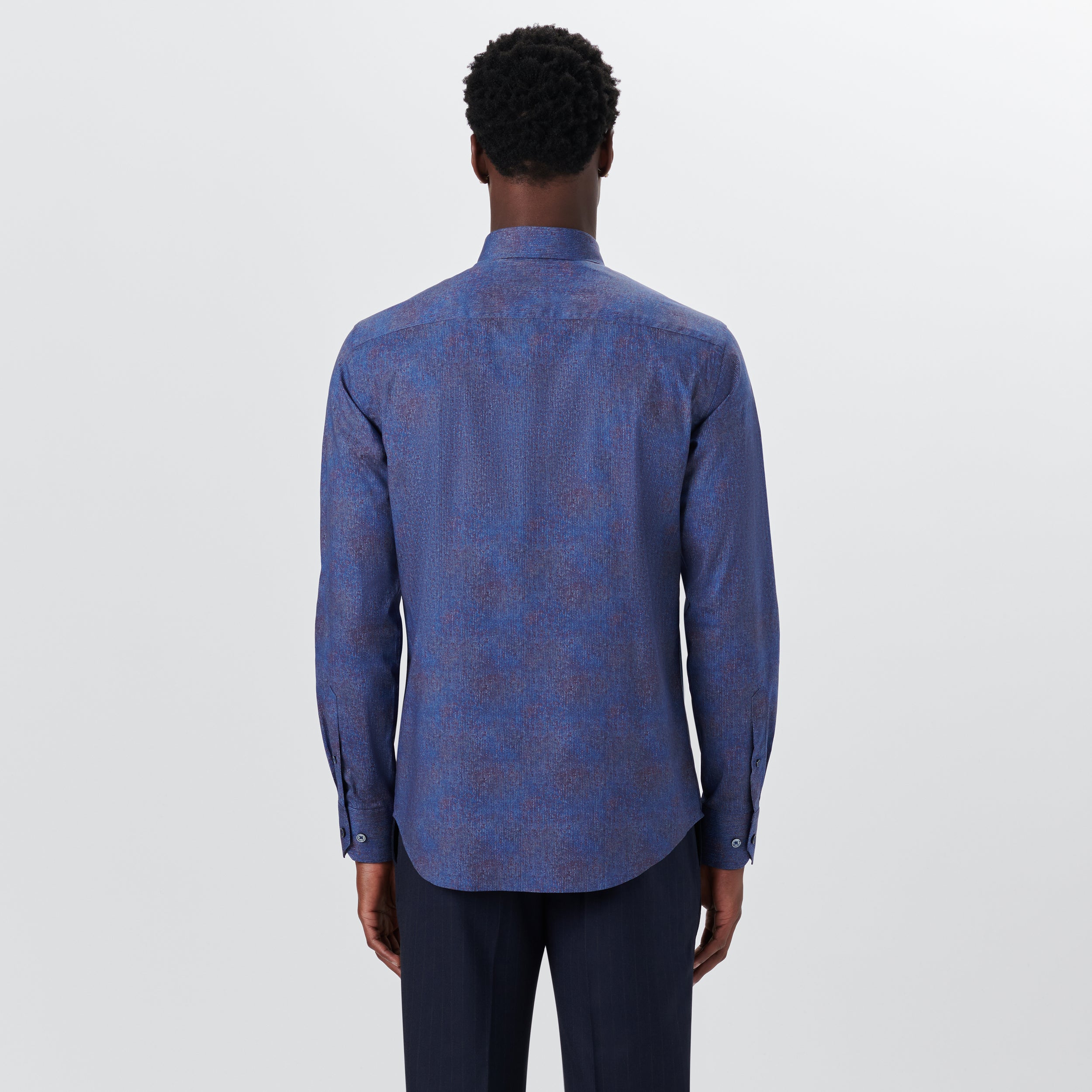 AXEL long-sleeved shirt in multicolor speckled herringbone COMFORT STRETCH cotton with spread collar, adjustable notched cuffs and curved hem.