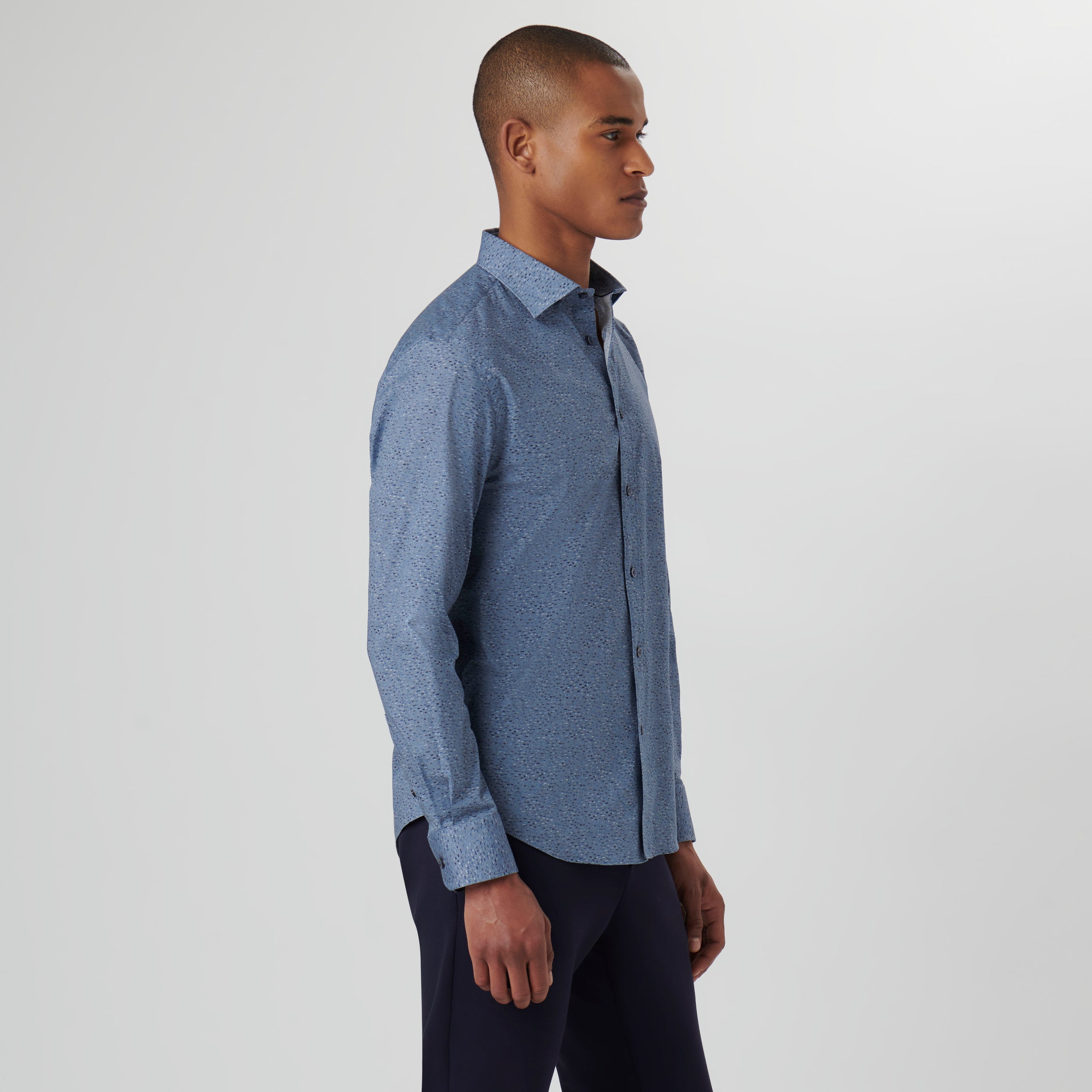 Axel long-sleeved shirt in stria print COMFORT STRETCH cotton with spread collar, adjustable notched cuffs and curved hem.