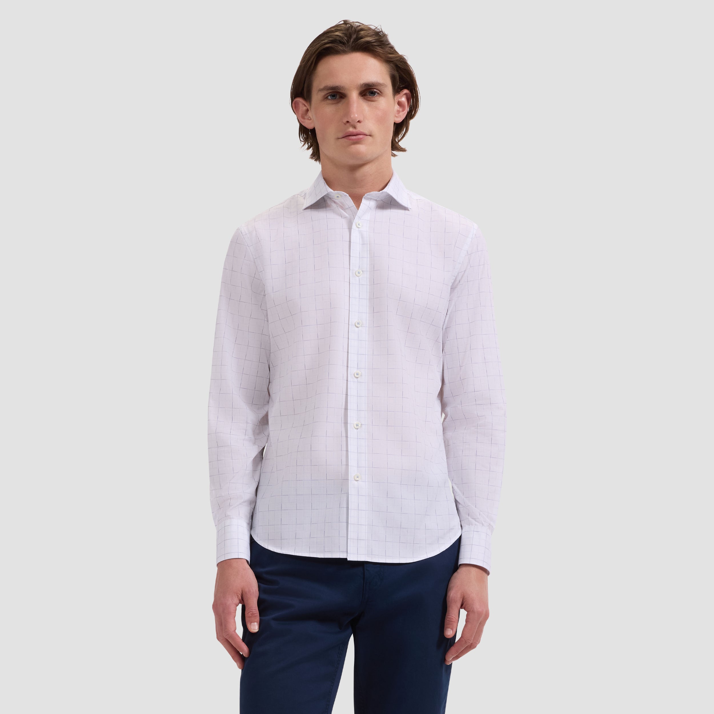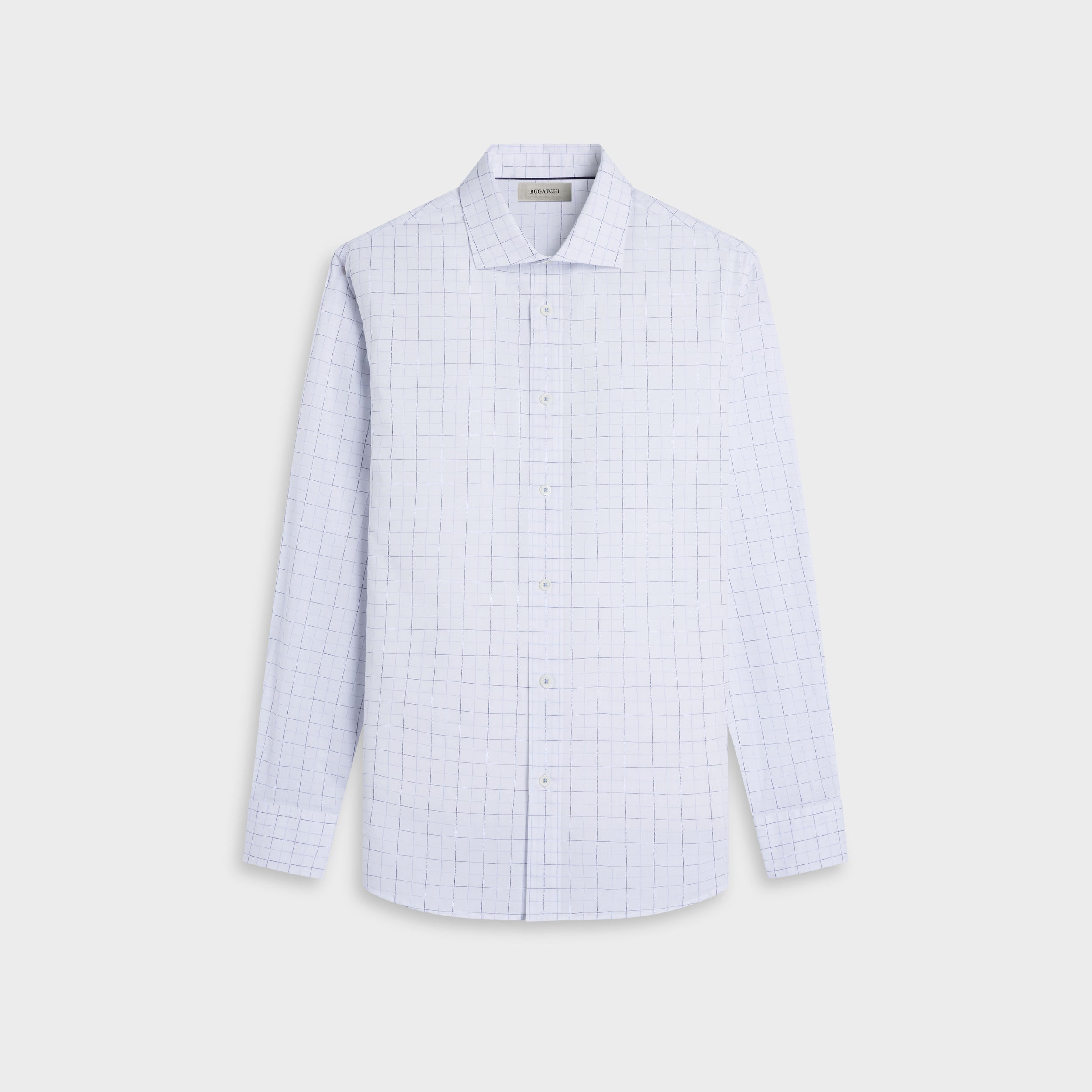 The Axel long-sleeve Comfort Stretch shirt is crafted from premium cotton fabric with added stretch for all-day ease, in a windowpane check pattern. Designed with a spread collar, genuine mother-of-pearl buttons, and adjustable notched cuffs that also convert for cufflinks. A versatile shirt that looks polished whether tucked or untucked.
