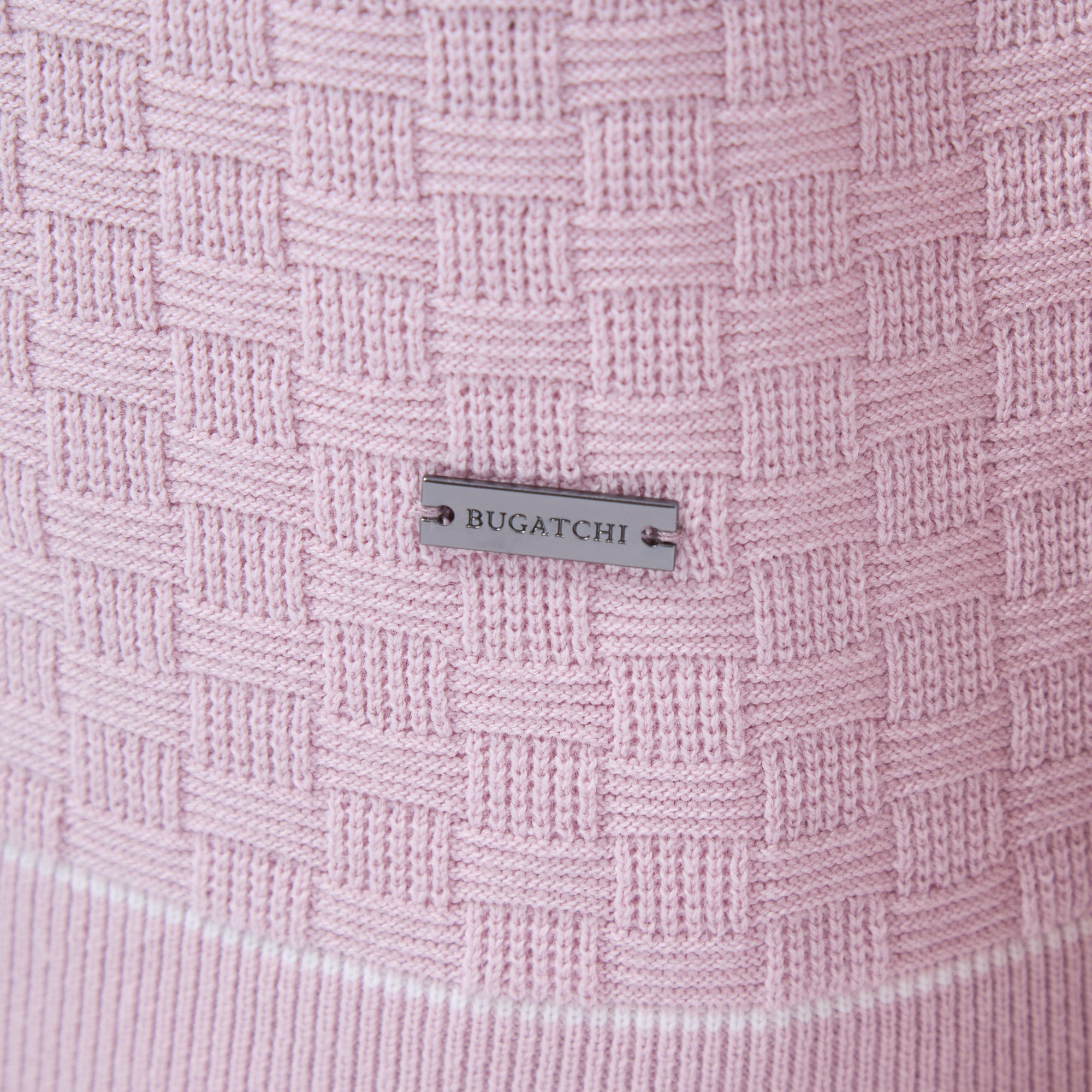 Basket Stitch Three Button Polo Sweater