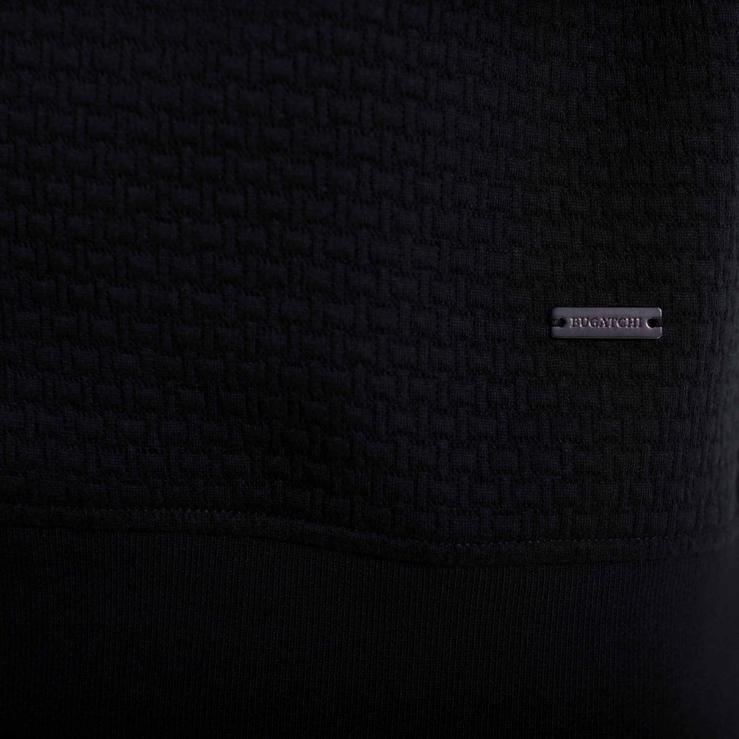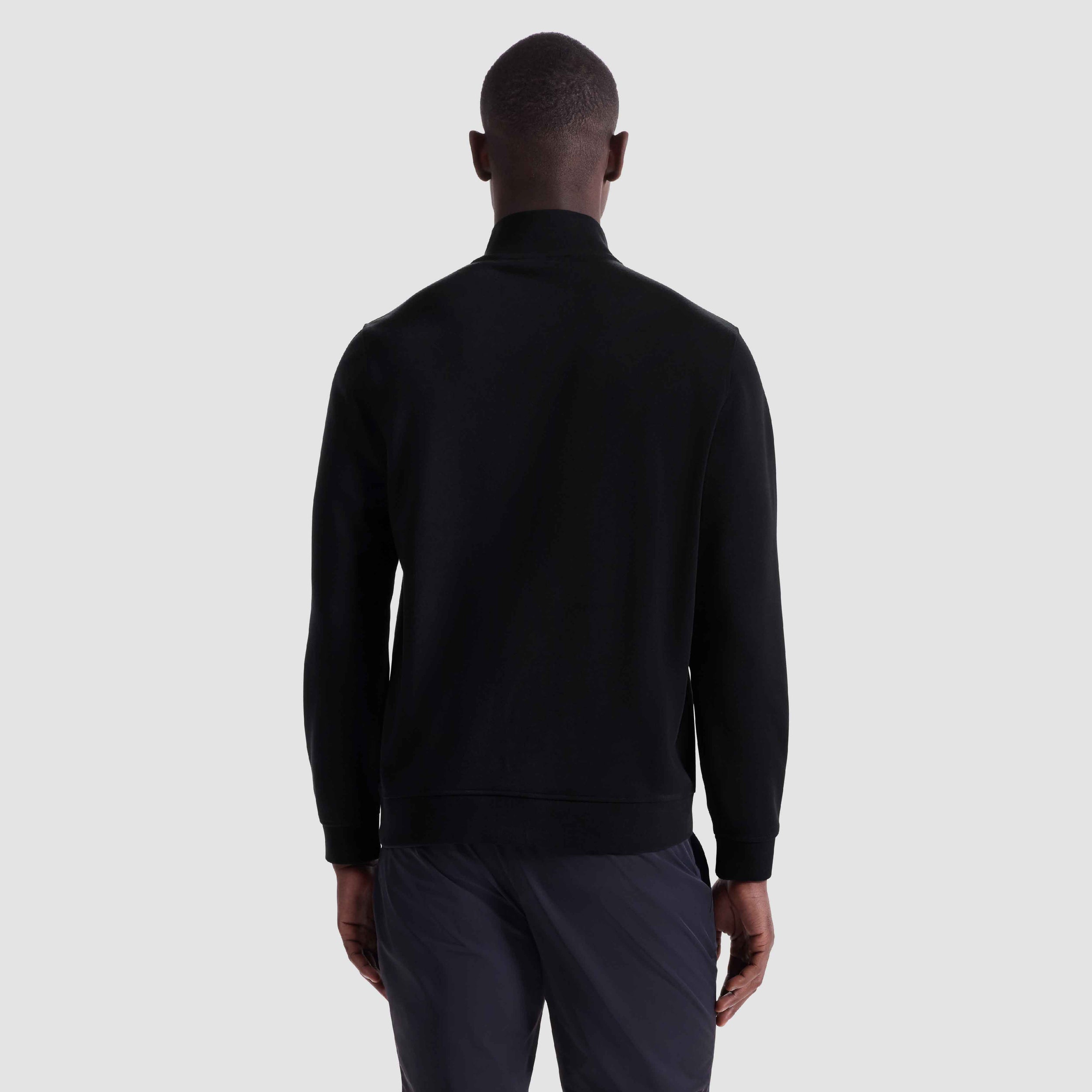 Crafted from premium performance fabric, this long sleeve quarter zip pullover features a jacquard basketweave front for added dimension, contrasted by smooth jersey-knit sleeves and back. The solid ribbed mock neck, cuffs, and hem provide a structured finish, balancing texture and simplicity. A refined piece that merges style and comfort seamlessly.