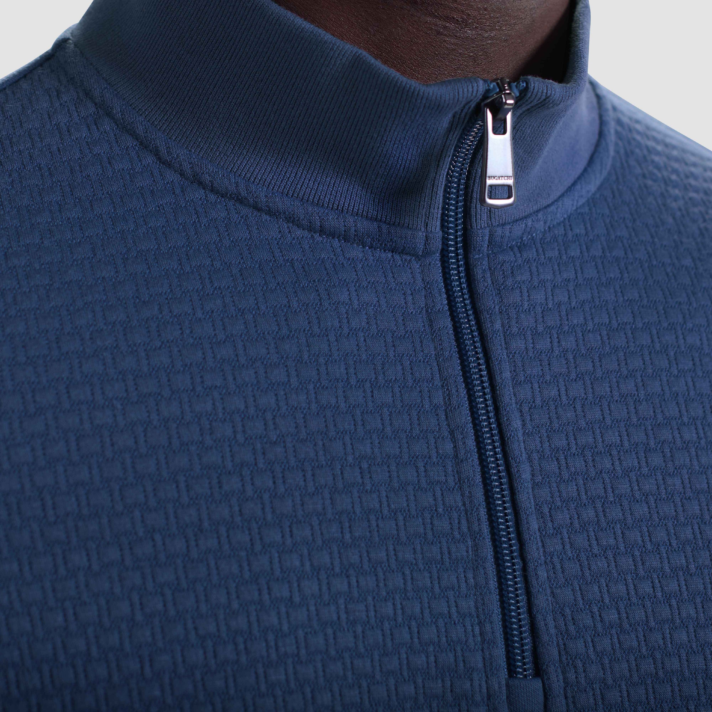 Crafted from premium performance fabric, this long sleeve quarter zip pullover features a jacquard basketweave front for added dimension, contrasted by smooth jersey-knit sleeves and back. The solid ribbed mock neck, cuffs, and hem provide a structured finish, balancing texture and simplicity. A refined piece that merges style and comfort seamlessly.